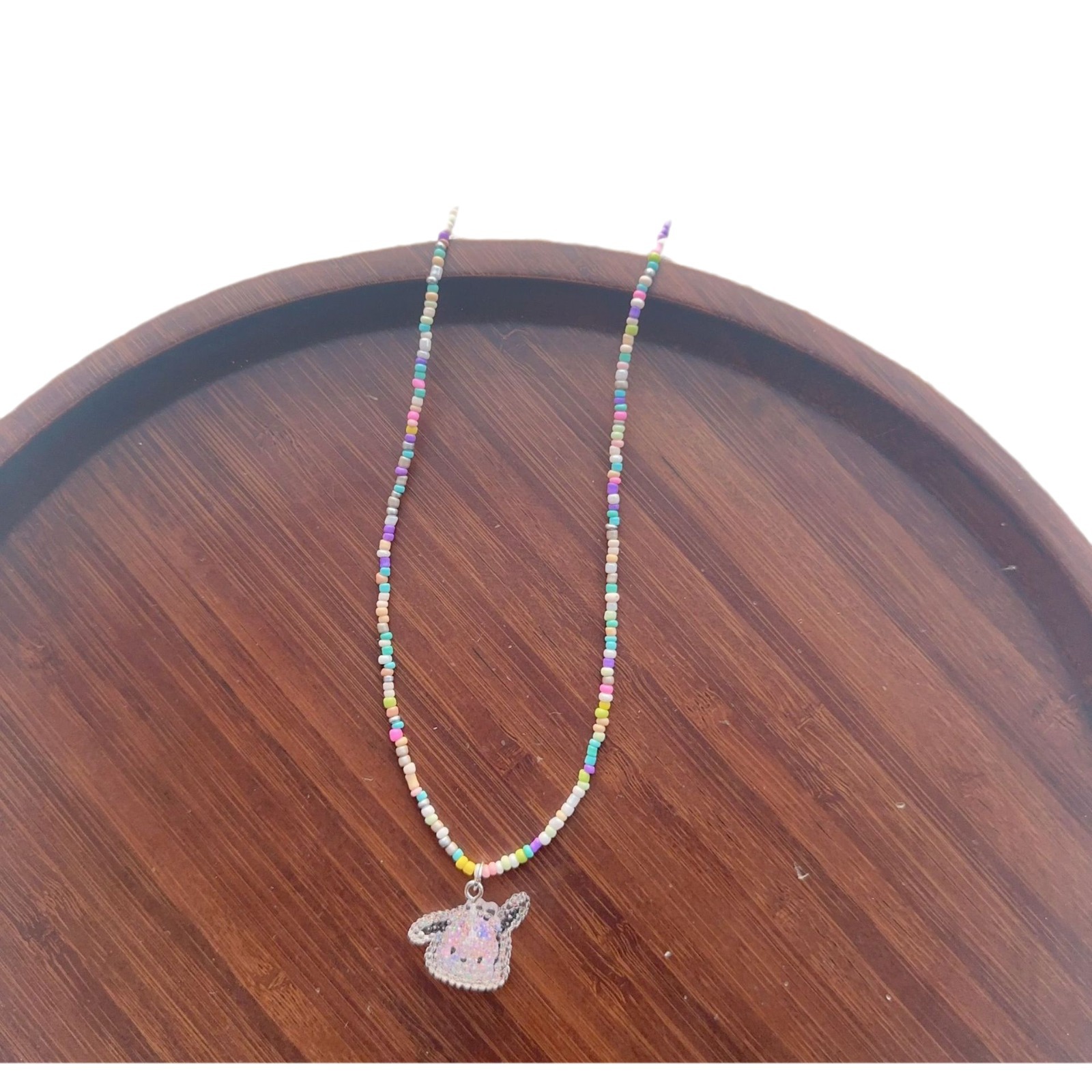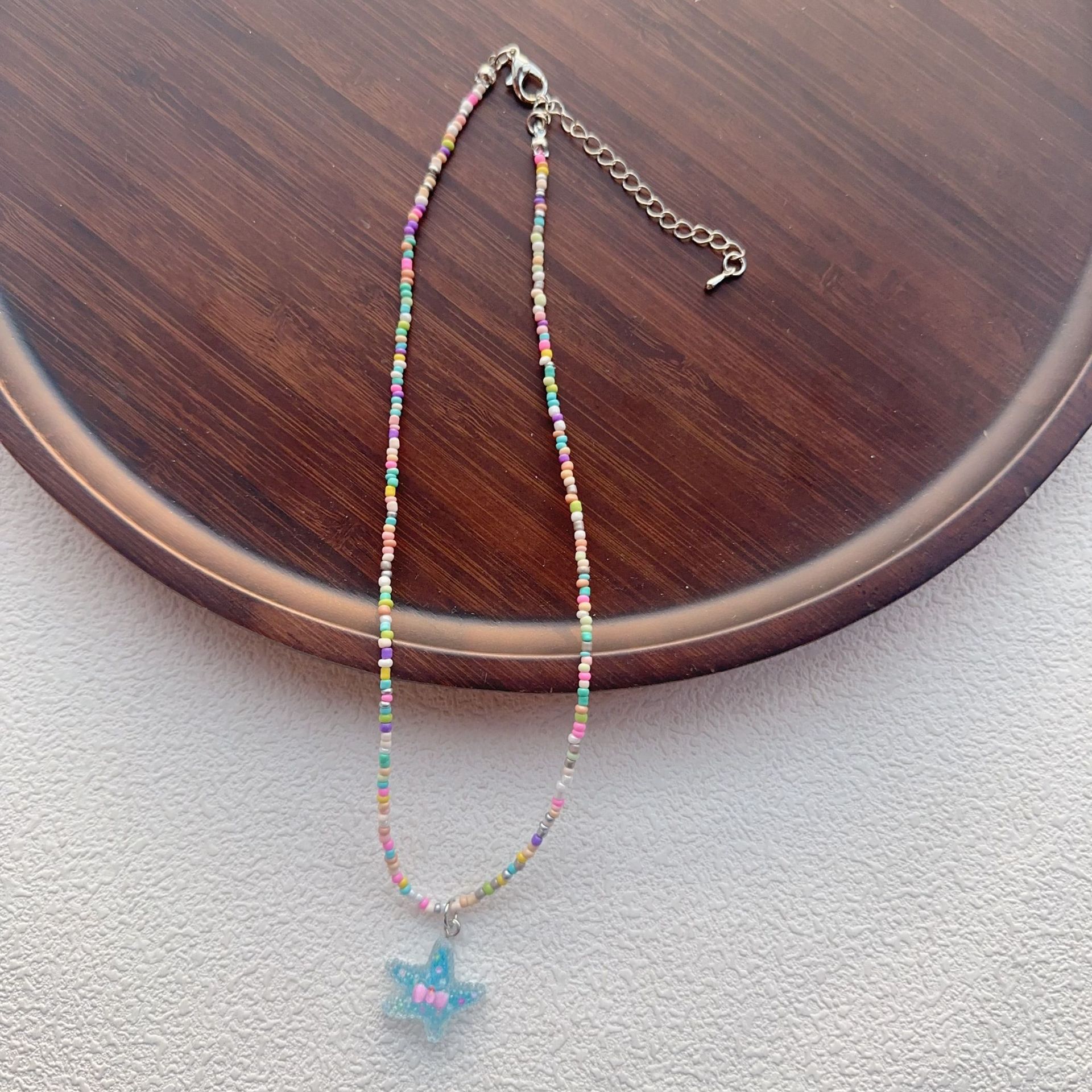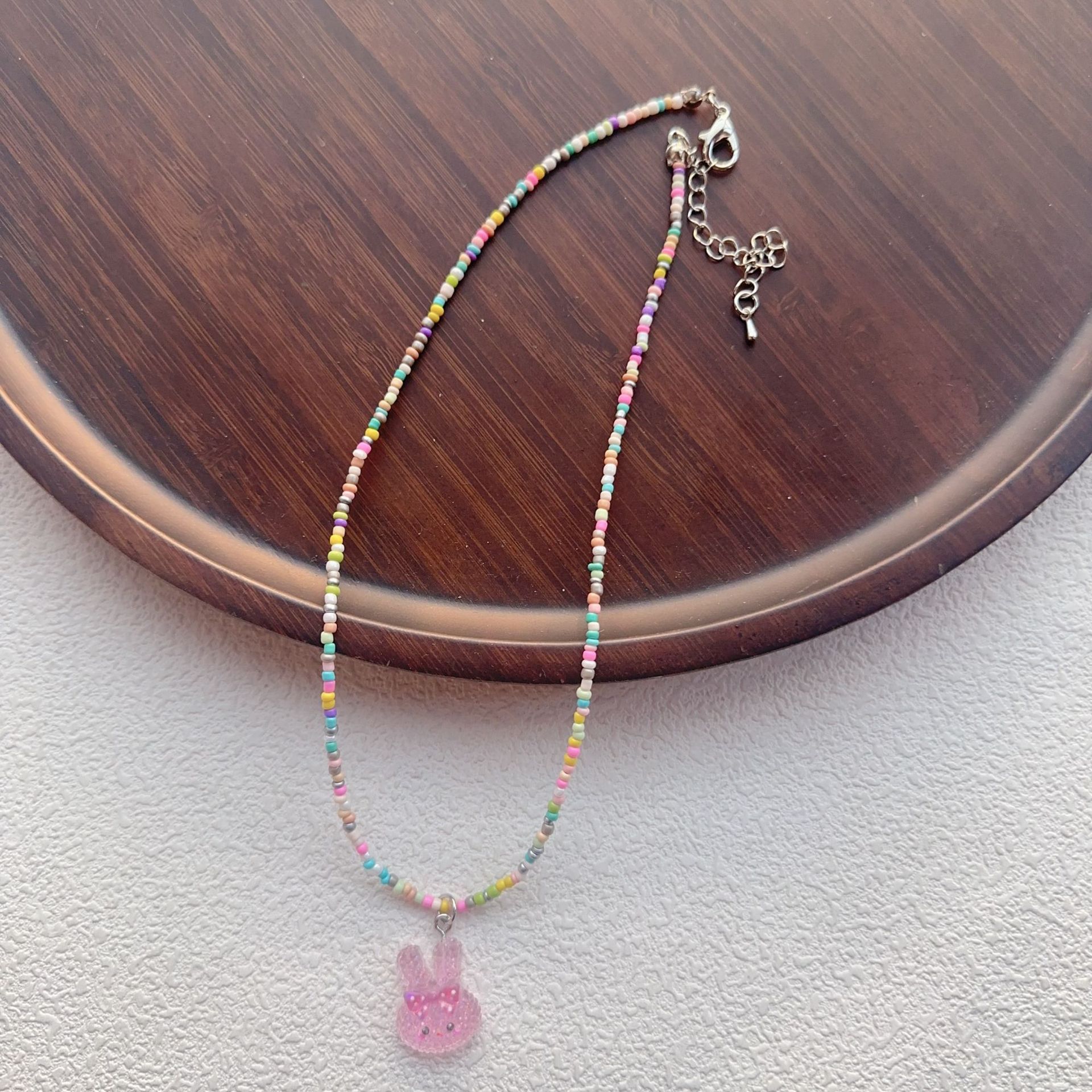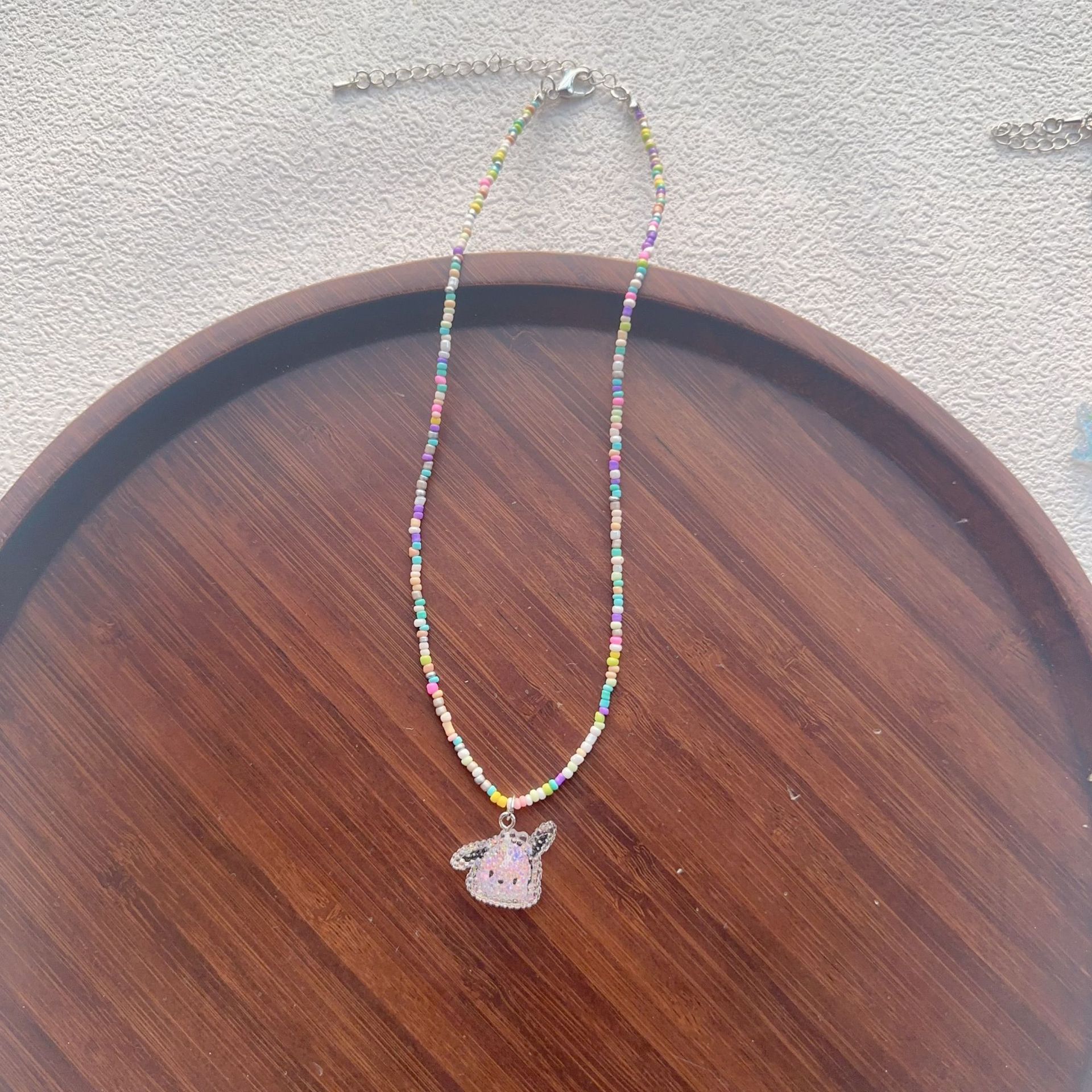 2025彩色串珠项链女生卡通可爱蝴蝶结锁骨链多巴胺少女饰品批发