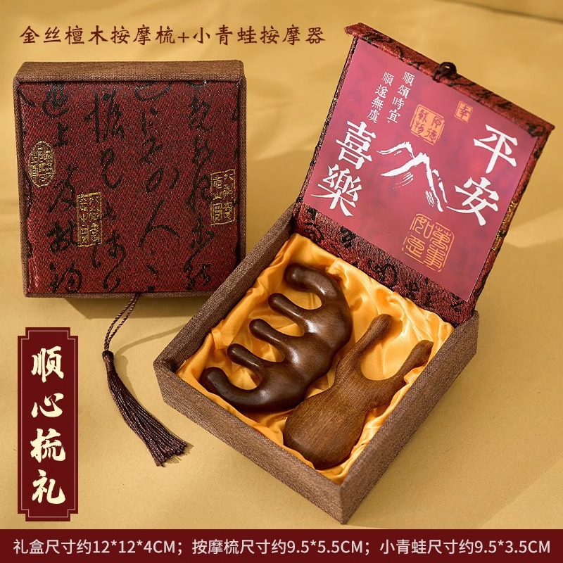 38三八妇女节实用伴手礼物檀木养生梳子礼盒头部经络梳按摩梳木梳