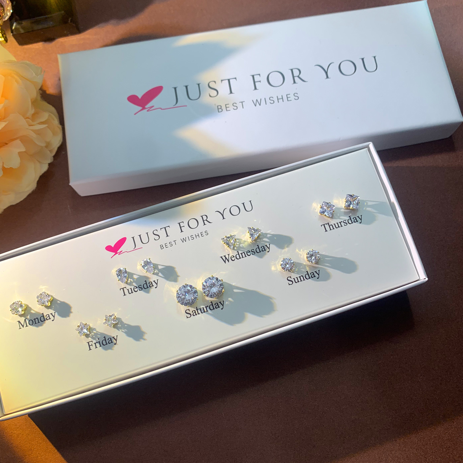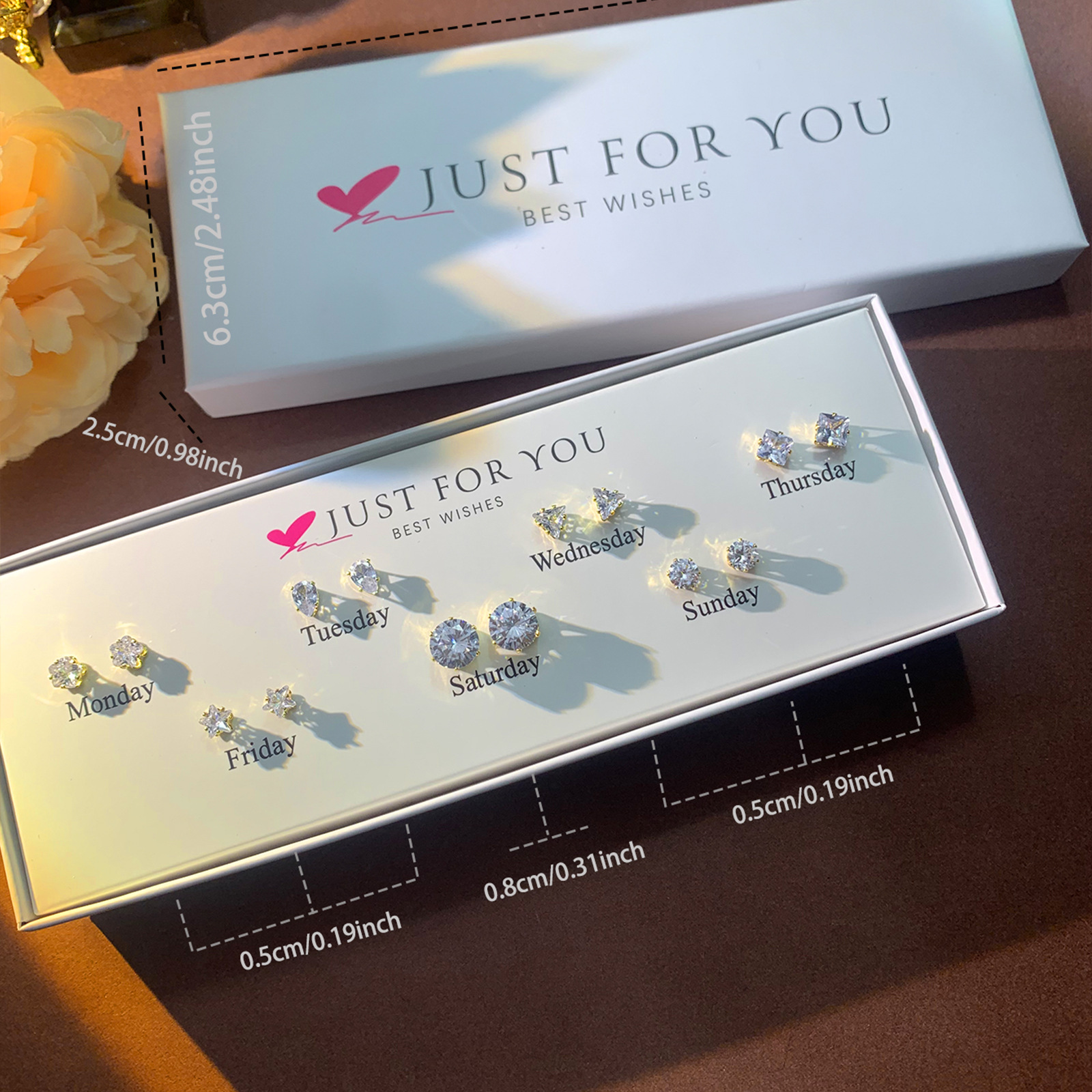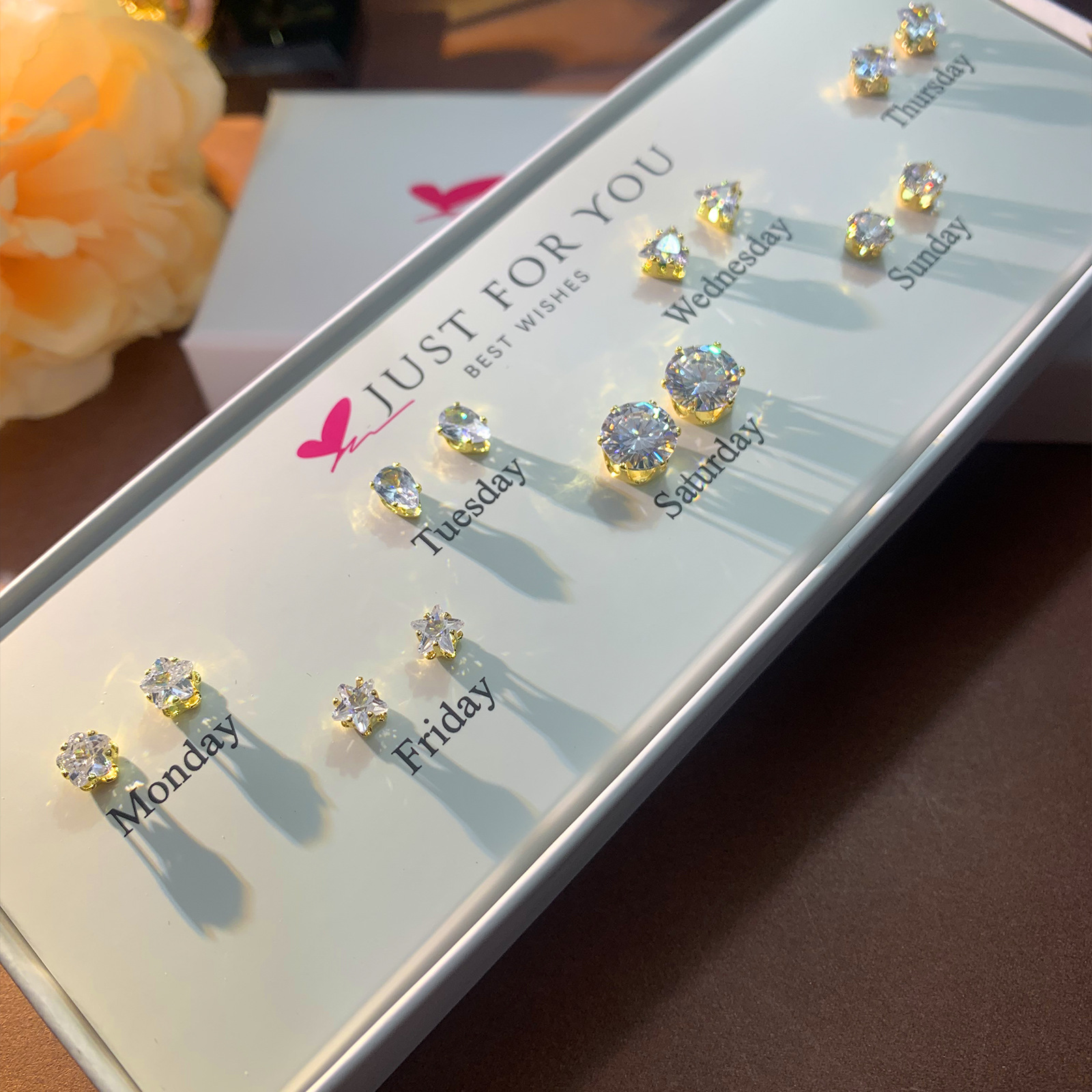 一周7对礼盒套装耳饰高级感跨境几何锆石气质星星耳钉小众饰品女