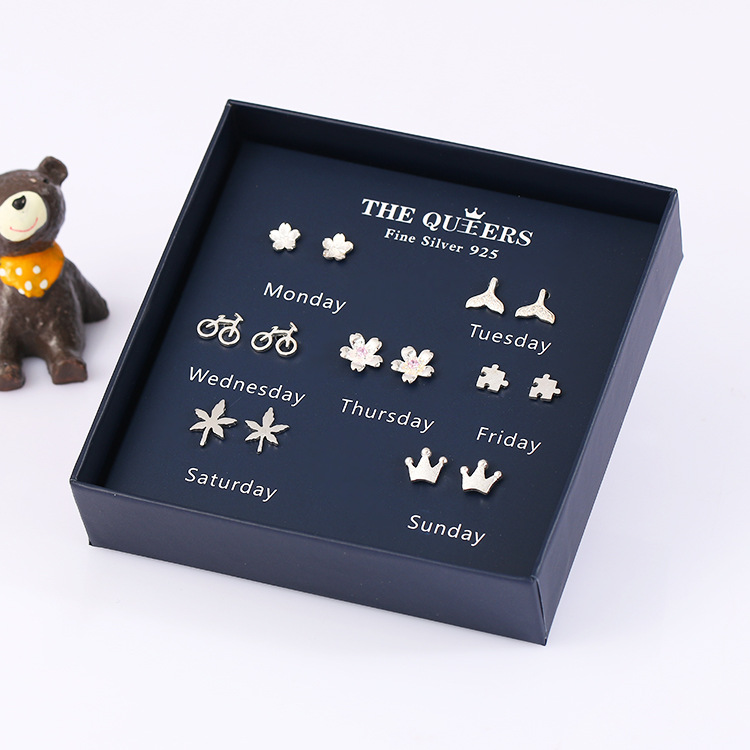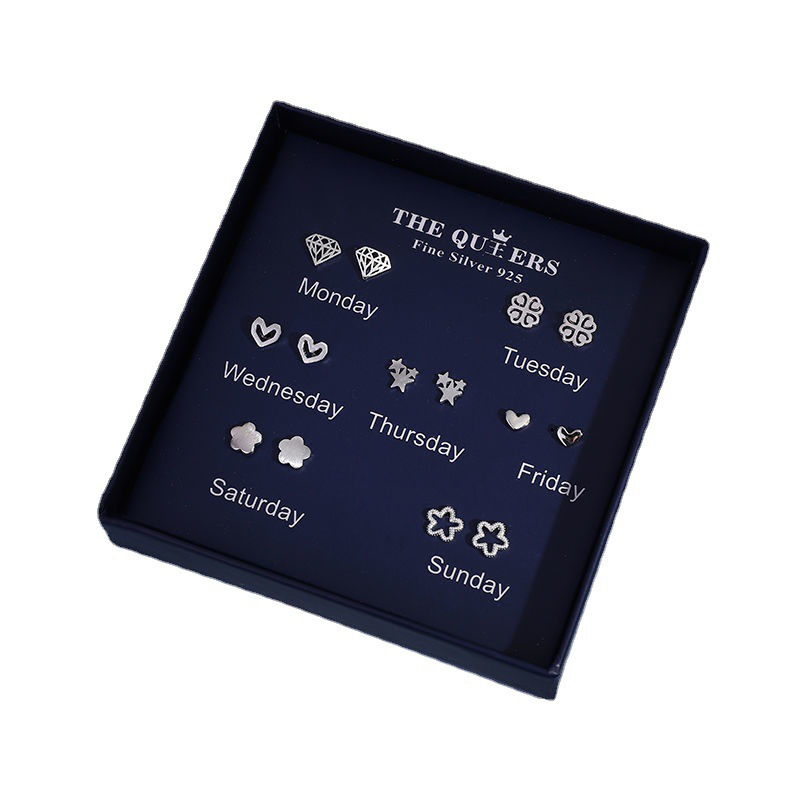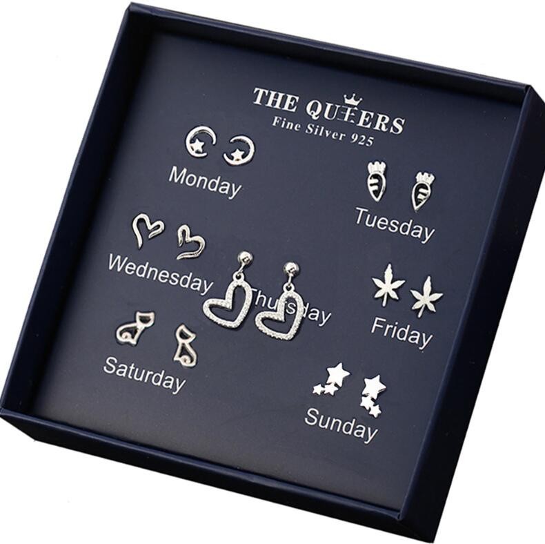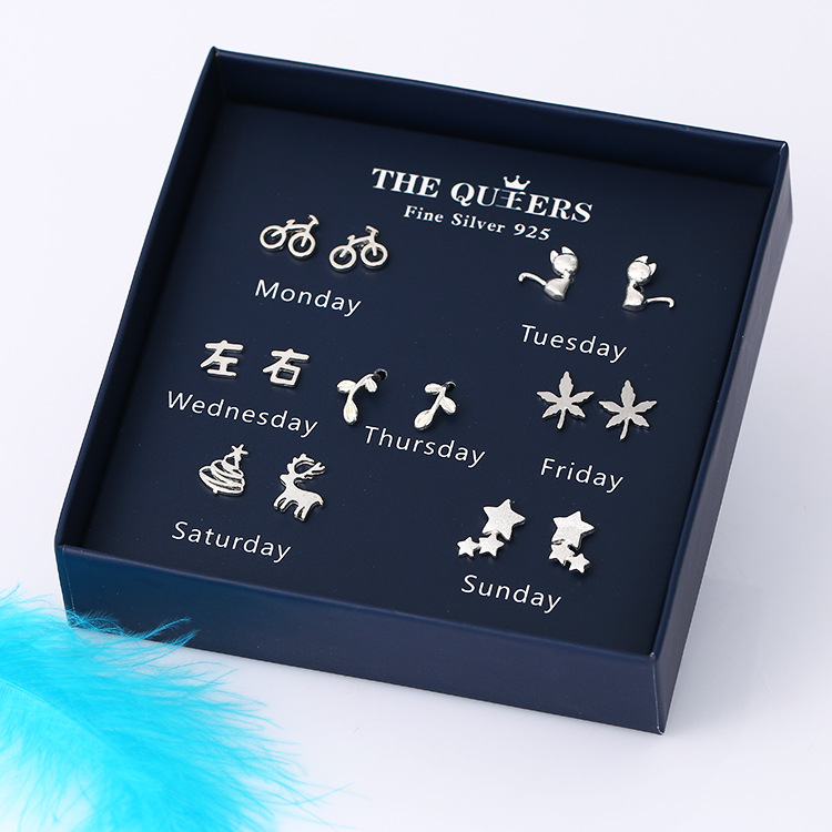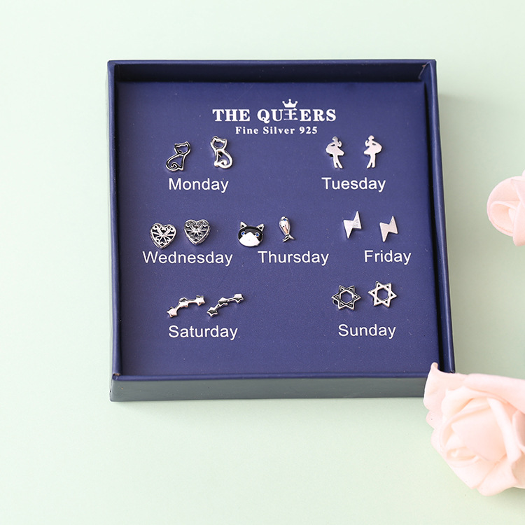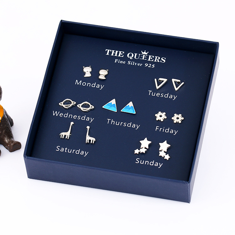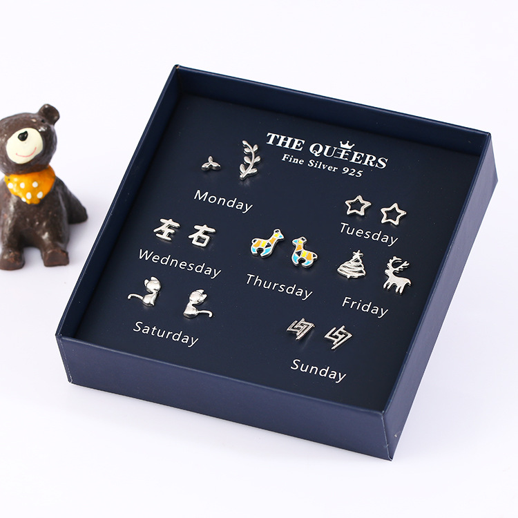 925银针韩版不对称耳钉女一周耳钉礼盒套装闺蜜生日节日女友礼物