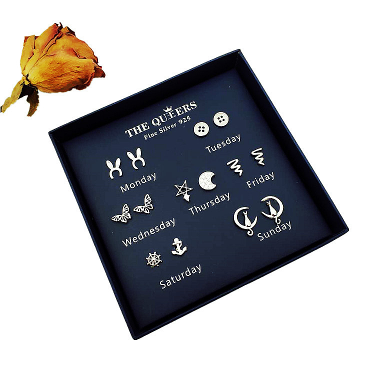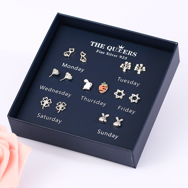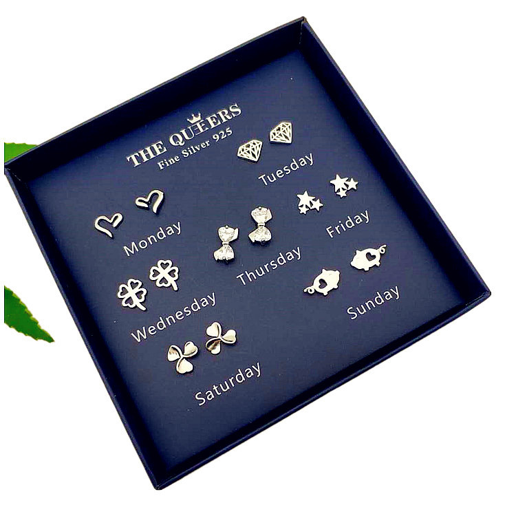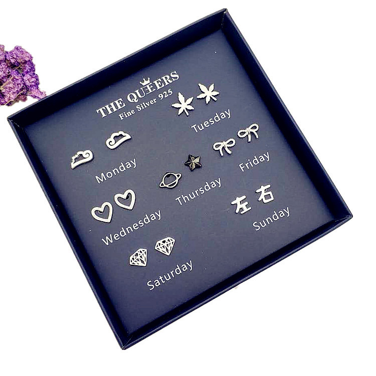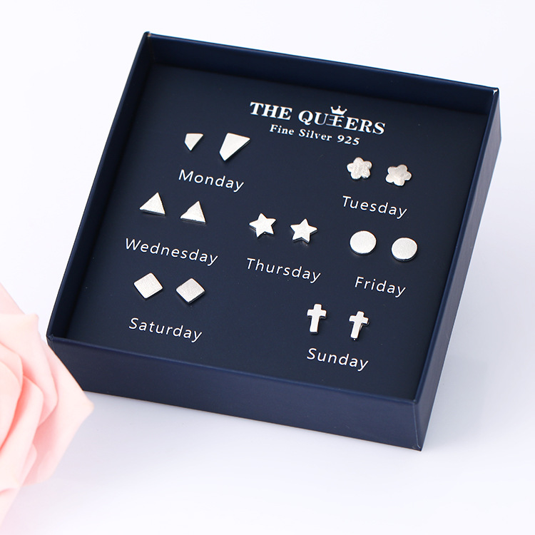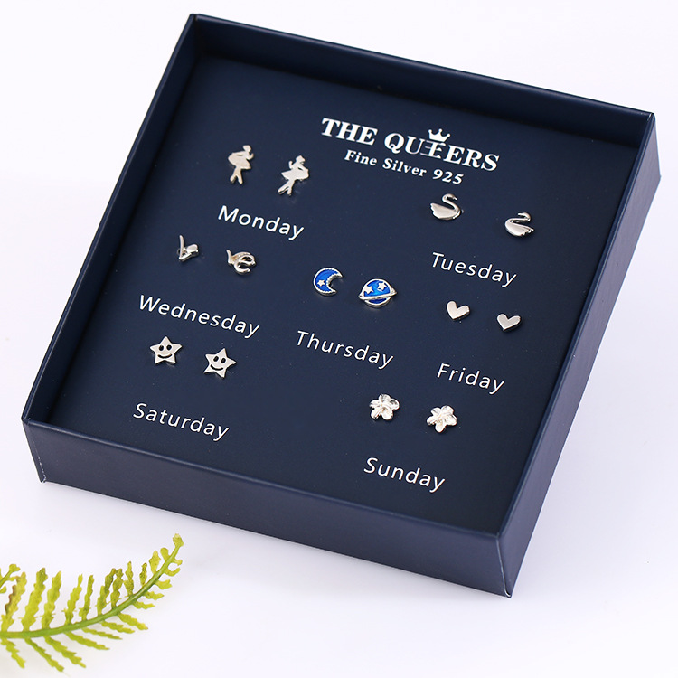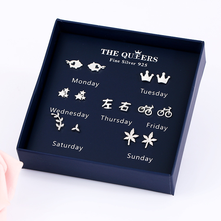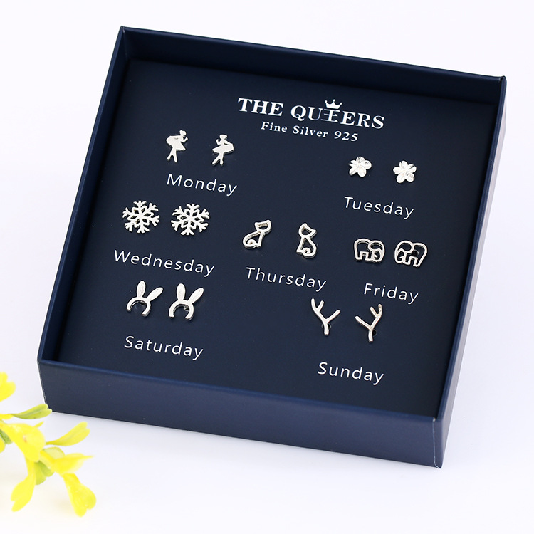 925银针韩版不对称耳钉女一周耳钉礼盒套装闺蜜生日节日女友礼物