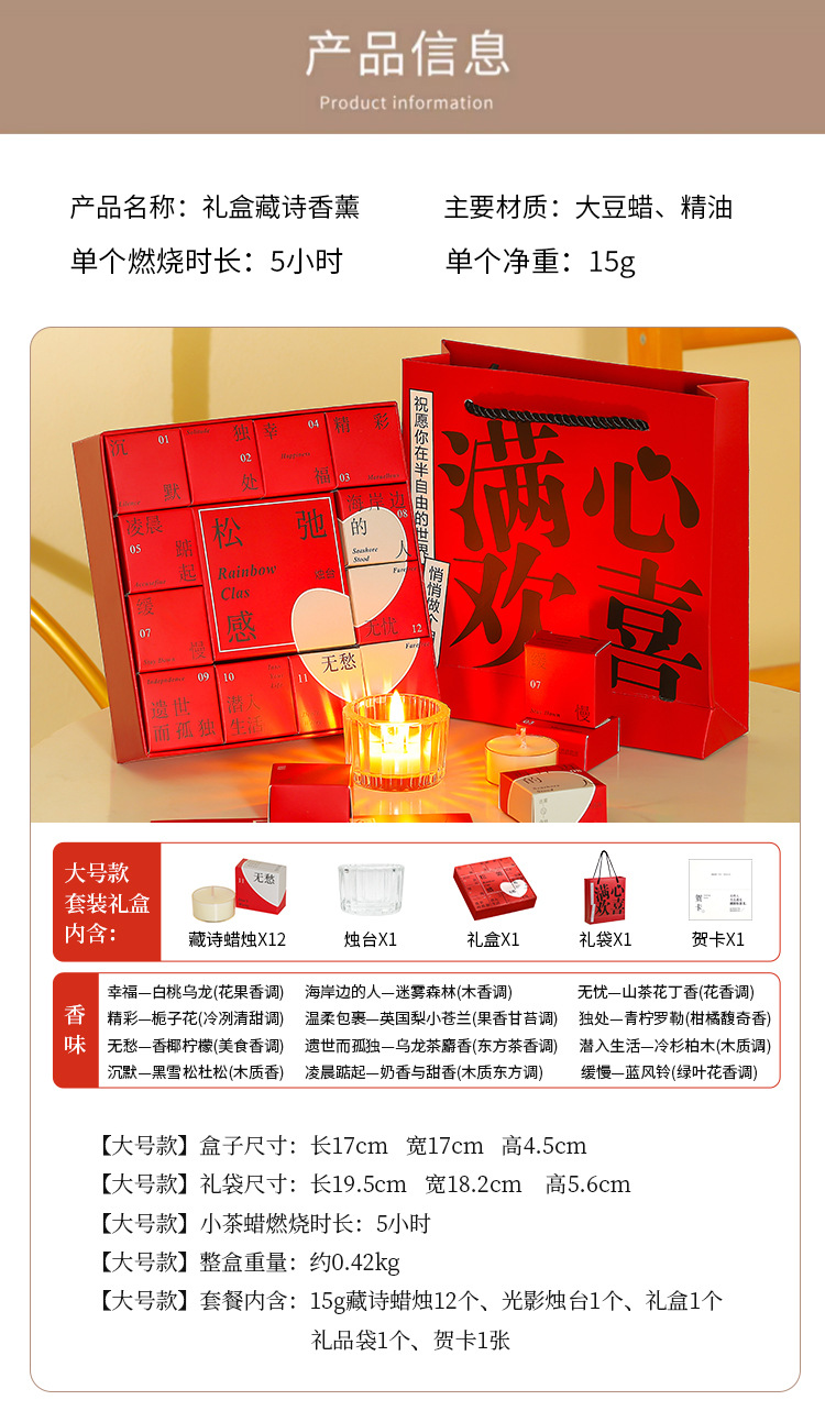 香里藏诗香薰蜡烛礼盒室内无烟手工室内蜡烛杯结婚伴手礼物批发女
