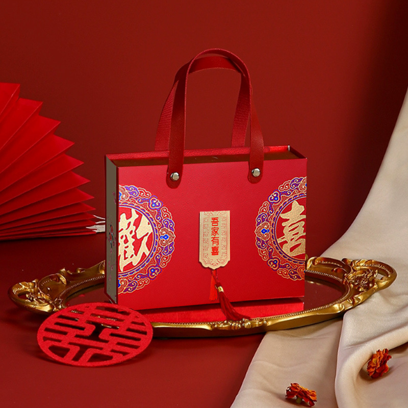 抽屉式伴手礼空盒手提不费手结婚宝宝乔迁祝寿吾家有喜喜糖礼品盒