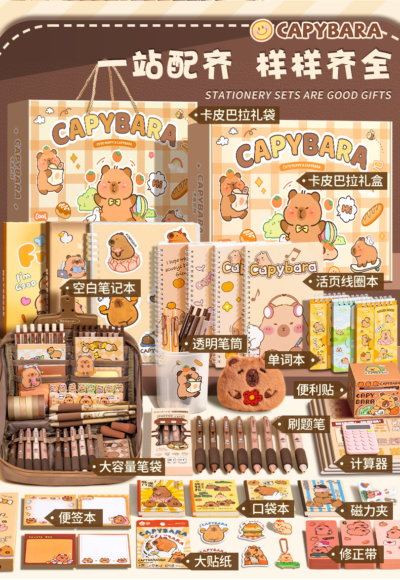 卡皮巴拉文具套装礼盒开学大礼包高颜值生日礼物女孩学习用品大全