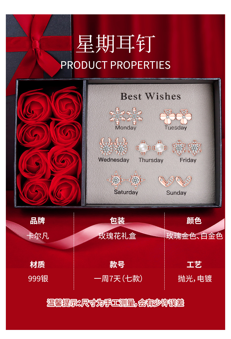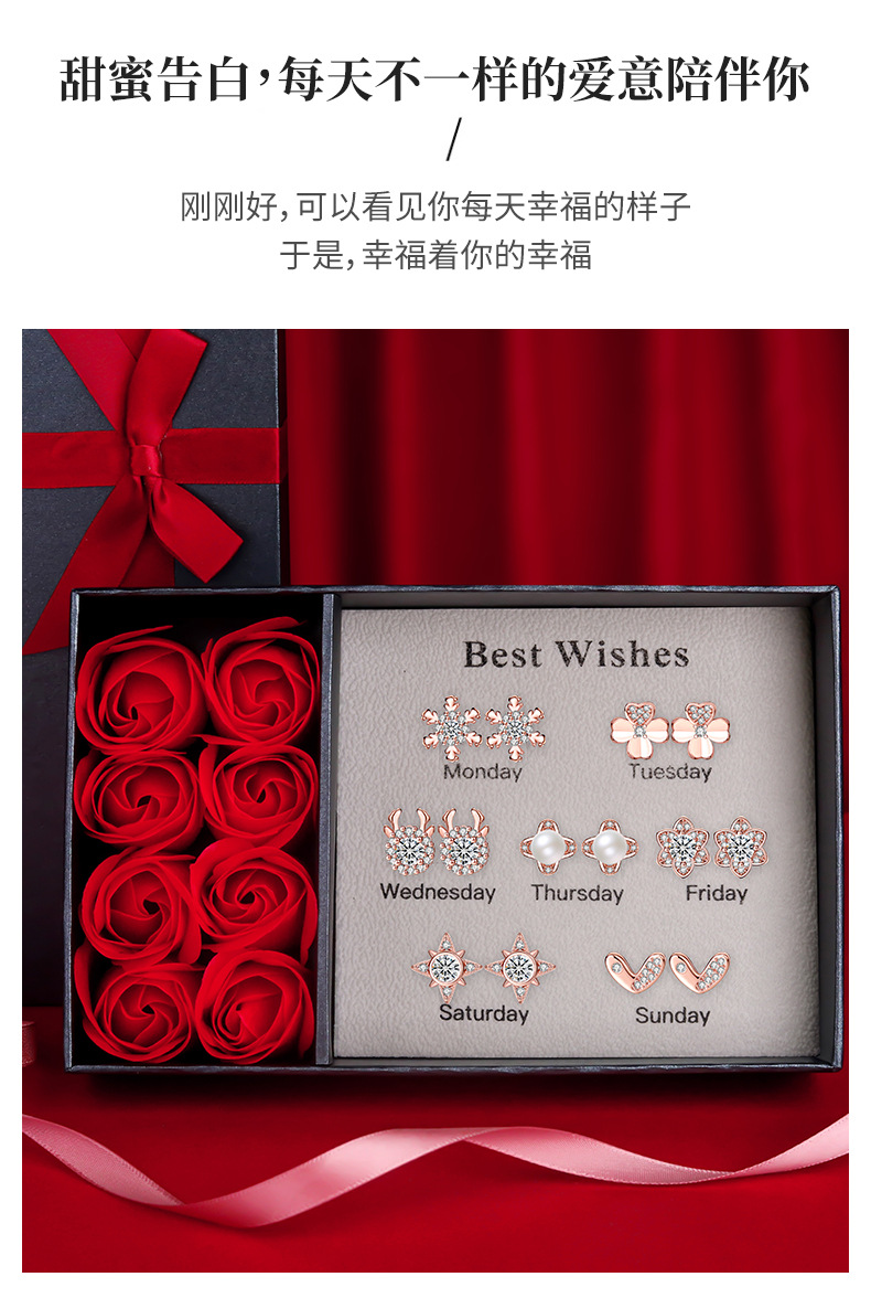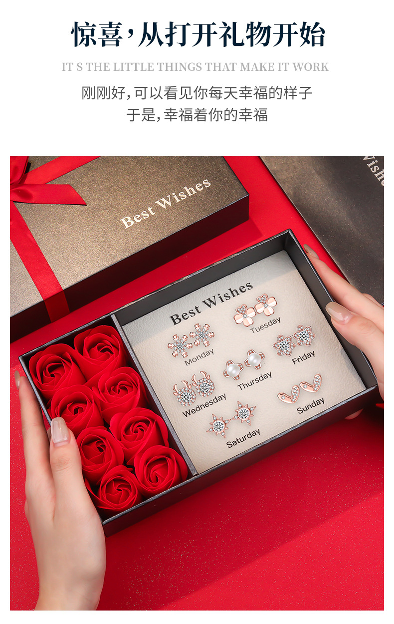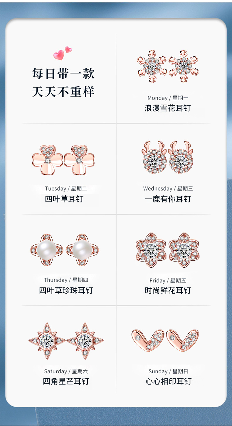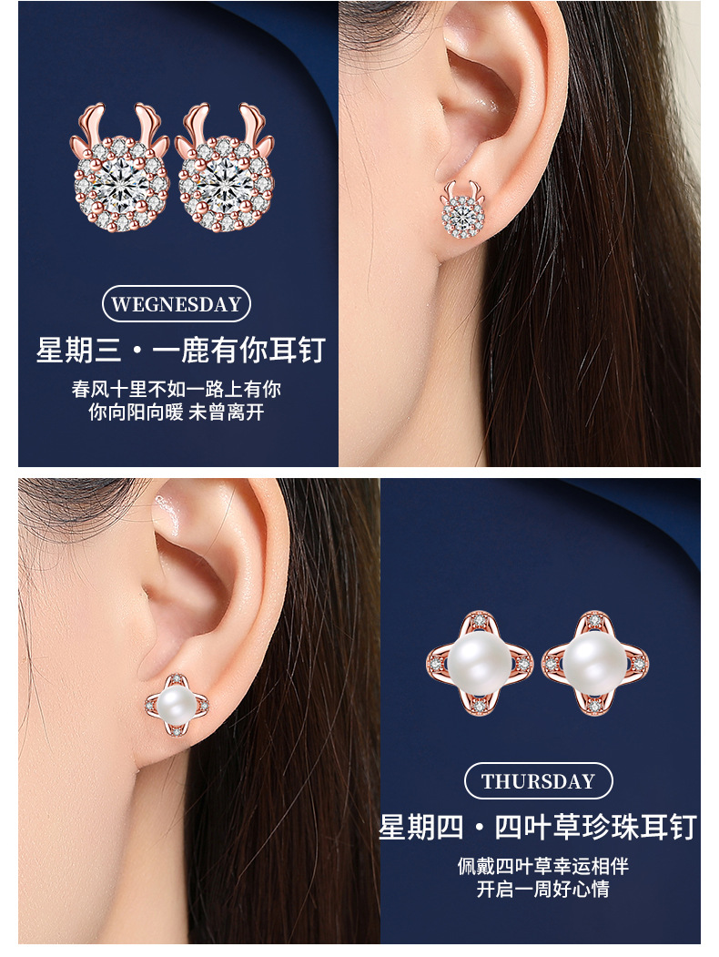 一周耳钉时尚百搭珍珠耳饰套装2022年新款潮小众设计感生日礼物女