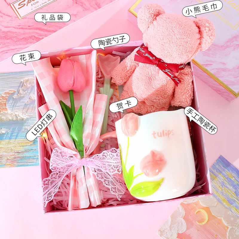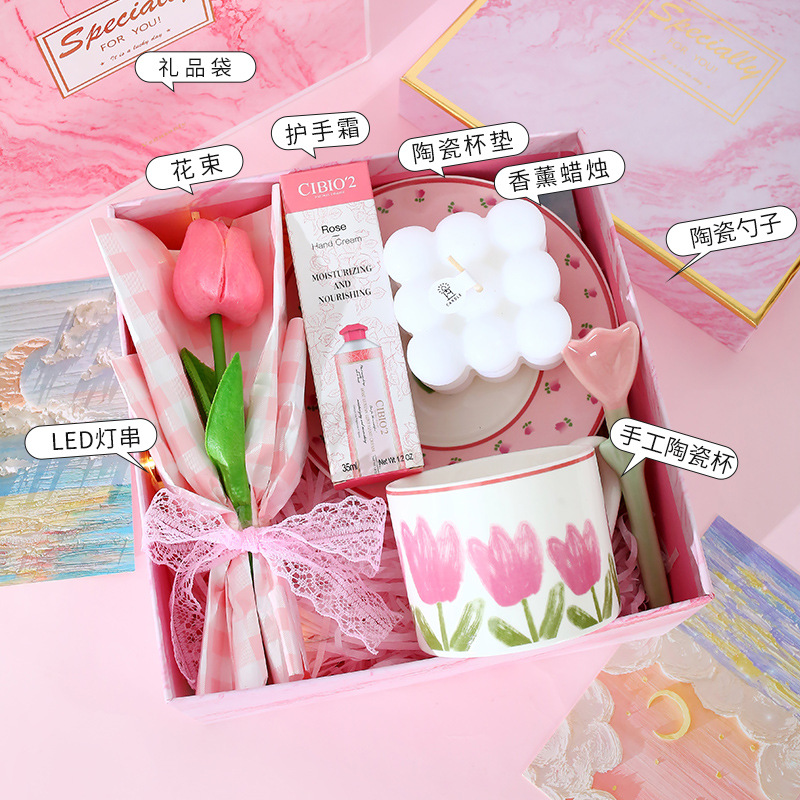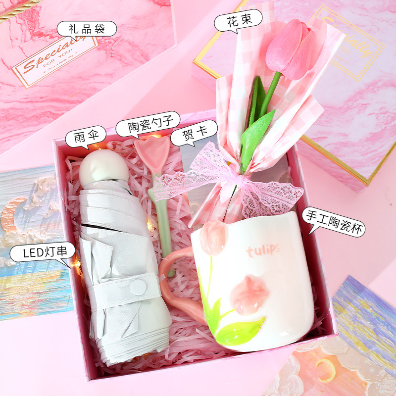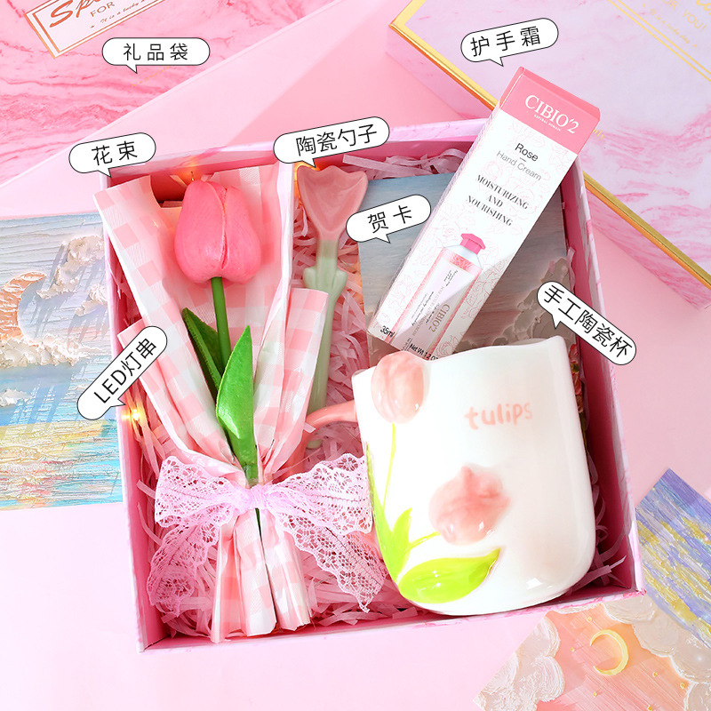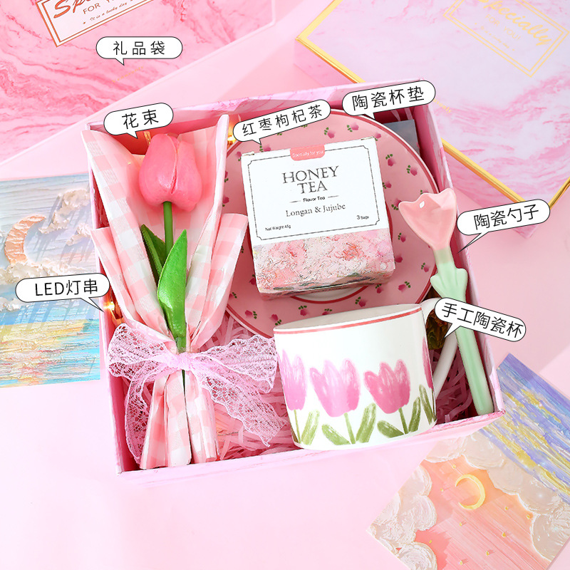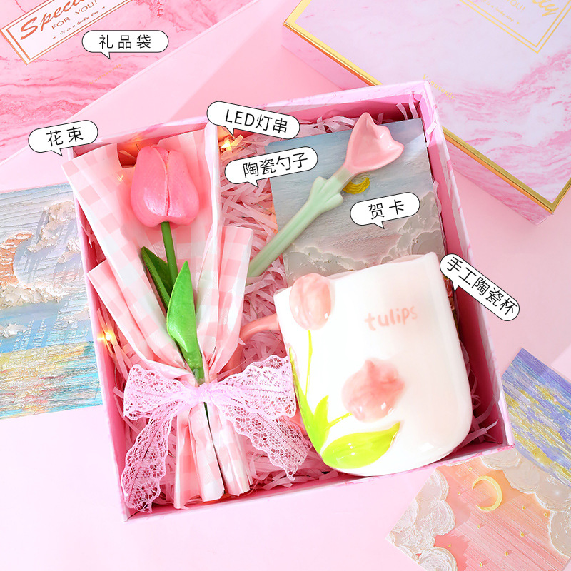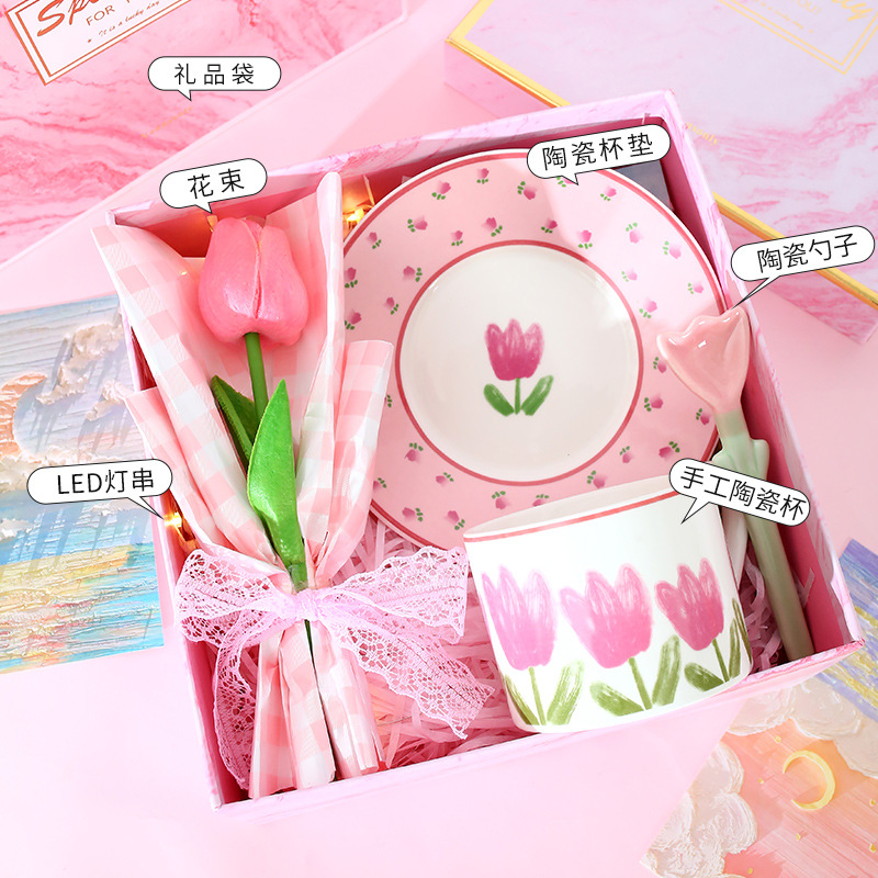 三八节礼物郁金香陶瓷杯套装实用伴手礼年会送员工朋友闺蜜生日女