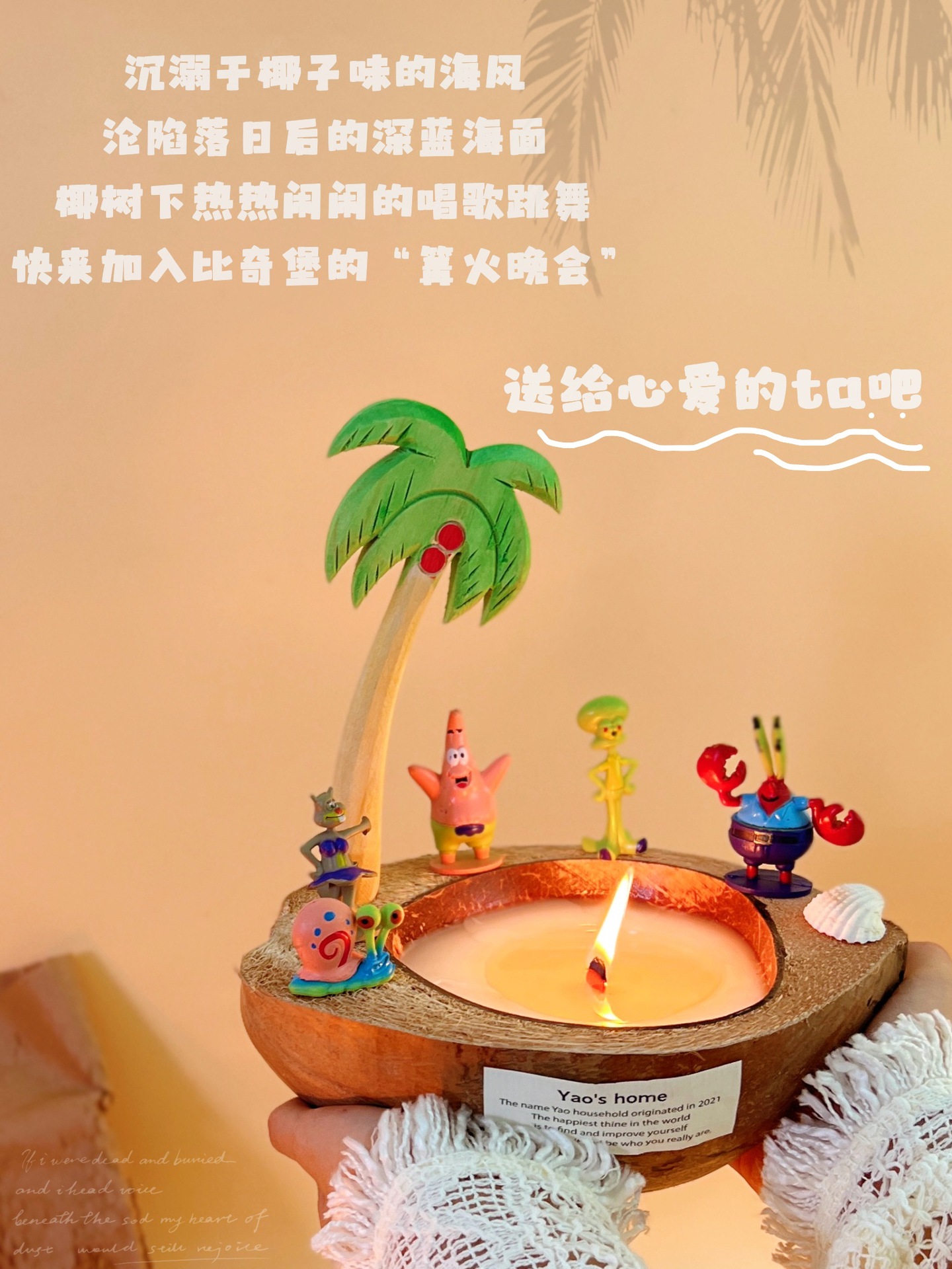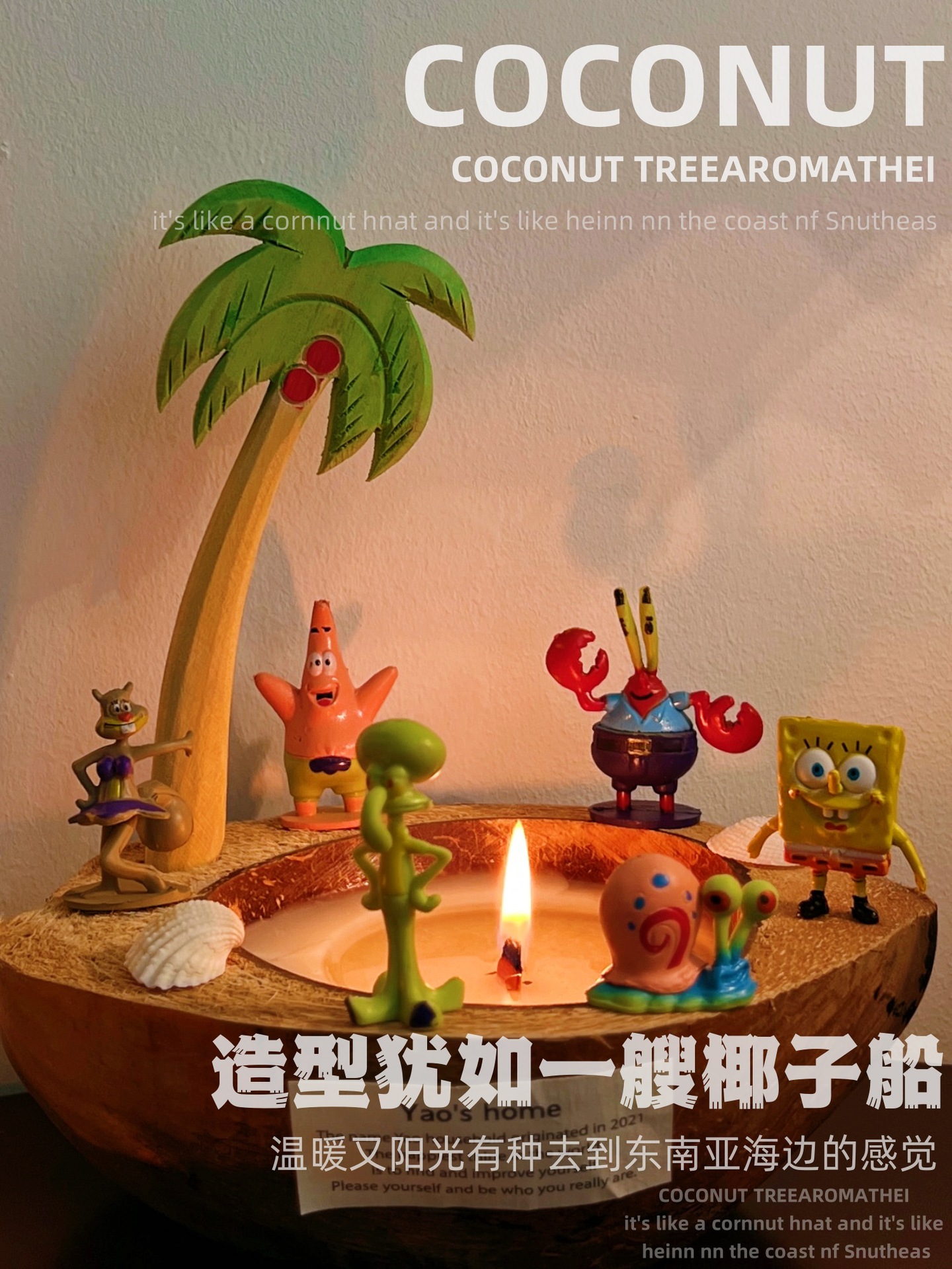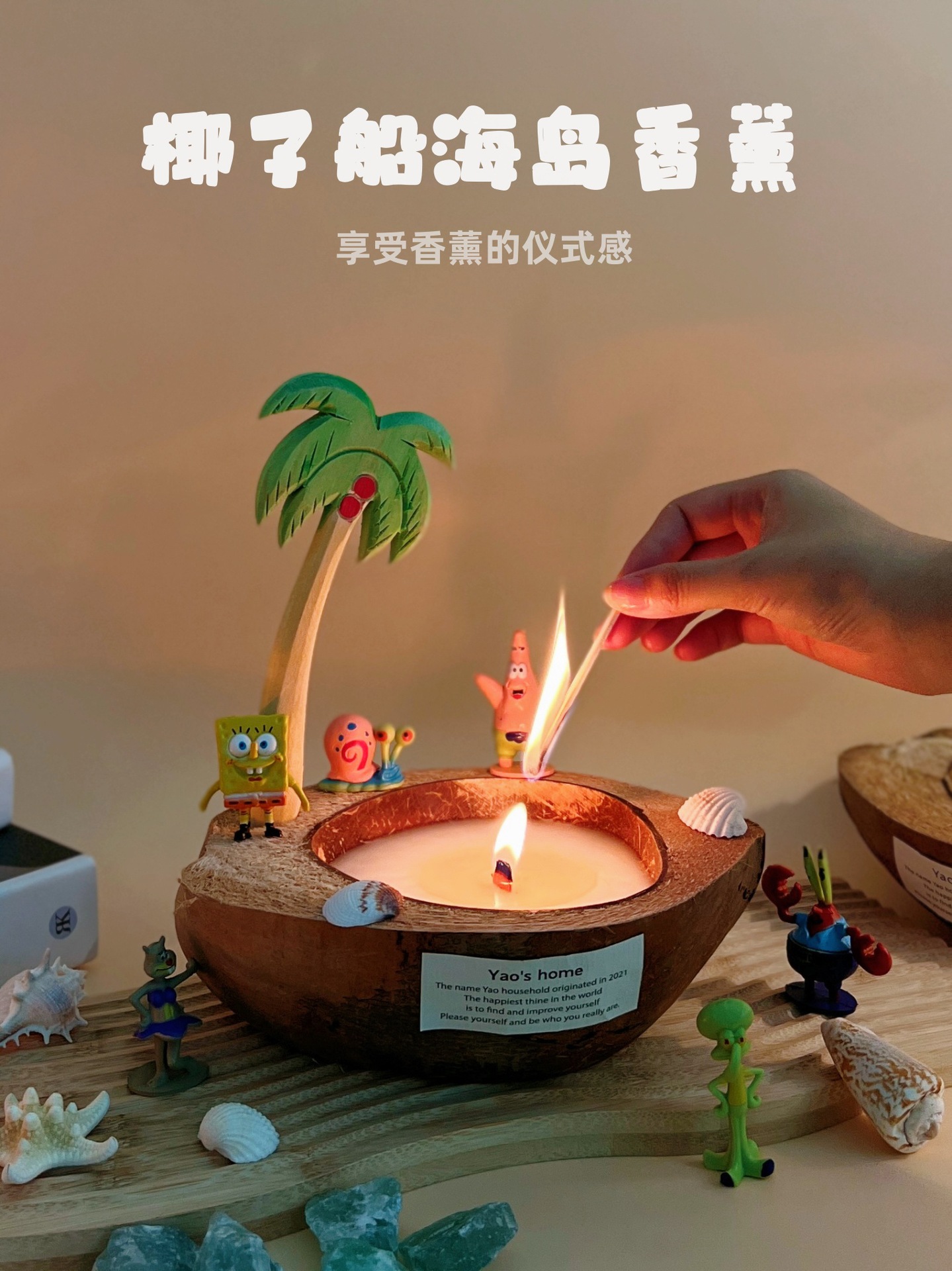 椰子树船香薰蜡烛礼盒生日礼物可爱香氛女生卧室椰子壳创意摆件