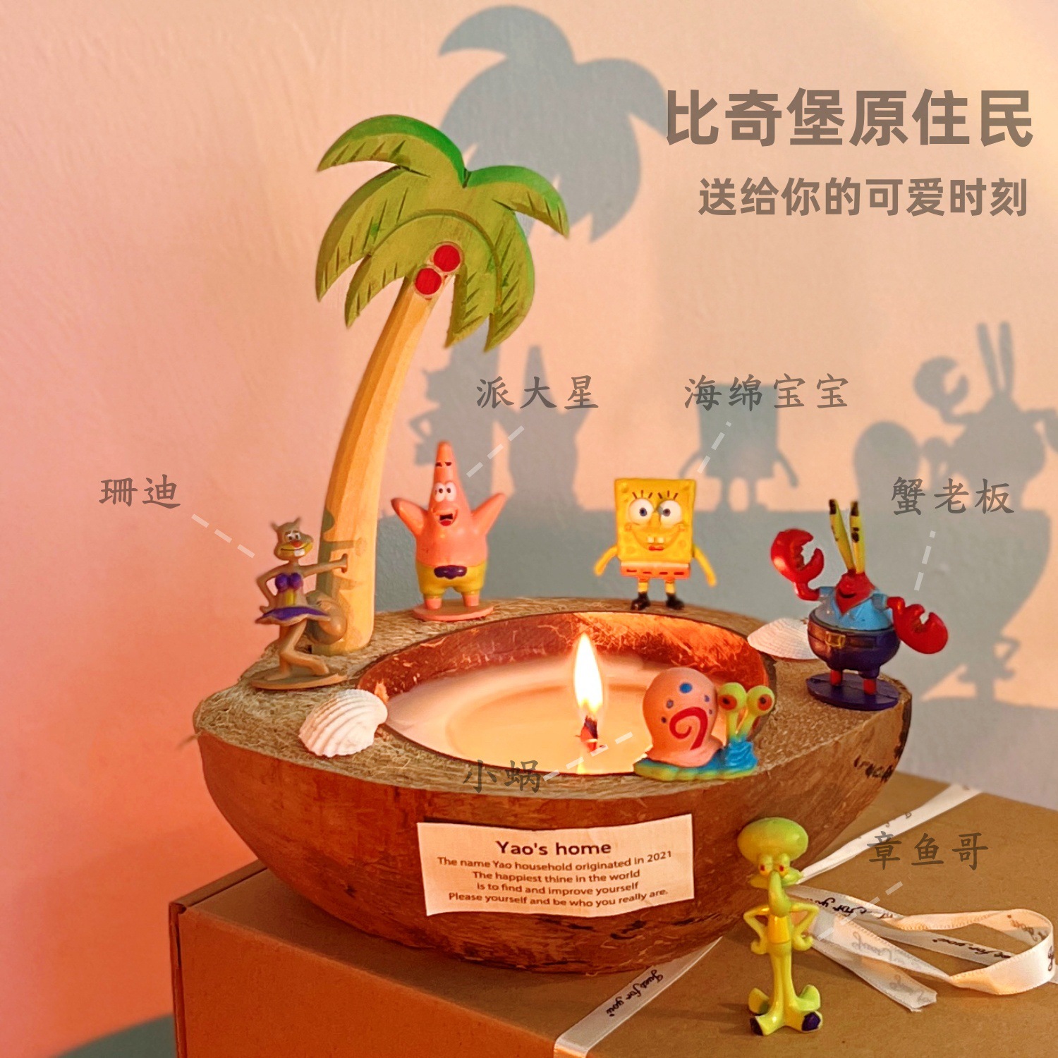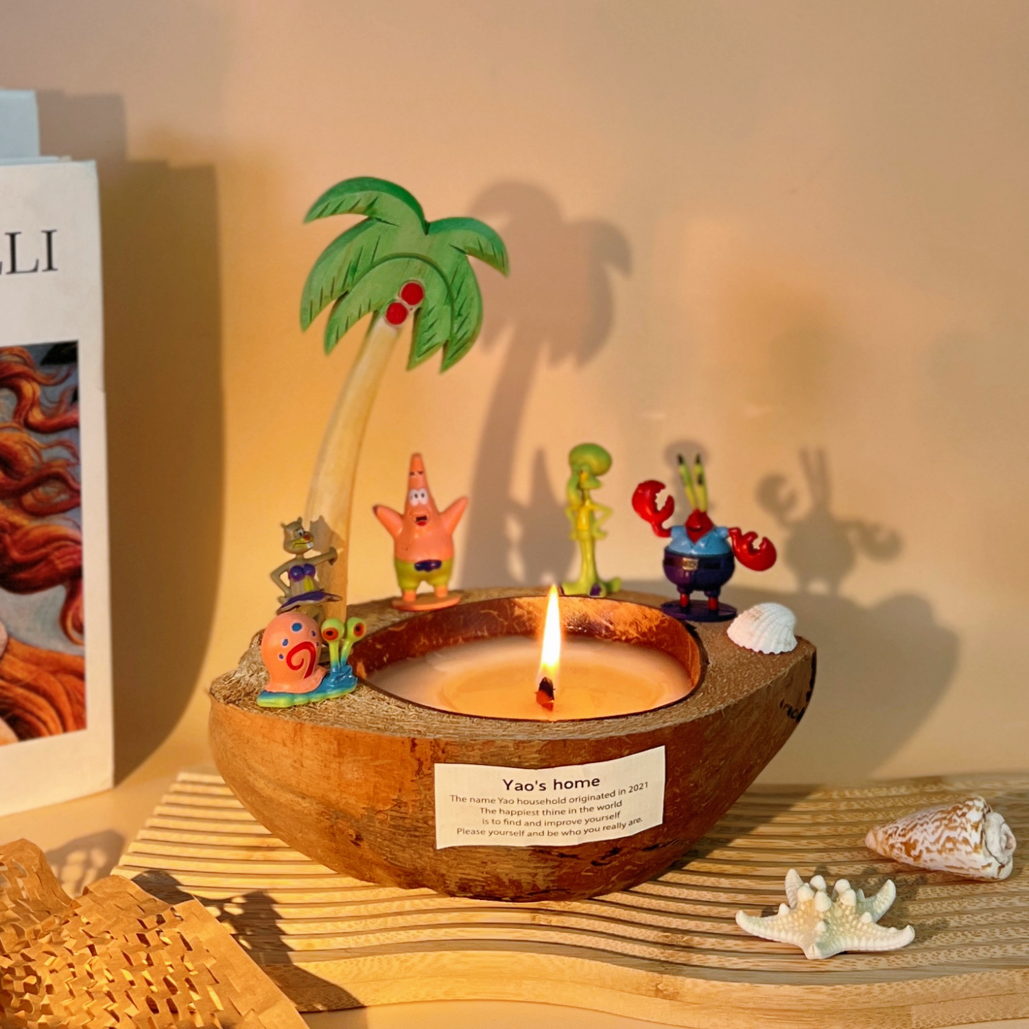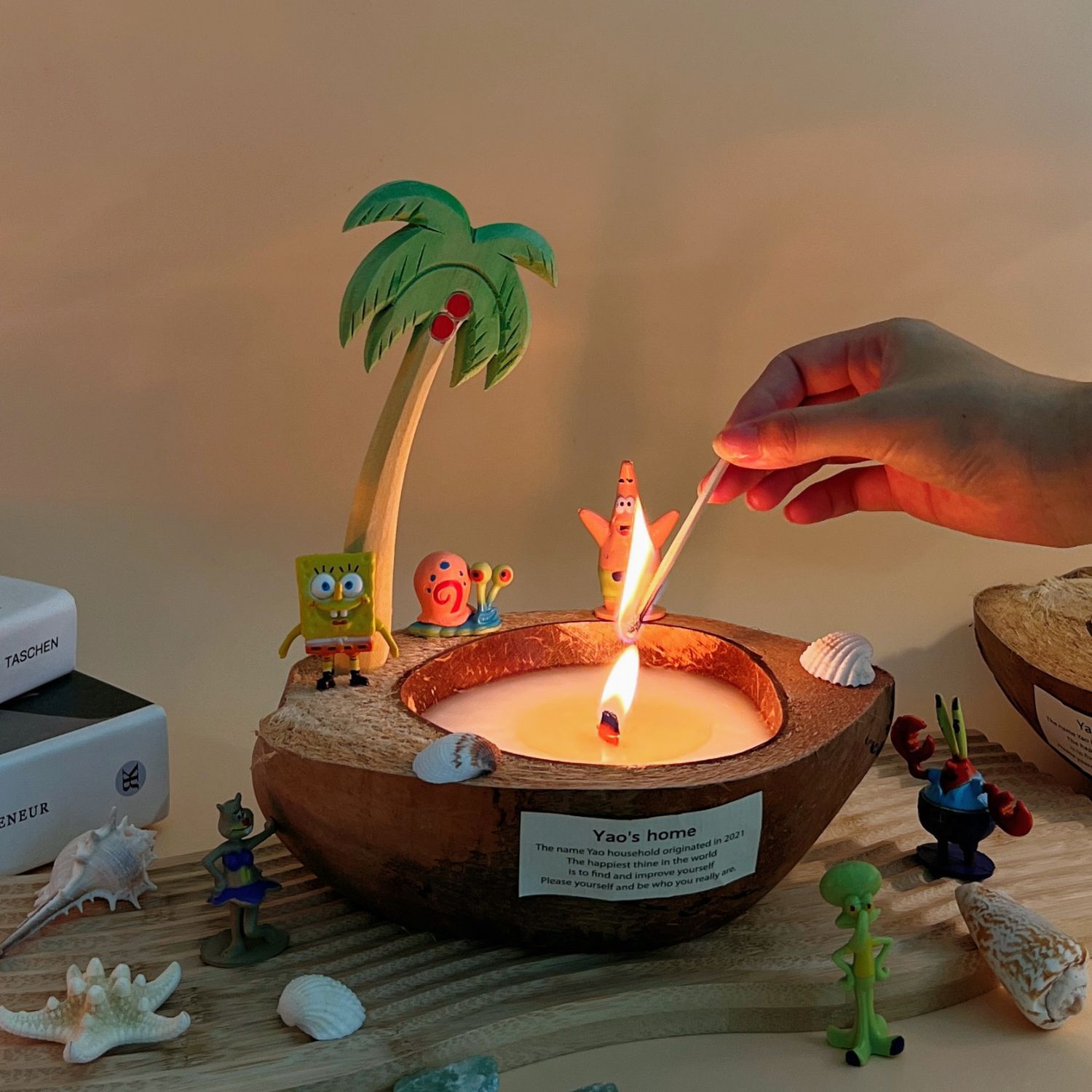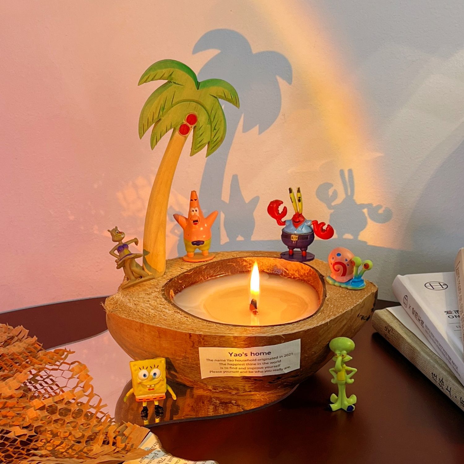 椰子树船香薰蜡烛礼盒生日礼物可爱香氛女生卧室椰子壳创意摆件