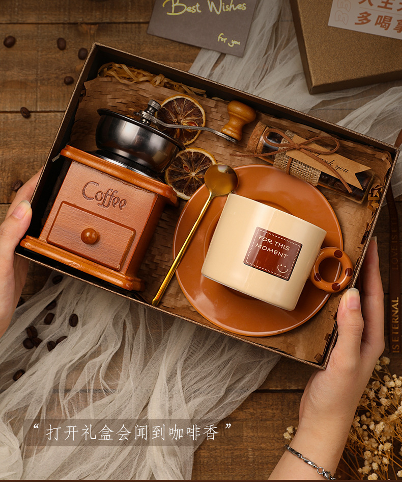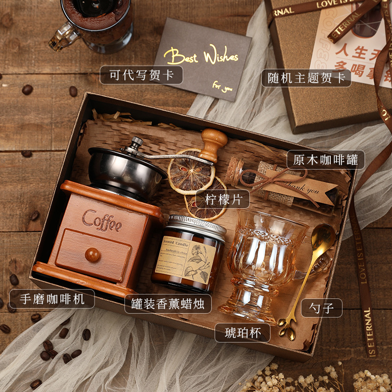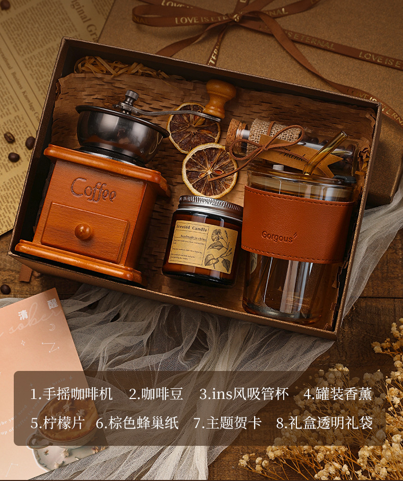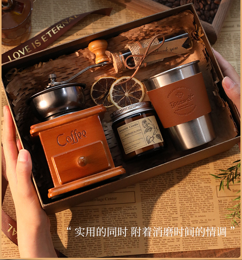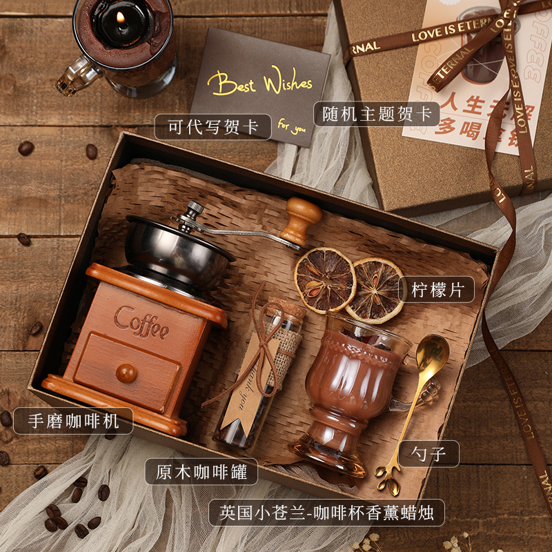 手磨咖啡机礼盒生日礼物女生送闺蜜实用高级感送男生实木 咖啡机