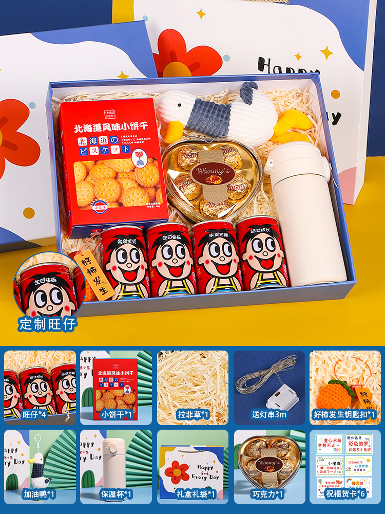 生日礼物送女生儿童小男孩女童创意可乐旺仔刻字礼盒18岁成人礼品