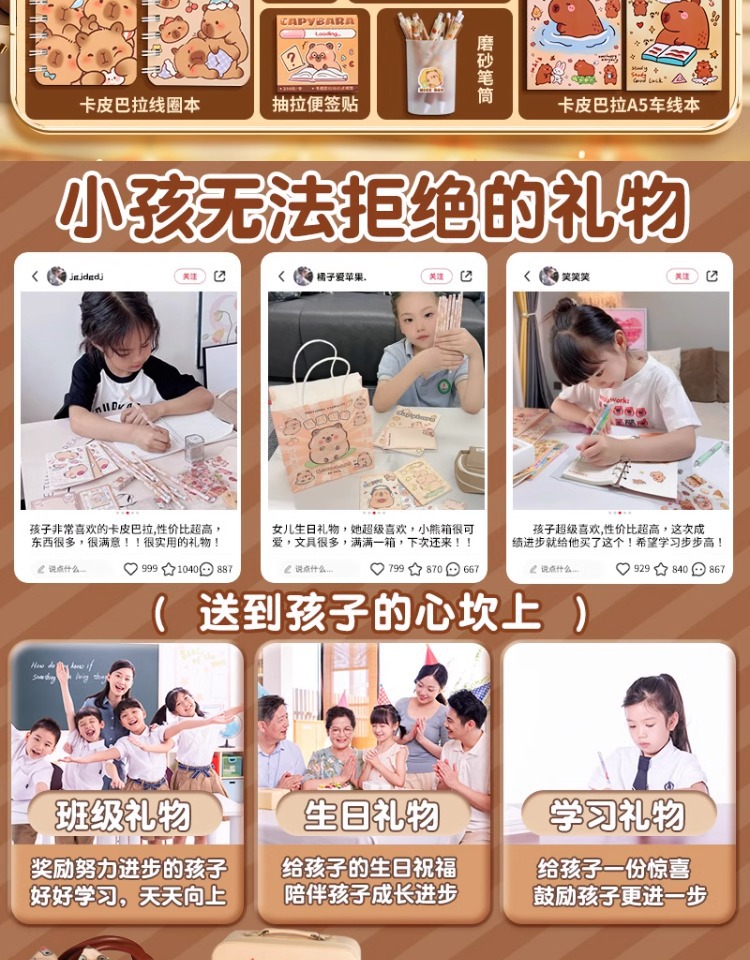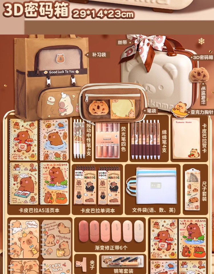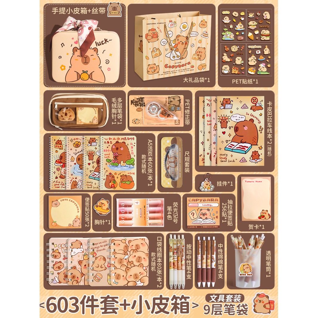 卡皮巴拉小女孩生日礼物新年儿童女生男实用学习用品文具套装礼盒
