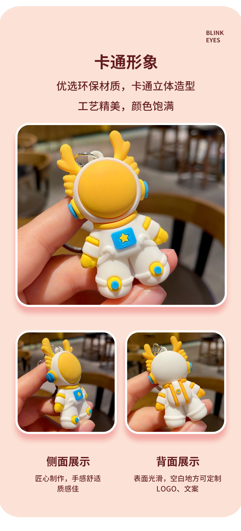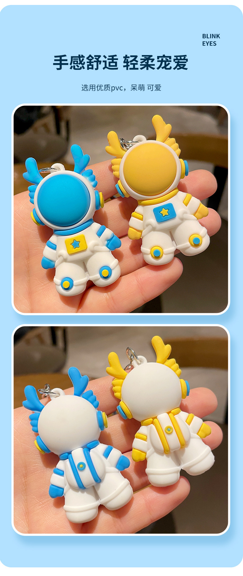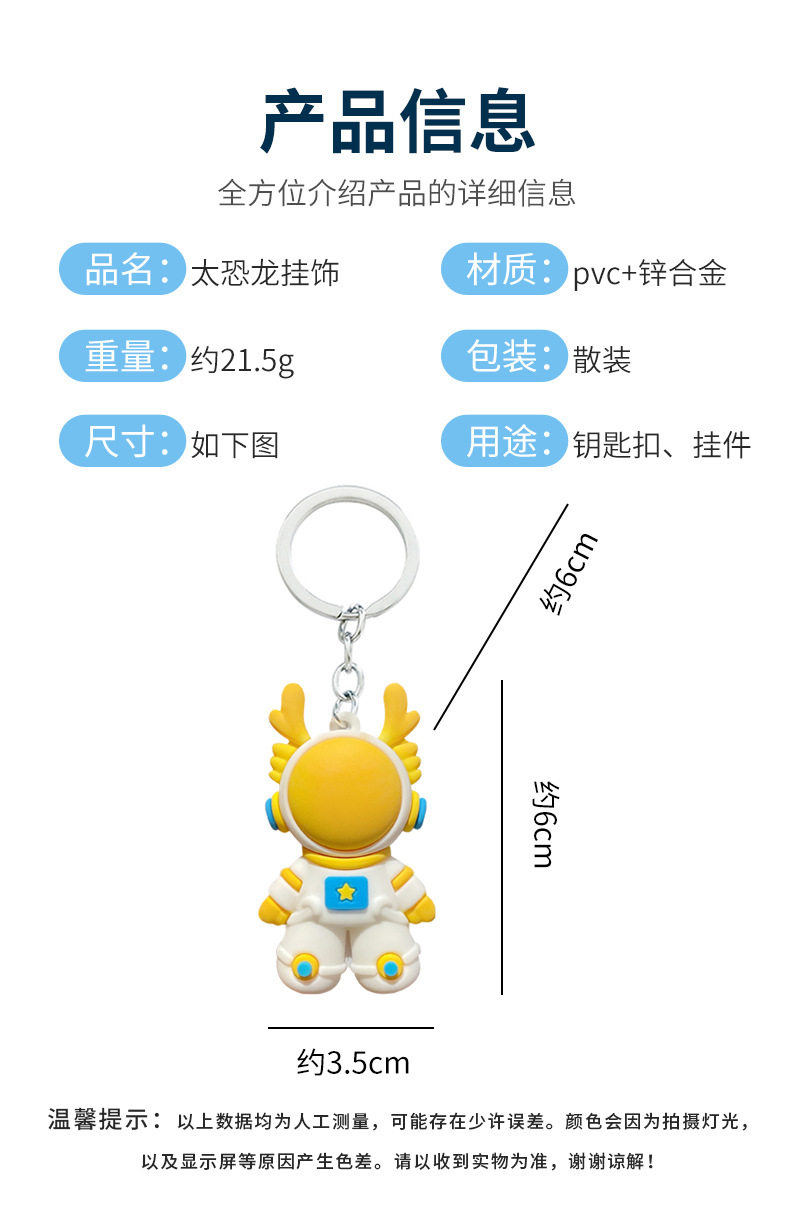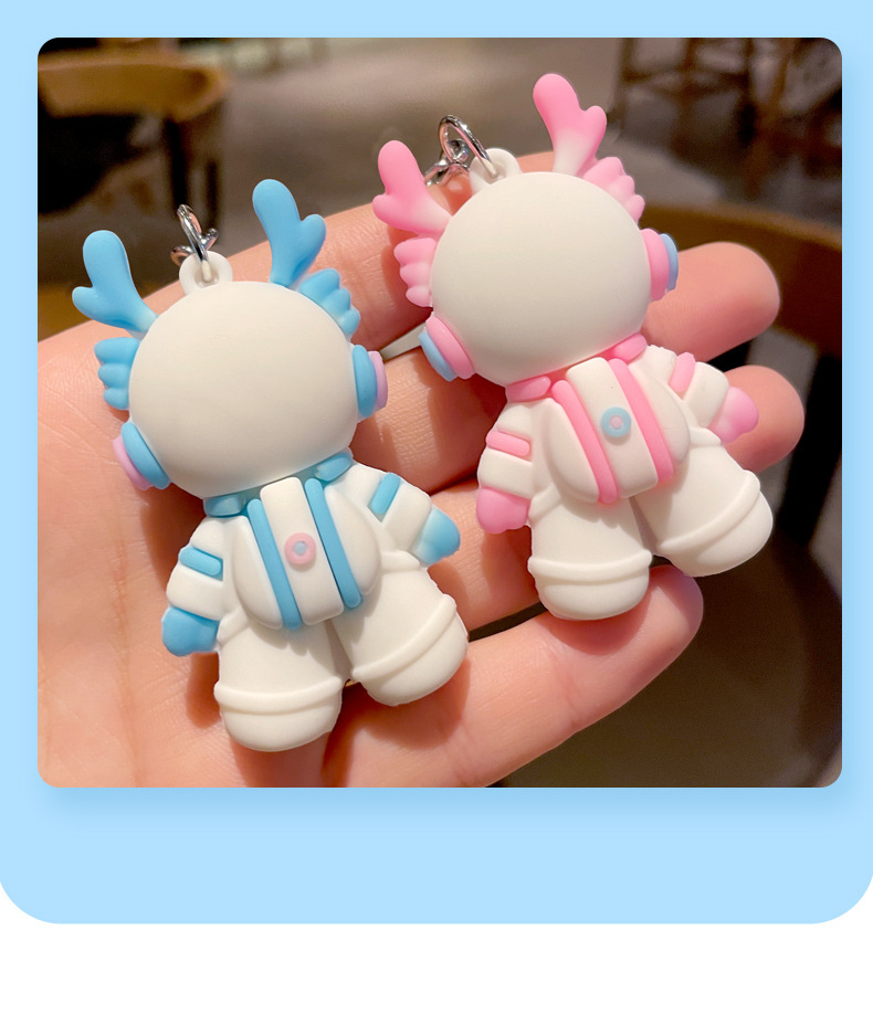 卡通立体太空龙PVC毕业钥匙扣 生肖礼物男女学生龙年钥匙小挂件