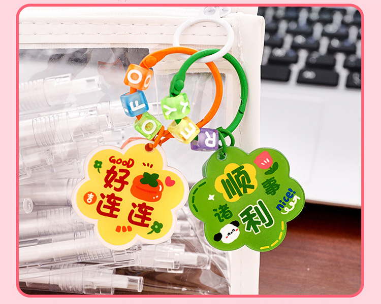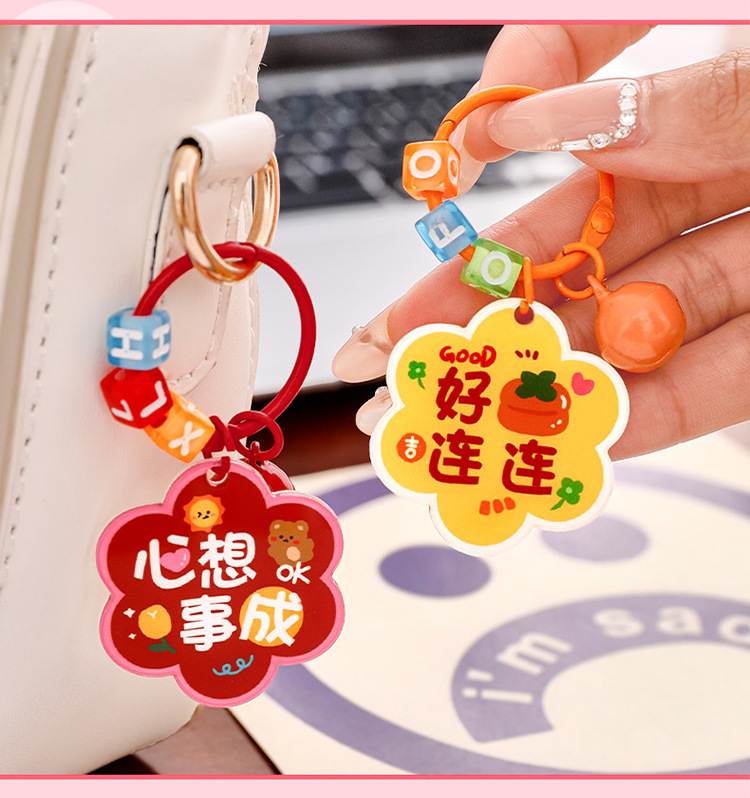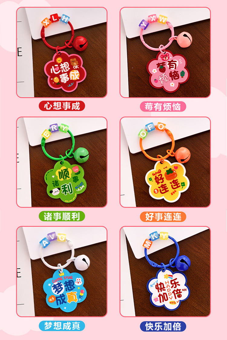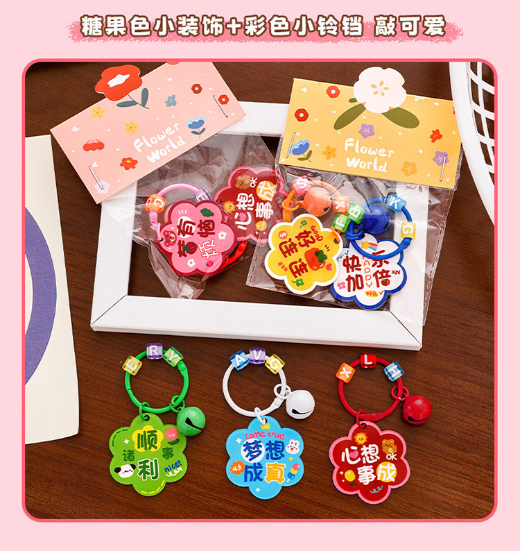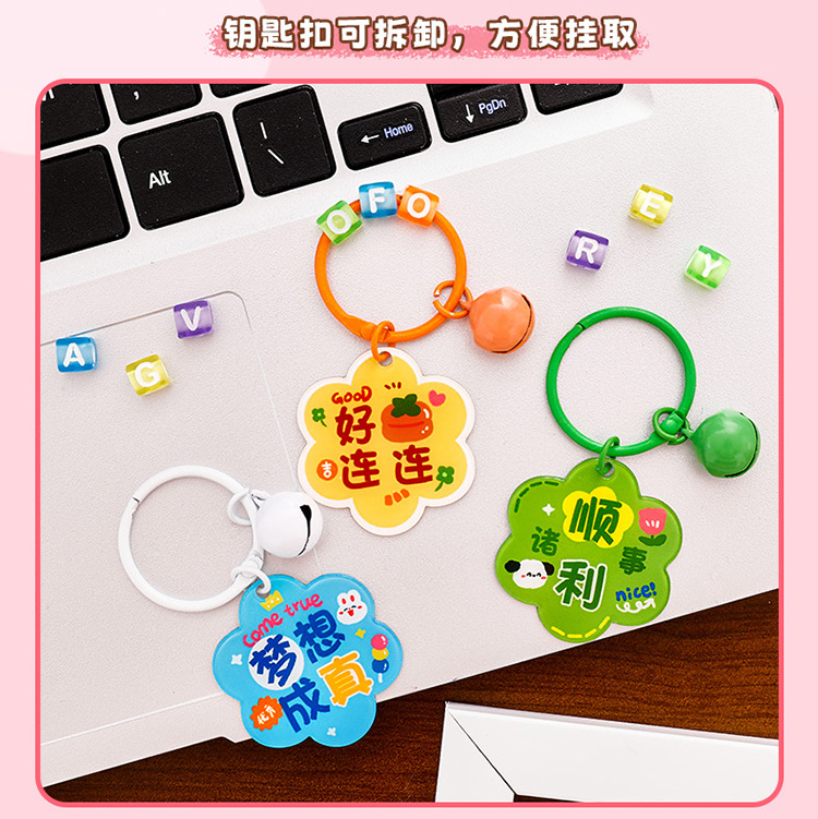 卡通花朵钥匙扣 学生励志diy包包挂饰高颜值亚克力铃铛钥匙扣