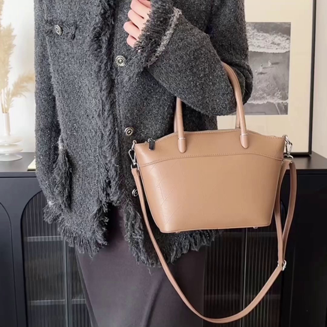 新款简约百搭小众手提水桶包女士通勤时尚纯色斜挎包9888
