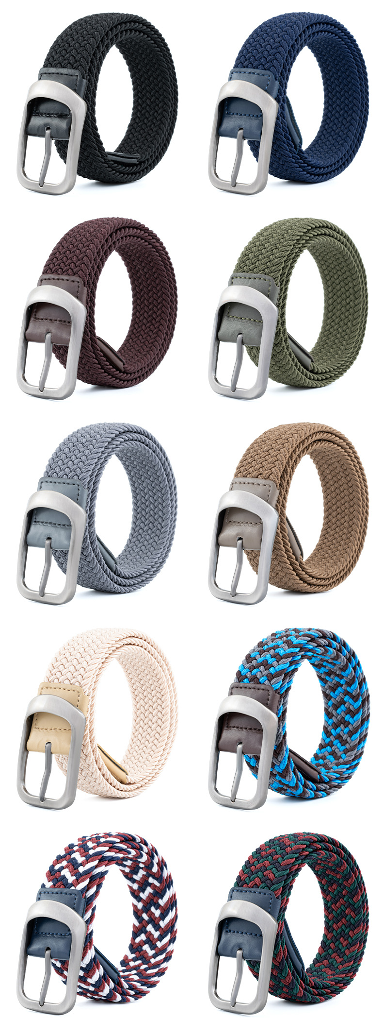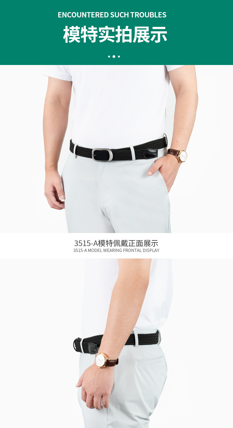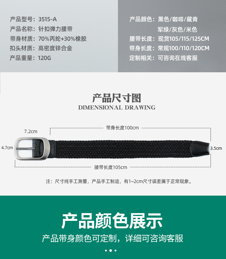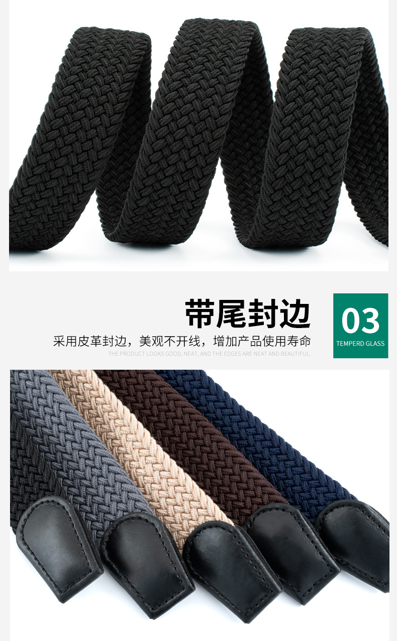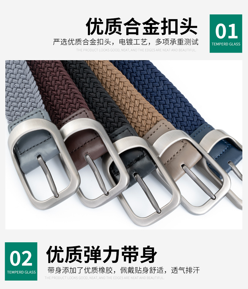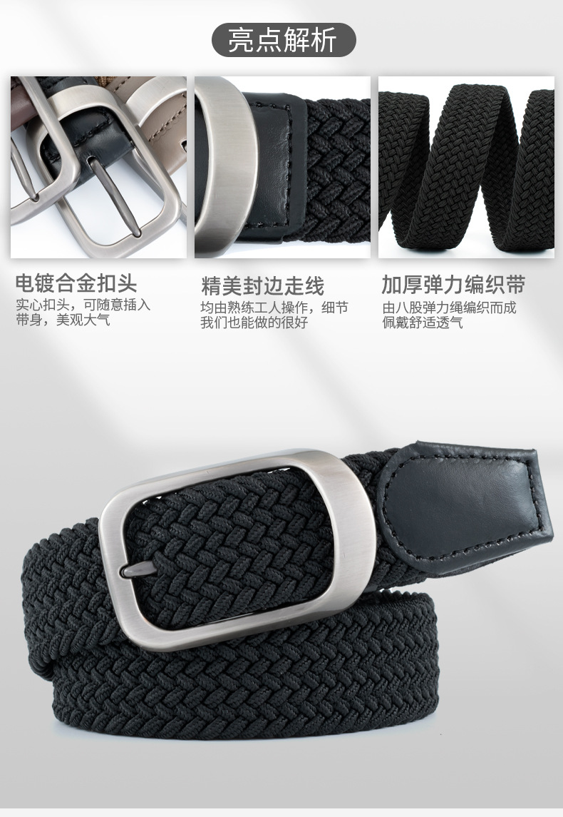 新款编织弹力男士腰带合金免打孔针扣松紧女士帆布潮流腰带皮带