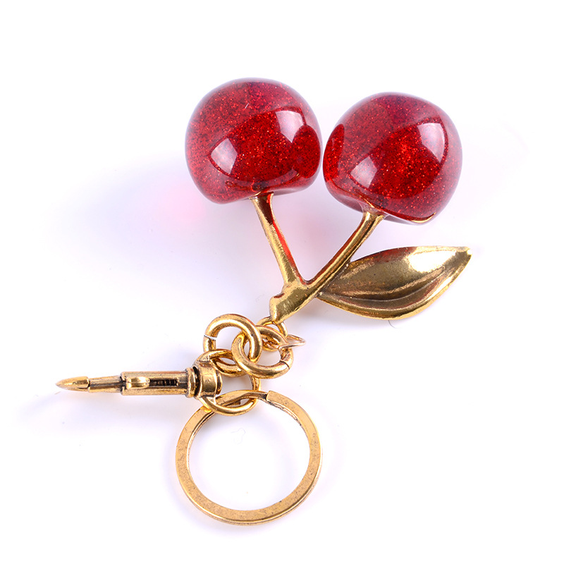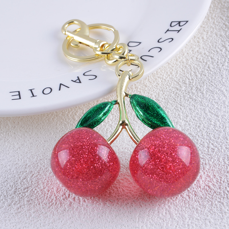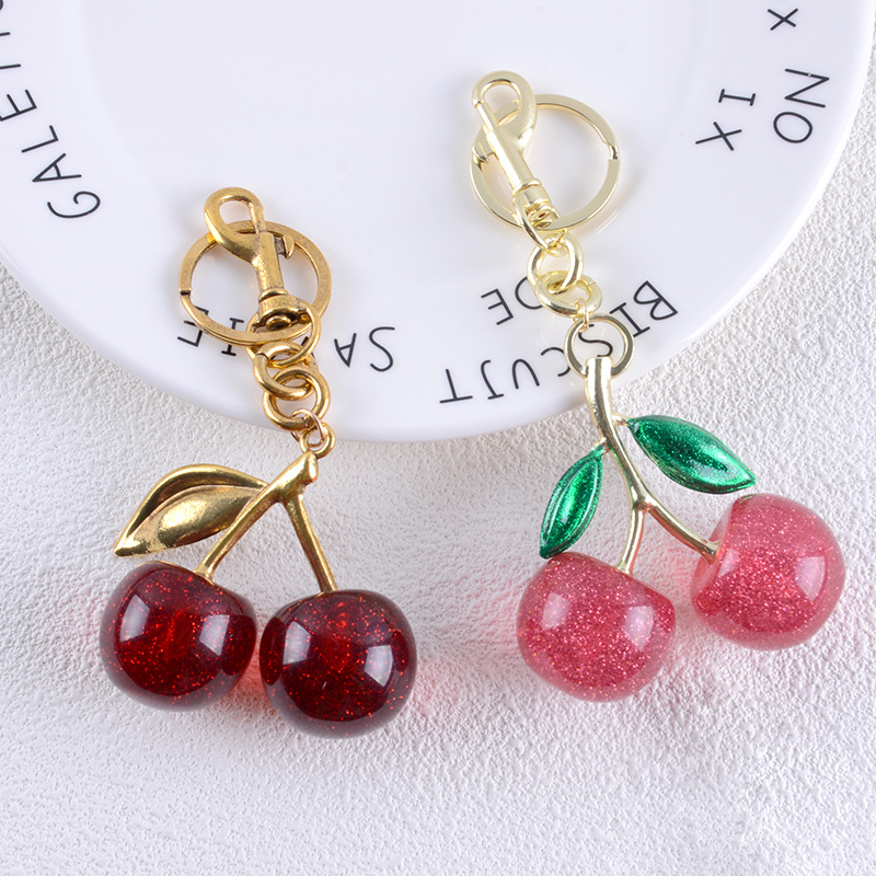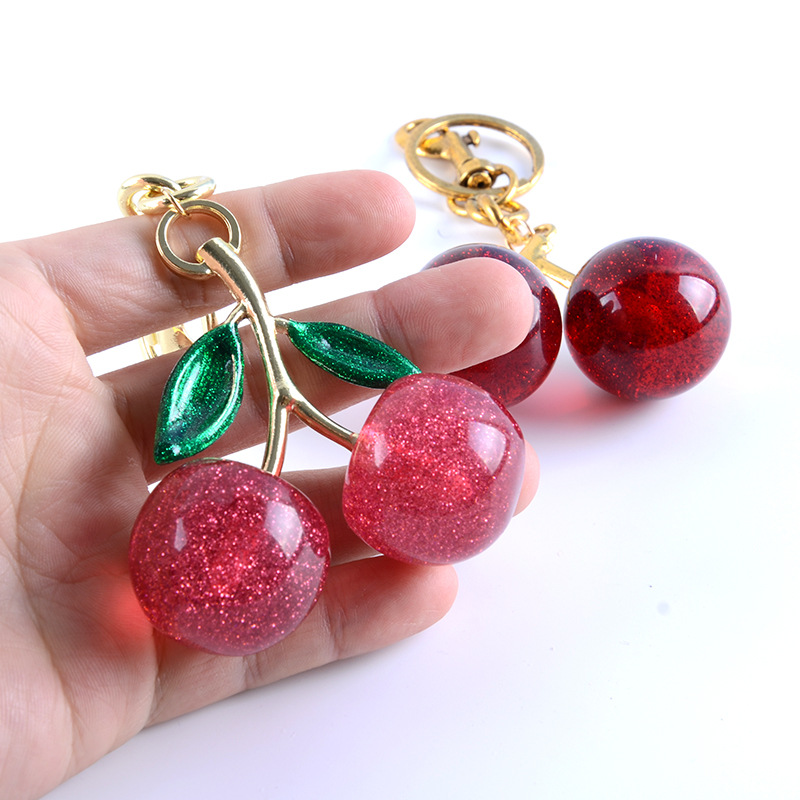 亚马逊热销精美女包挂件高级感钥匙扣 可爱水晶樱桃精美吊坠饰品
