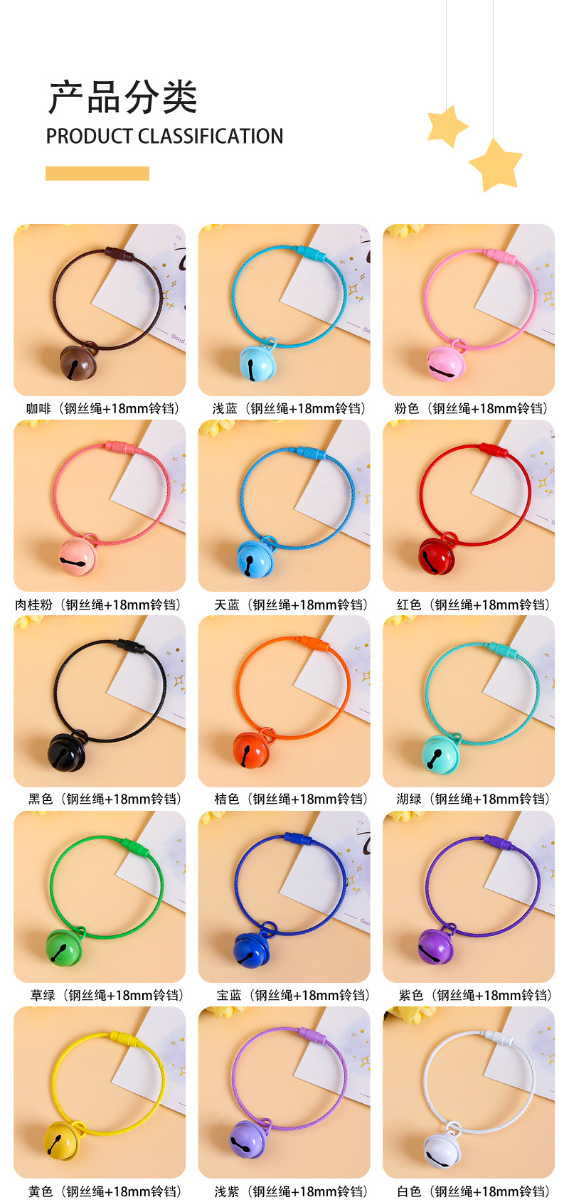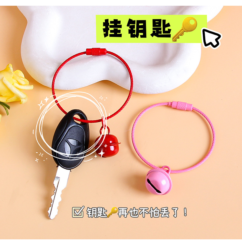糖果色铃铛18mm钢丝圈钥匙扣挂件彩色烤漆钢丝绳diy公仔包包挂饰