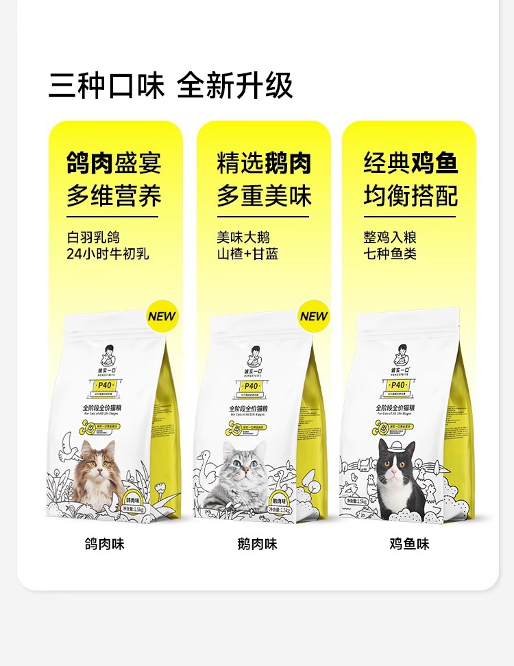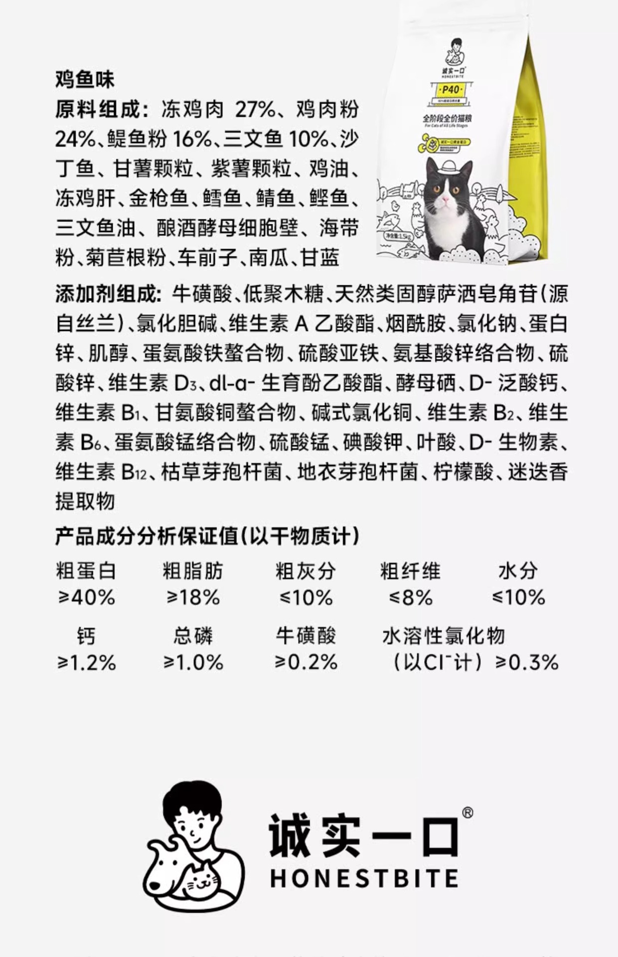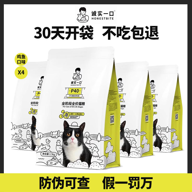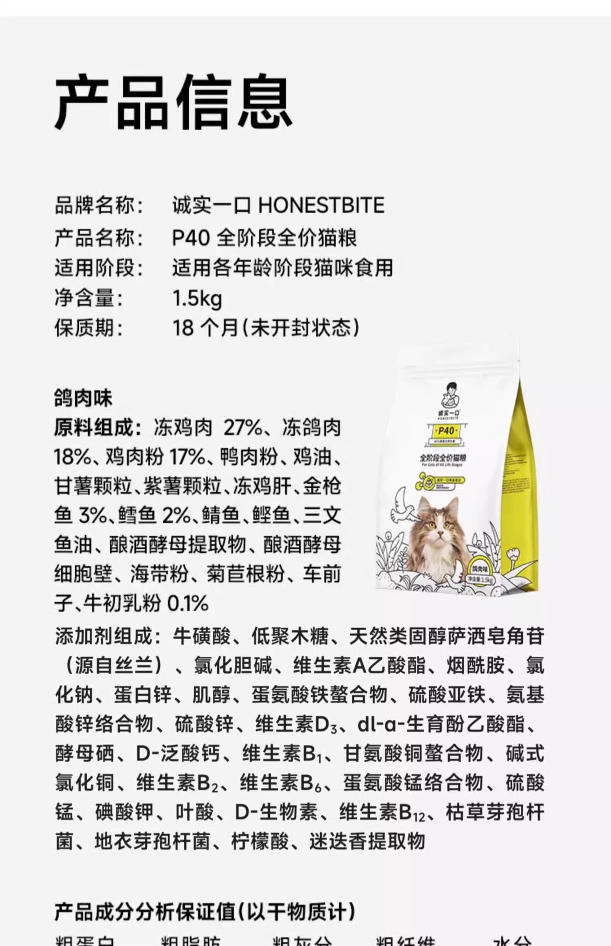 诚实一口P40全价成幼猫1.5kg无谷高蛋白成猫幼猫乳鸽猫粮一件代发