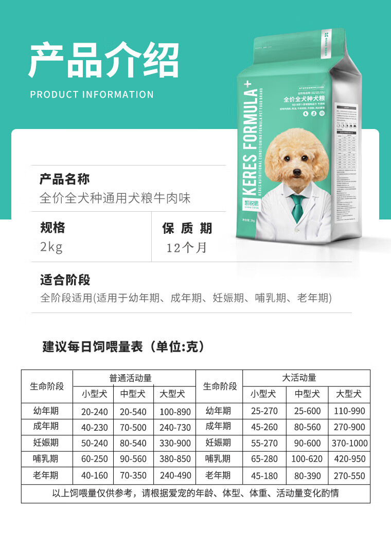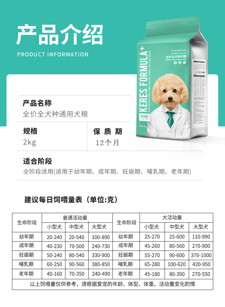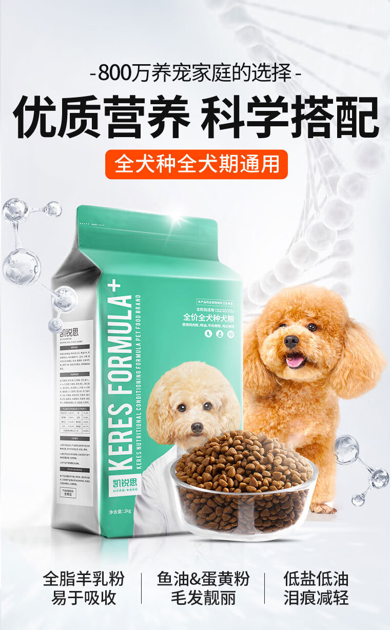 凯锐思狗粮幼犬成犬通用狗粮中小型犬比熊博美泰迪金毛专用粮2kg