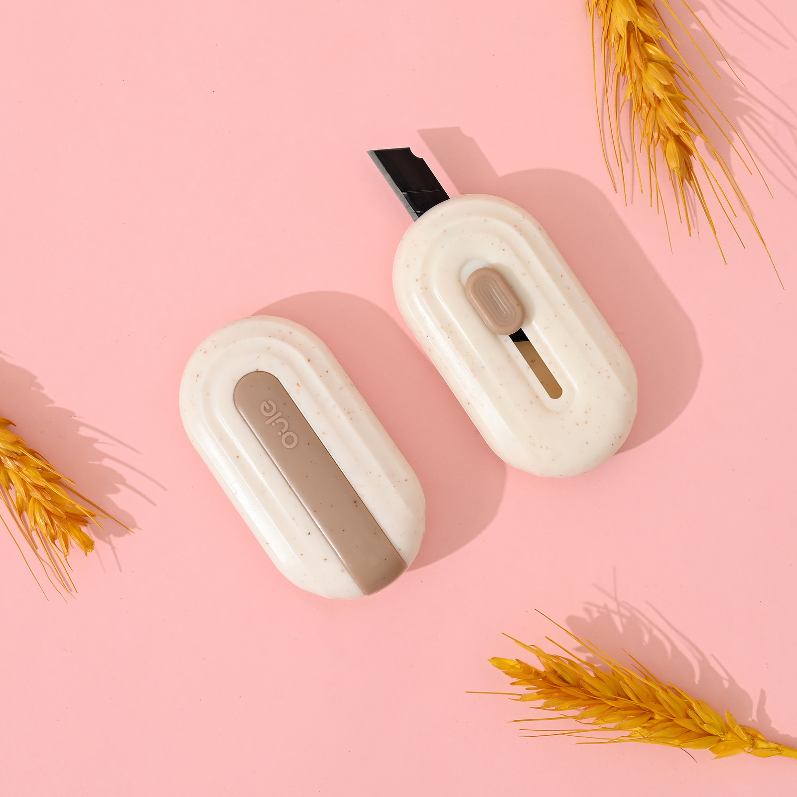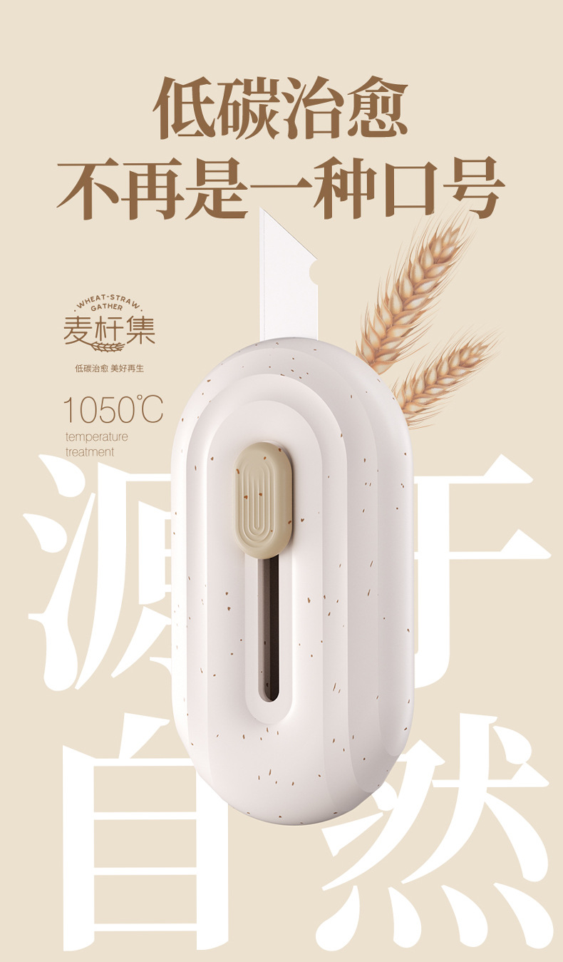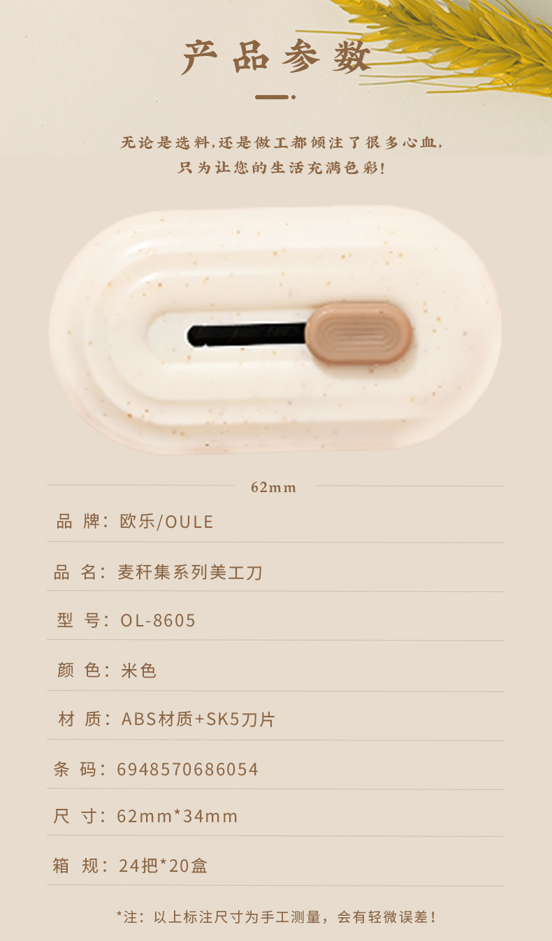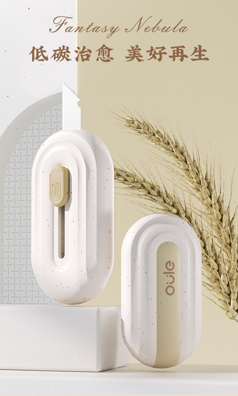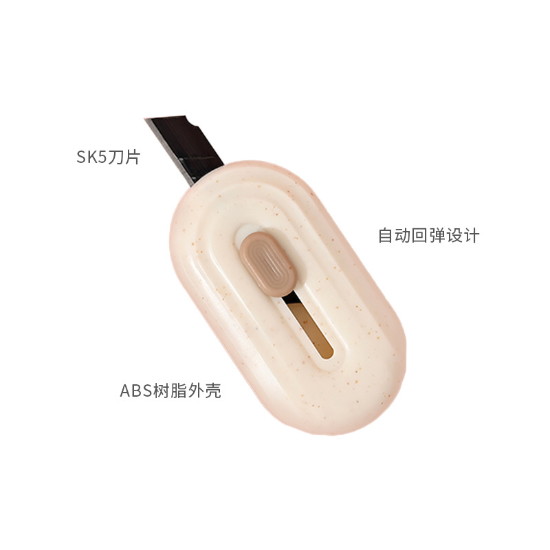 欧乐文具麦秆集系列美工刀椭圆形镀钛小刀不粘胶家用办公便携小刀