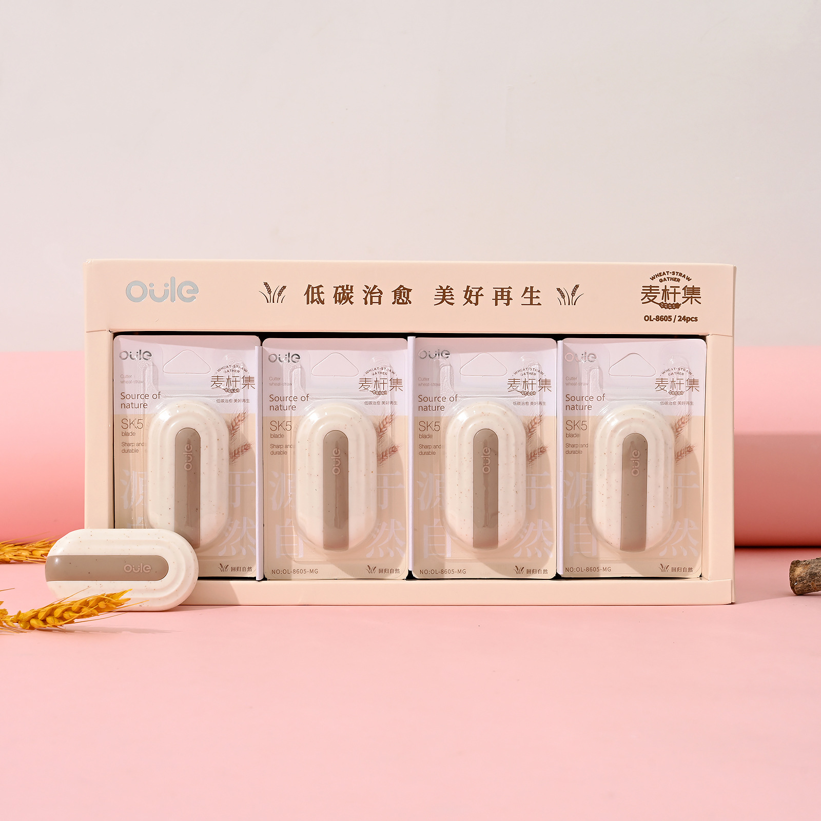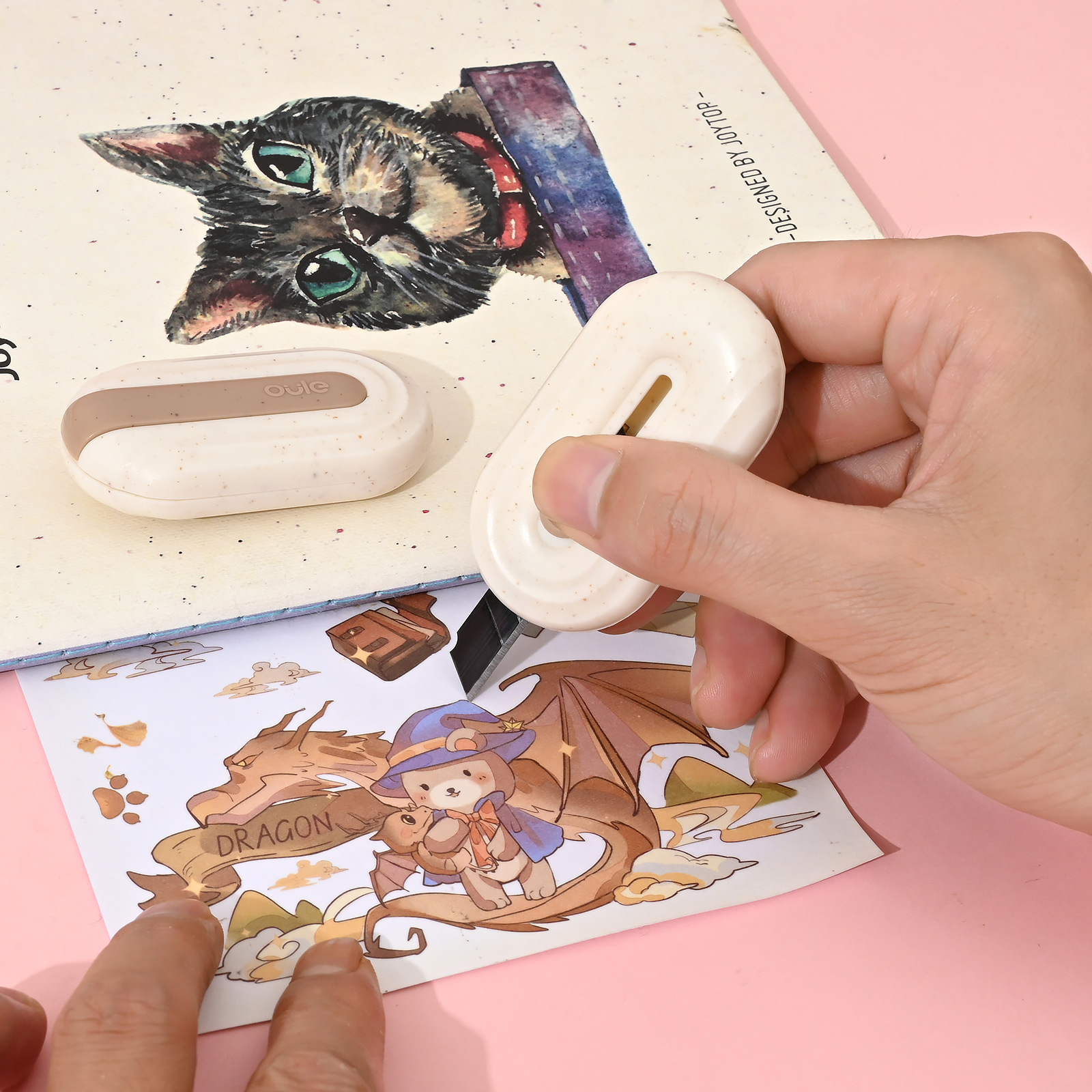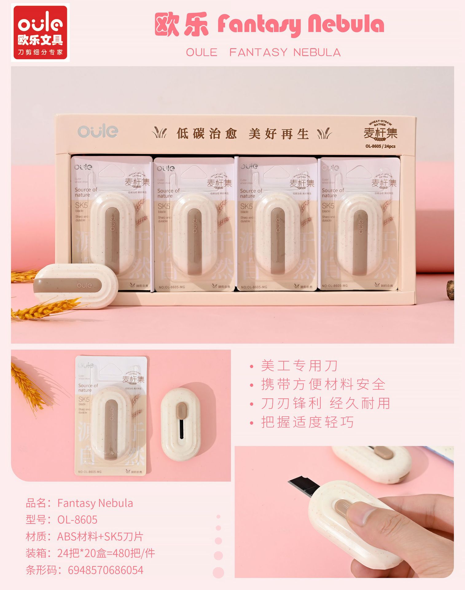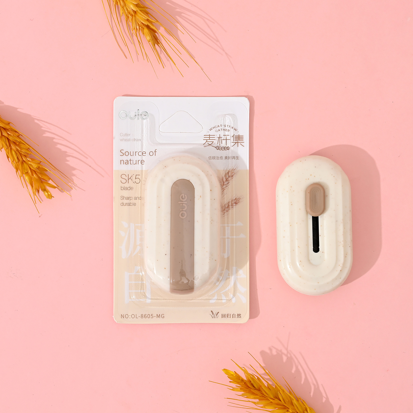 欧乐文具麦秆集系列美工刀椭圆形镀钛小刀不粘胶家用办公便携小刀