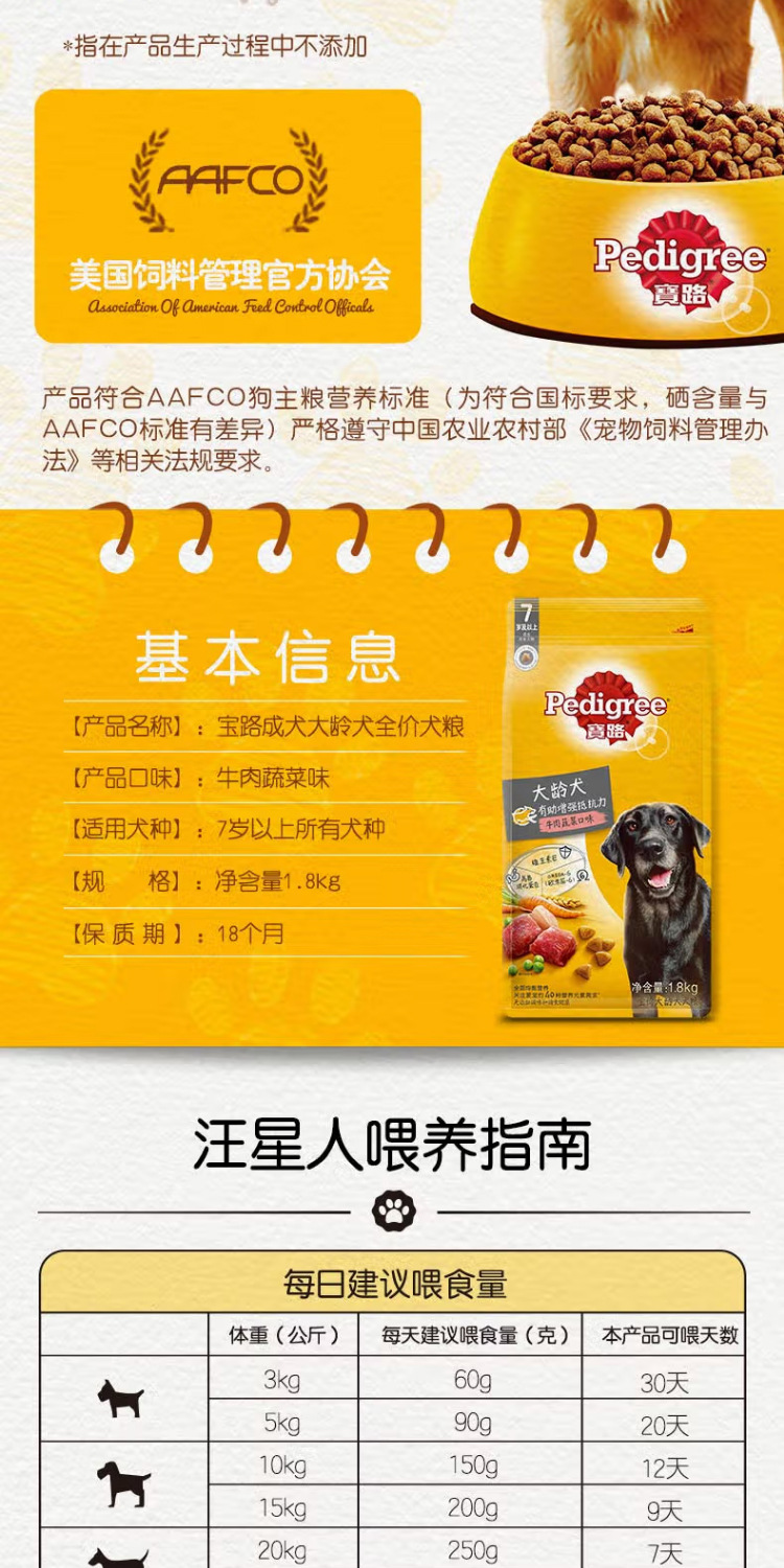 宝/路宠物狗粮大龄犬全价粮牛肉味1.8kg泰迪柯基拉布拉多全犬种通