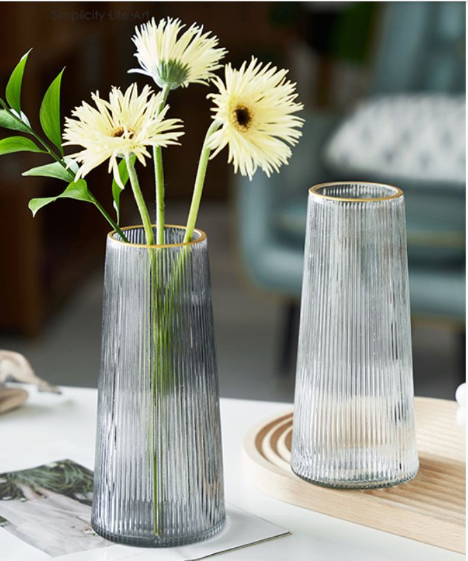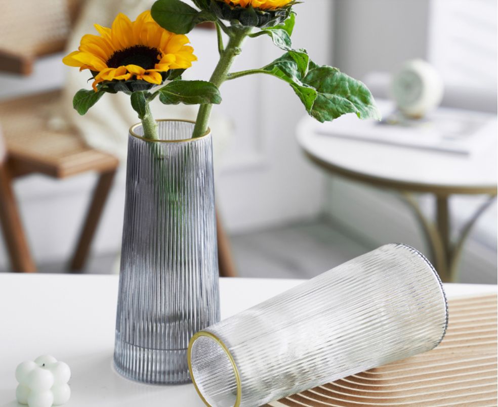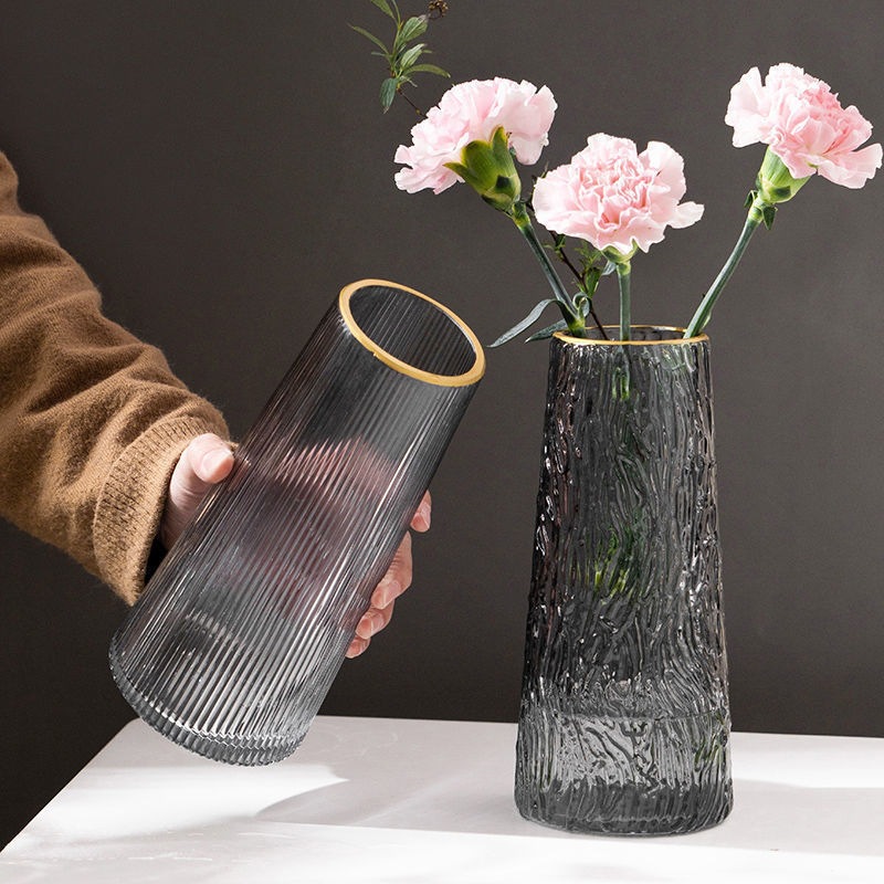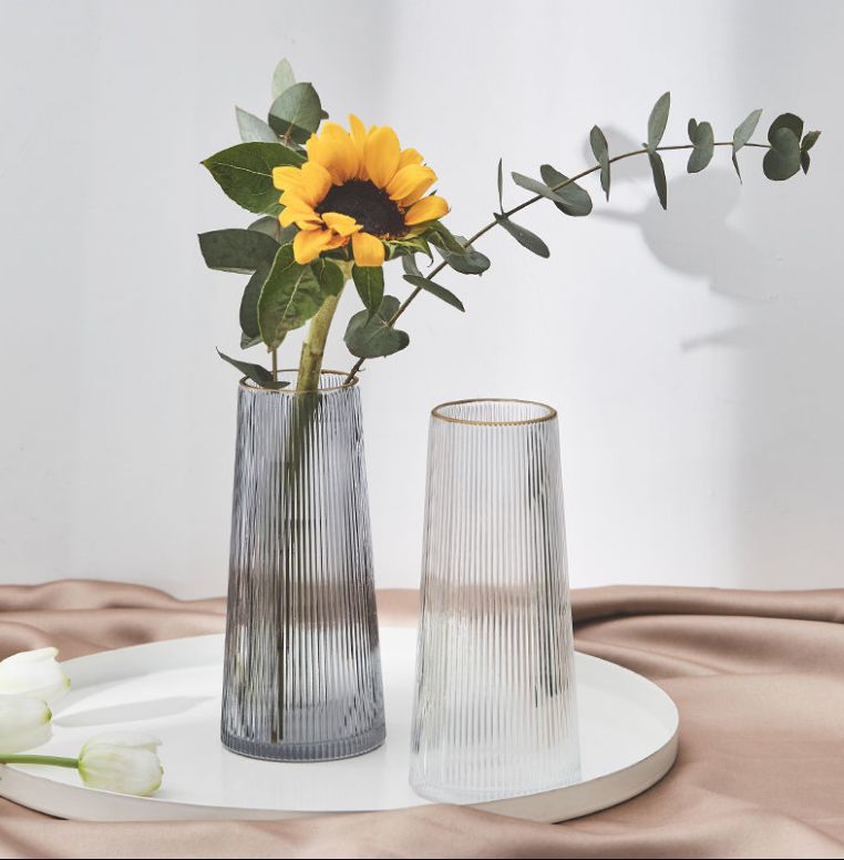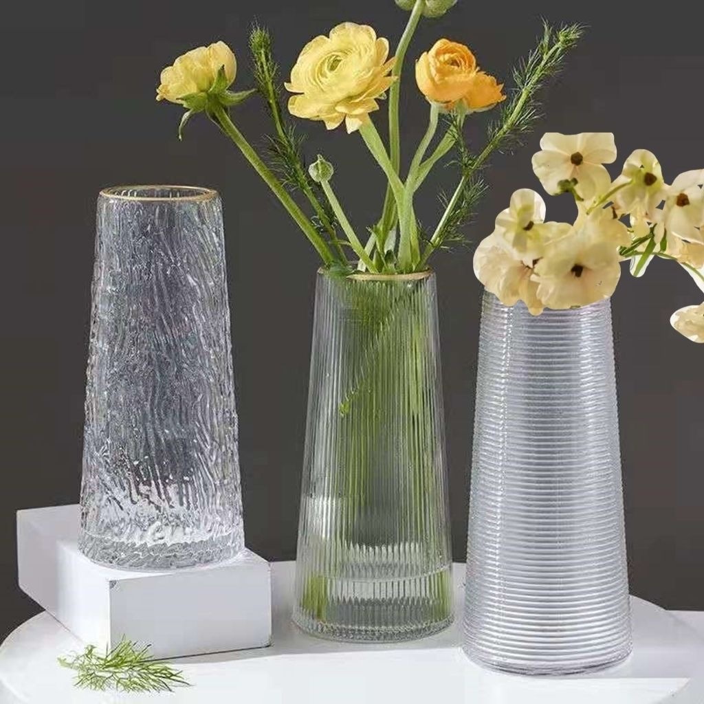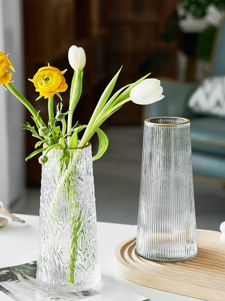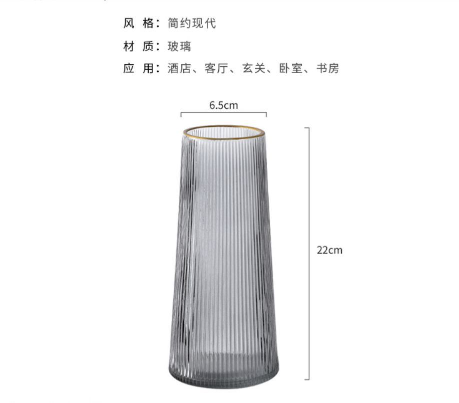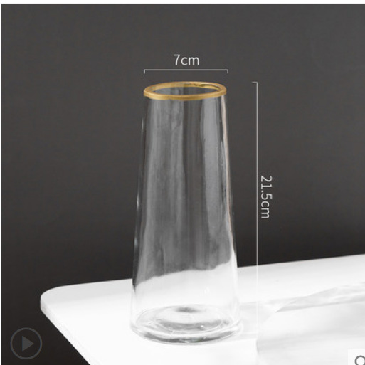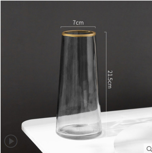 厂家描金花瓶透明玻璃客厅居家装饰摆件北欧水养插花创意简约花器