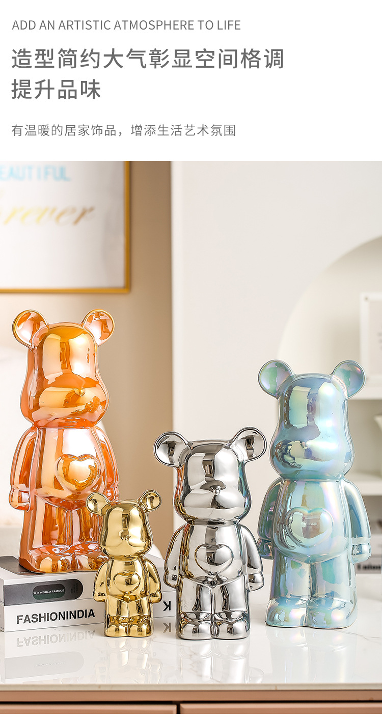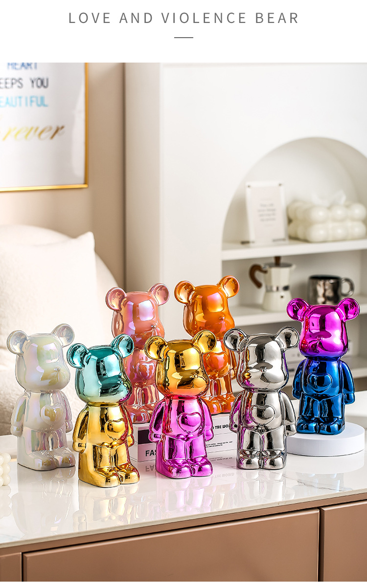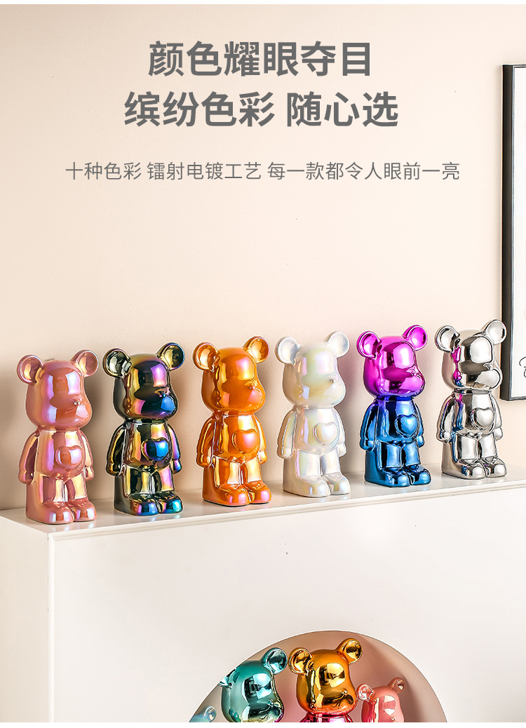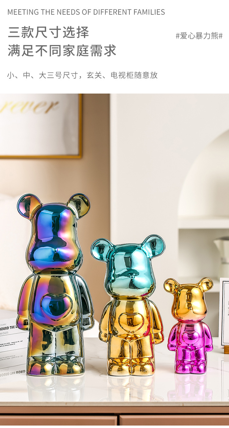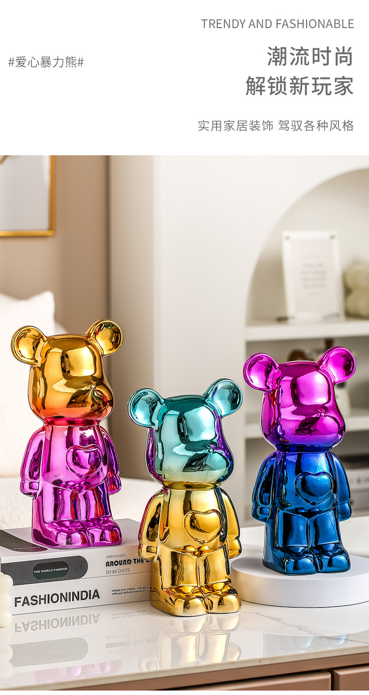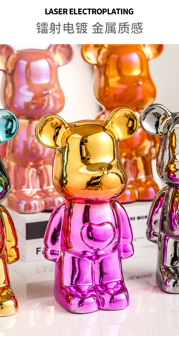 一件代发暴力熊存钱罐陶瓷电镀爱心熊大号潮牌电视柜摆件套圈批发