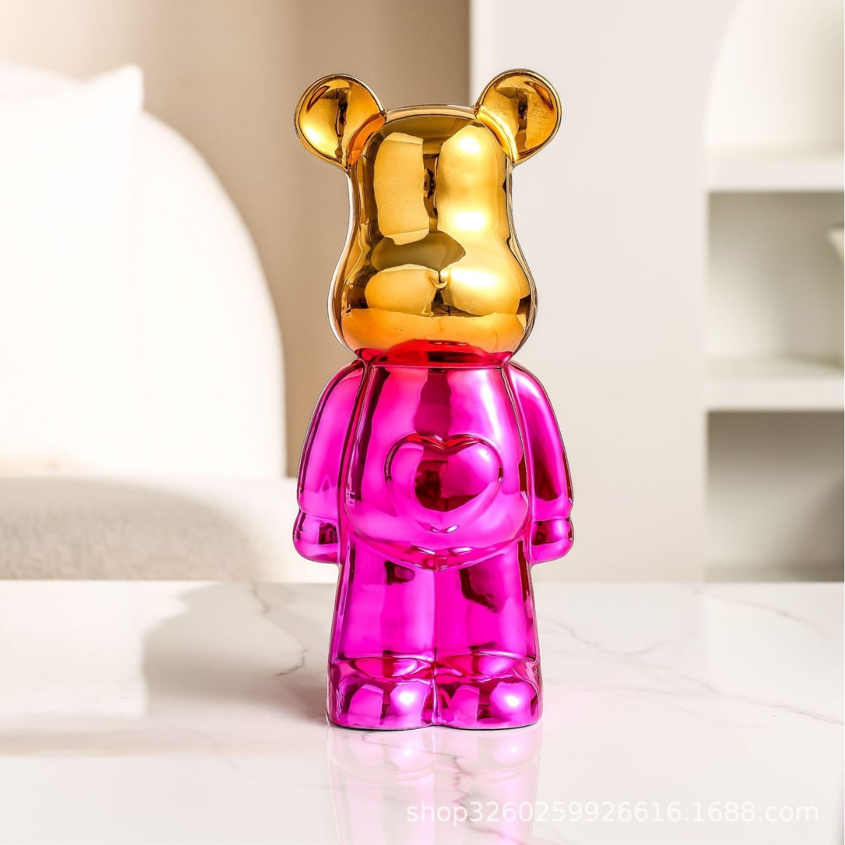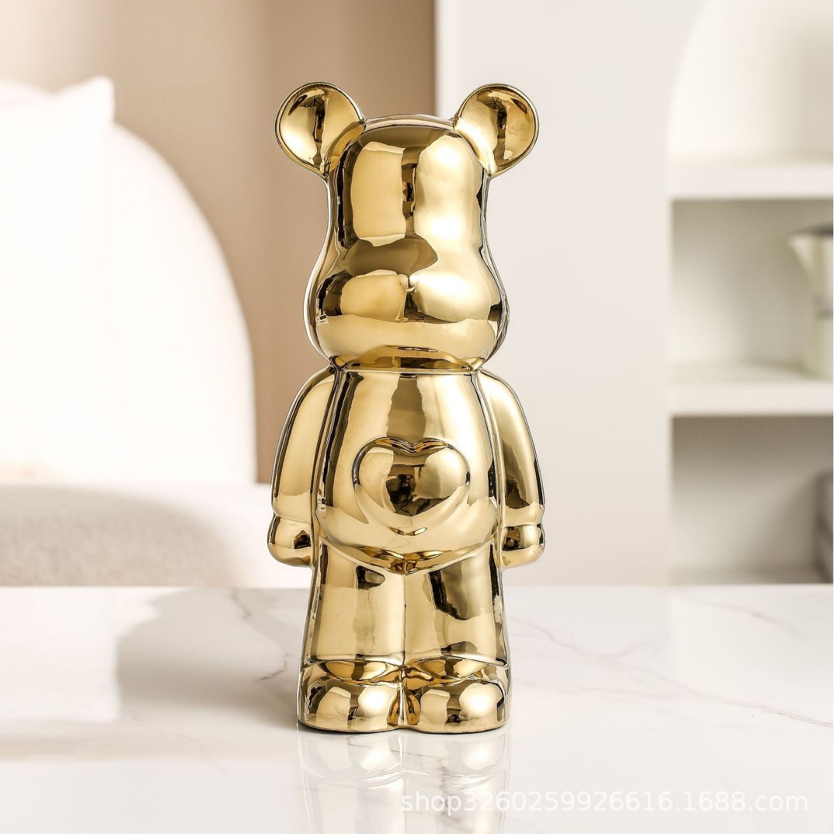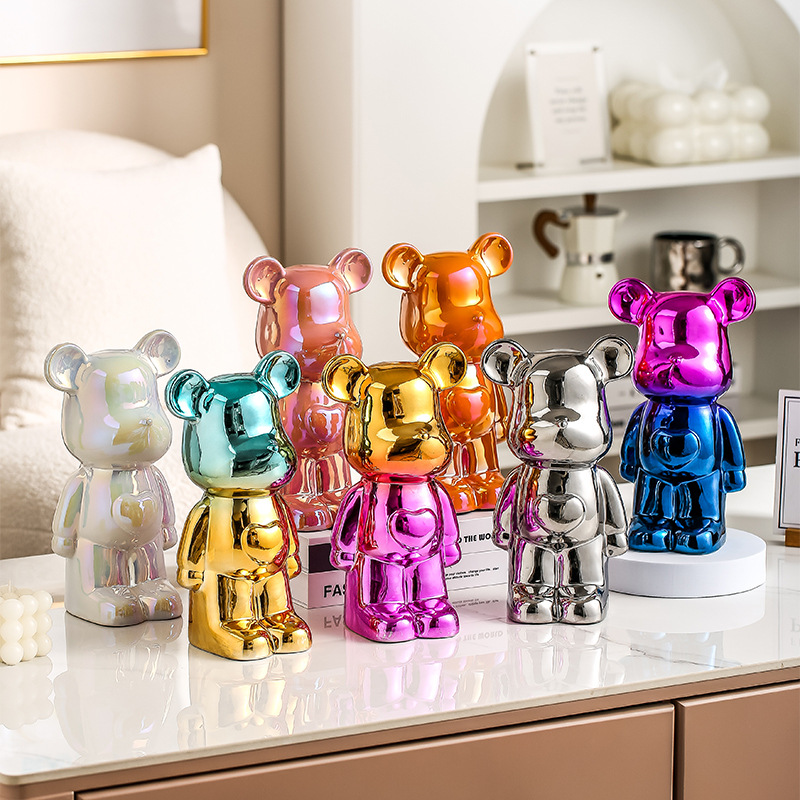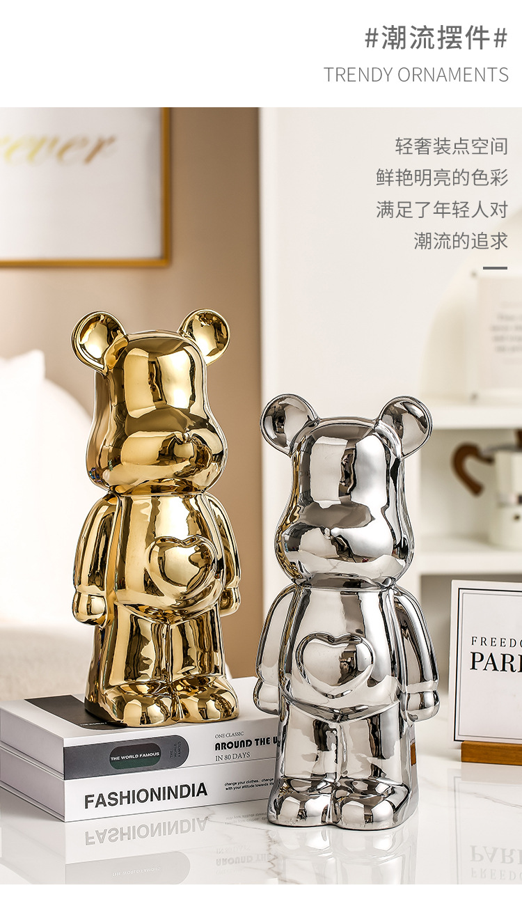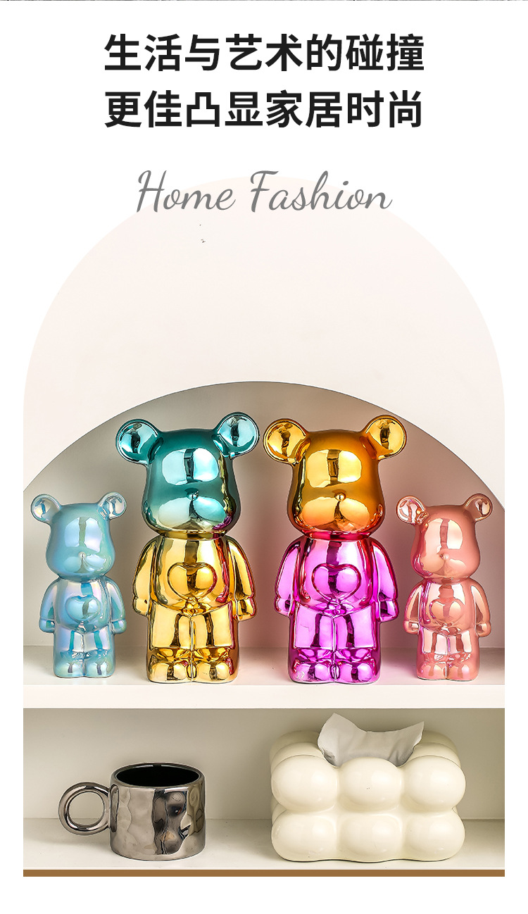 一件代发暴力熊存钱罐陶瓷电镀爱心熊大号潮牌电视柜摆件套圈批发