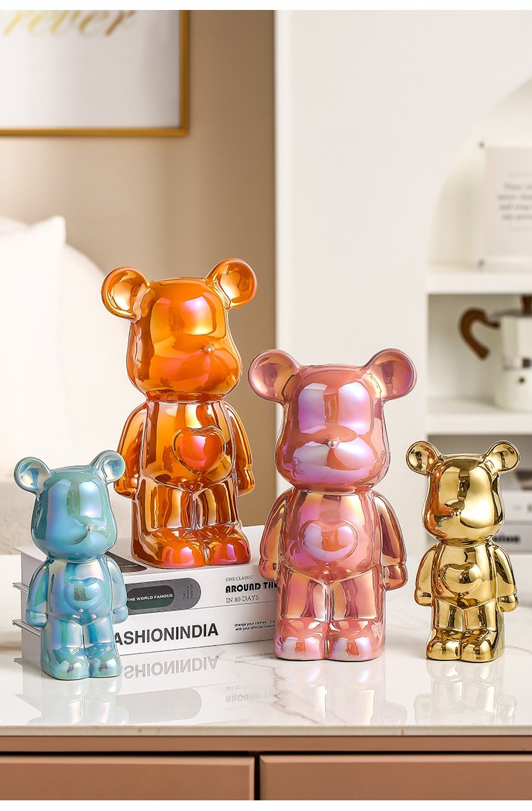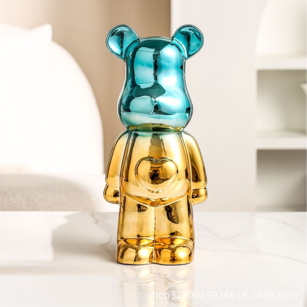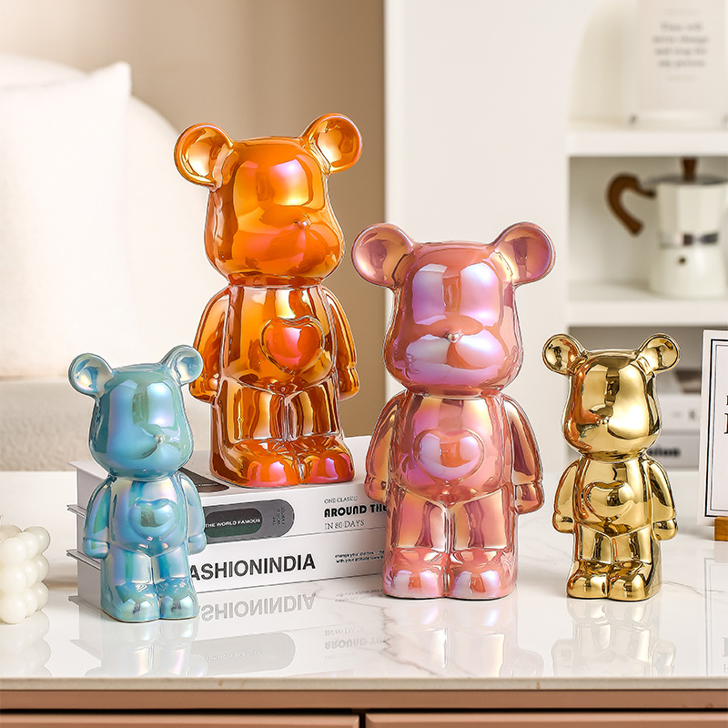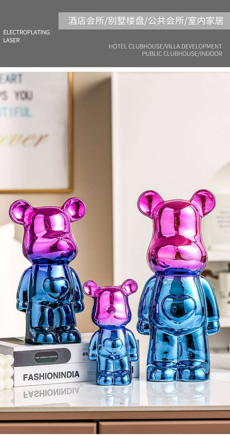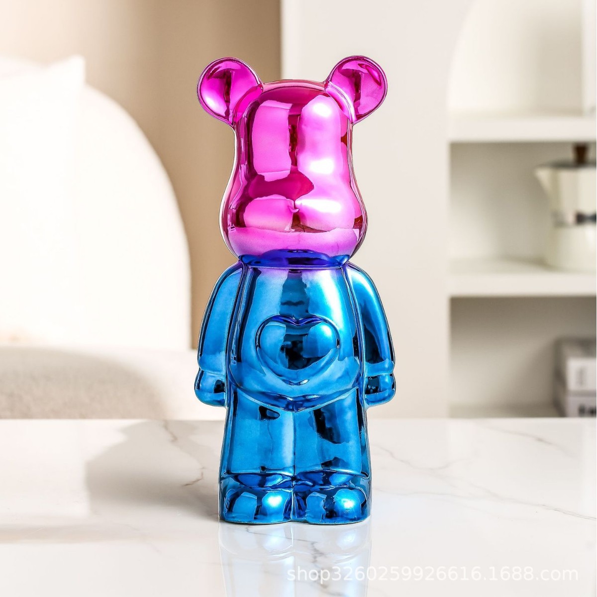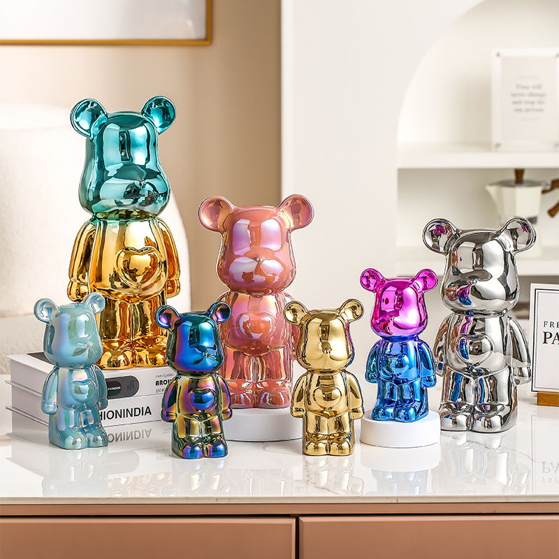 一件代发暴力熊存钱罐陶瓷电镀爱心熊大号潮牌电视柜摆件套圈批发