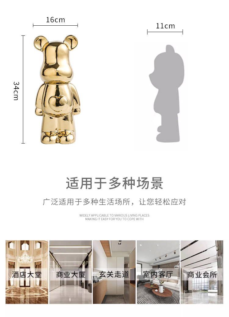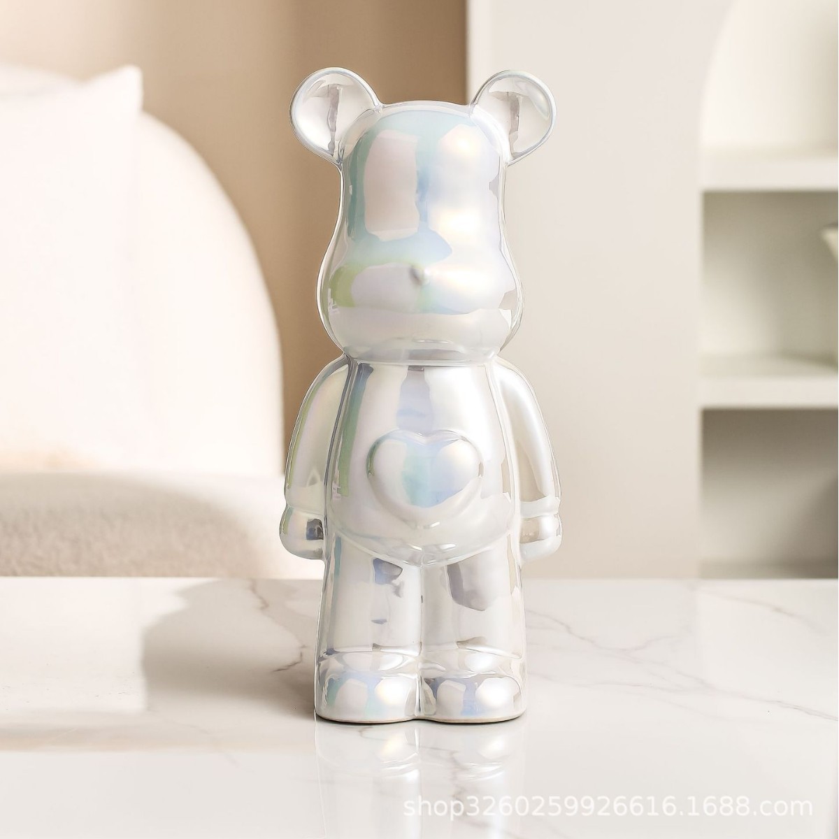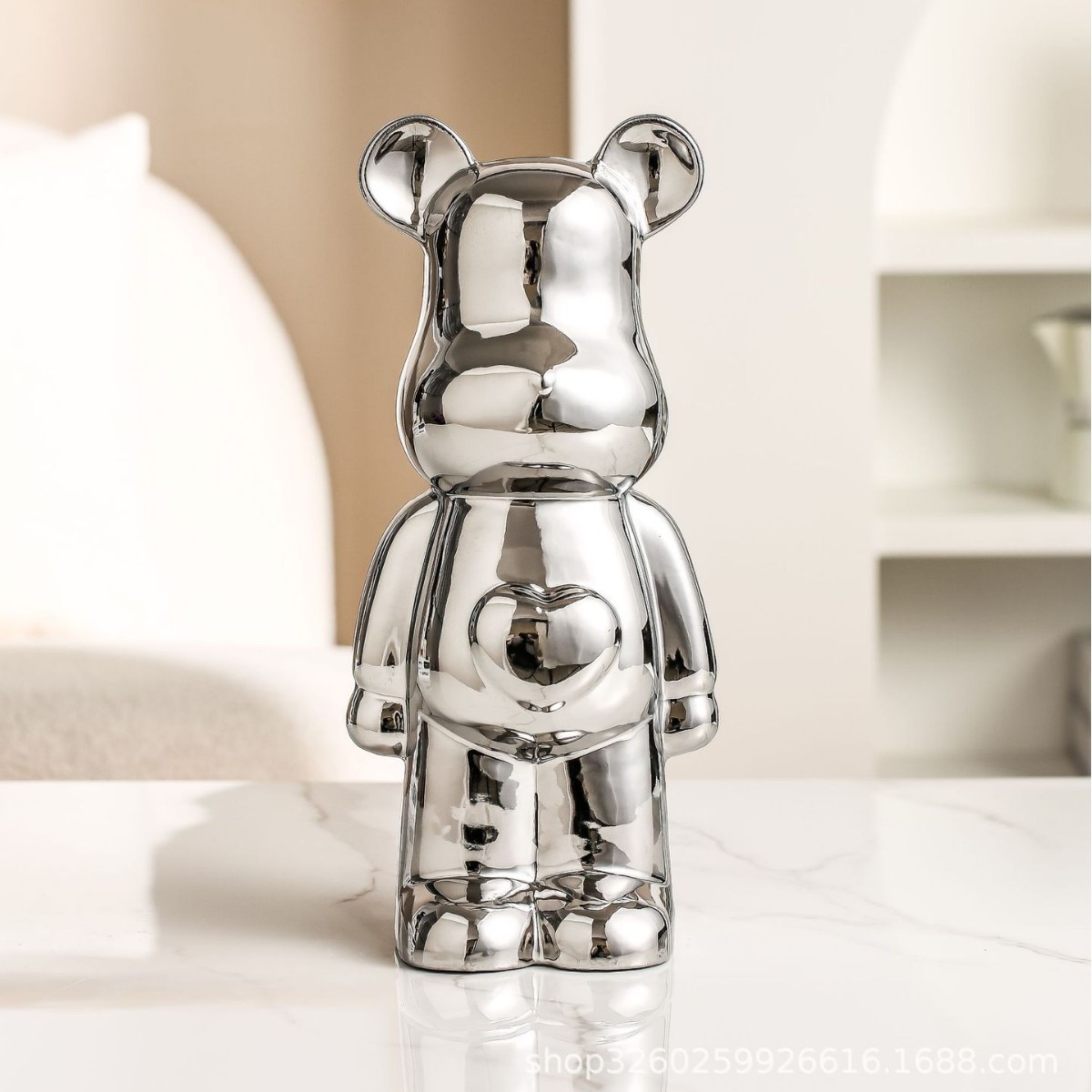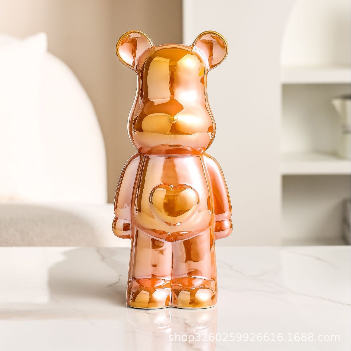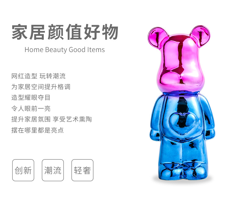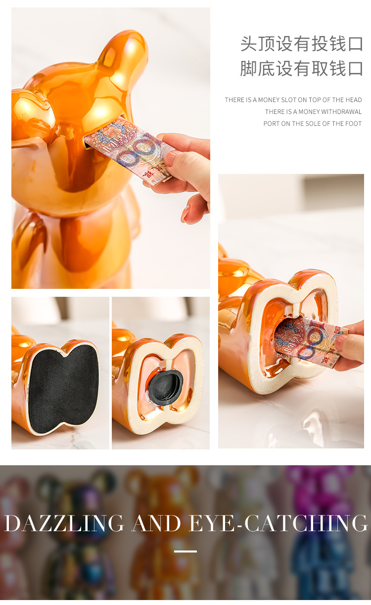 一件代发暴力熊存钱罐陶瓷电镀爱心熊大号潮牌电视柜摆件套圈批发