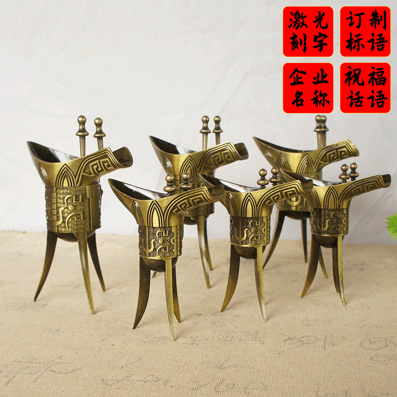 仿古爵杯乾隆酒杯创意摆件青古铜三脚杯金属工艺品礼品摄影道具