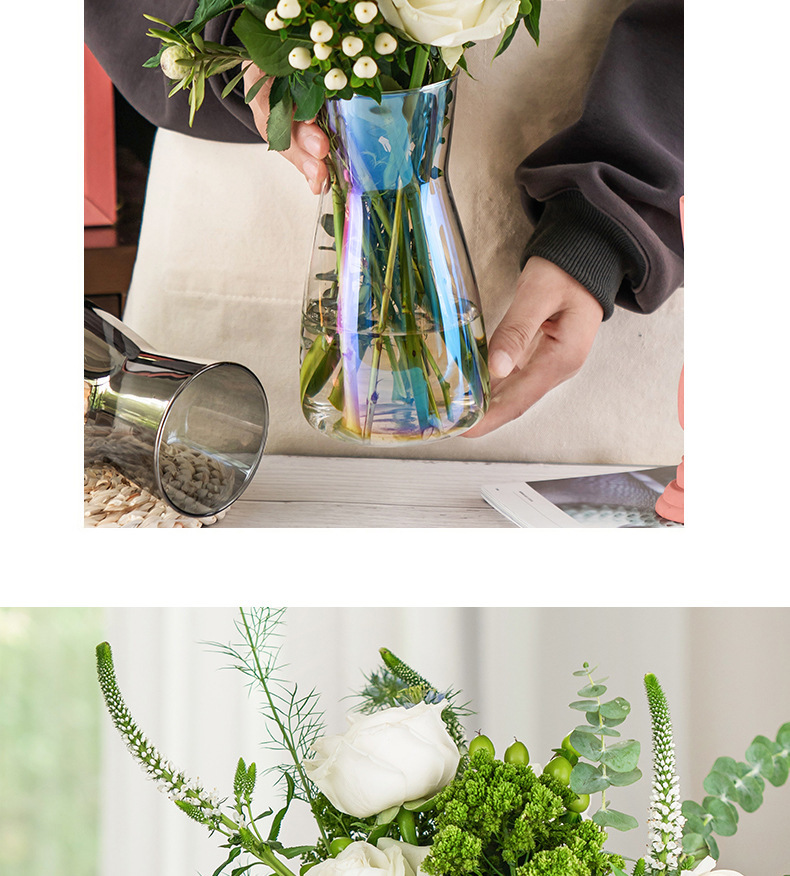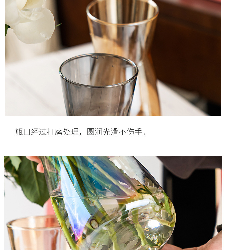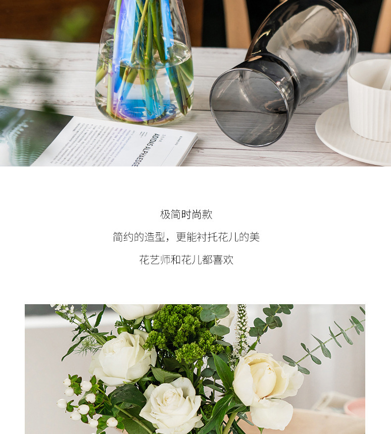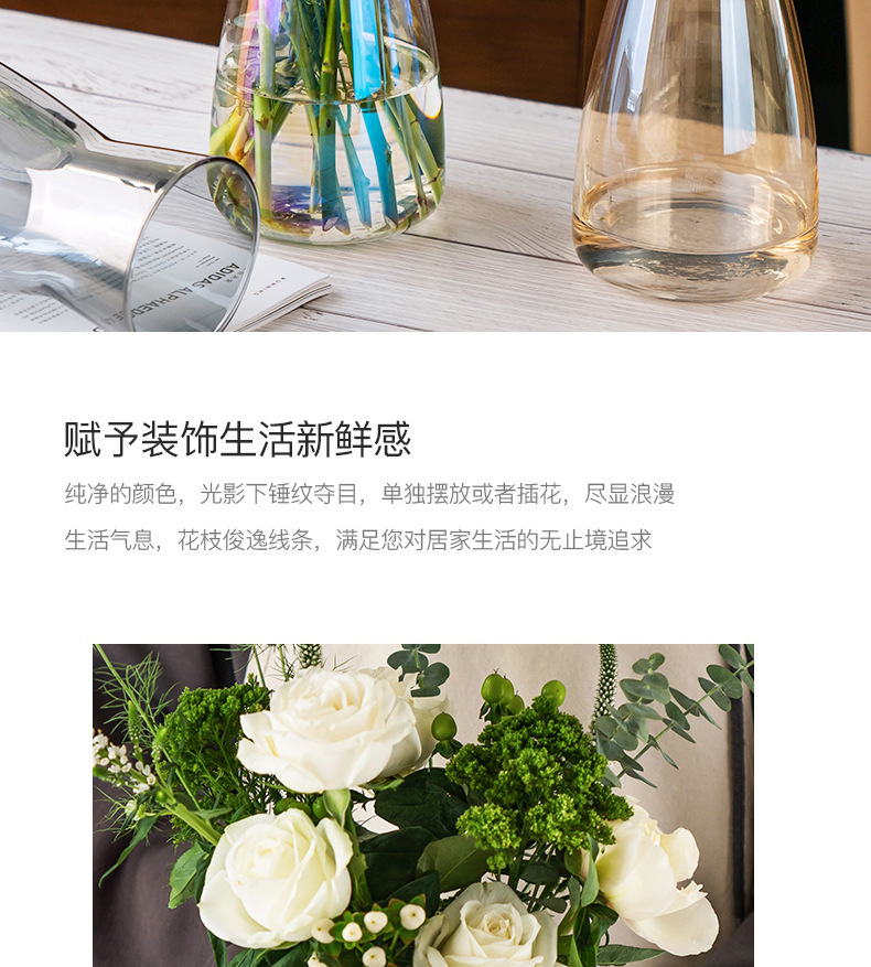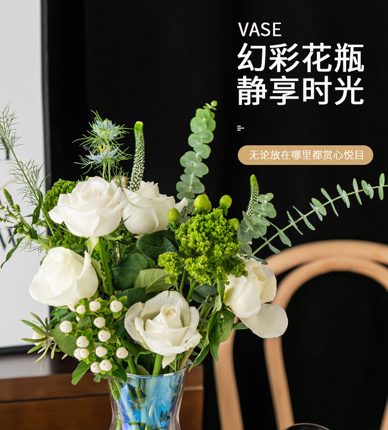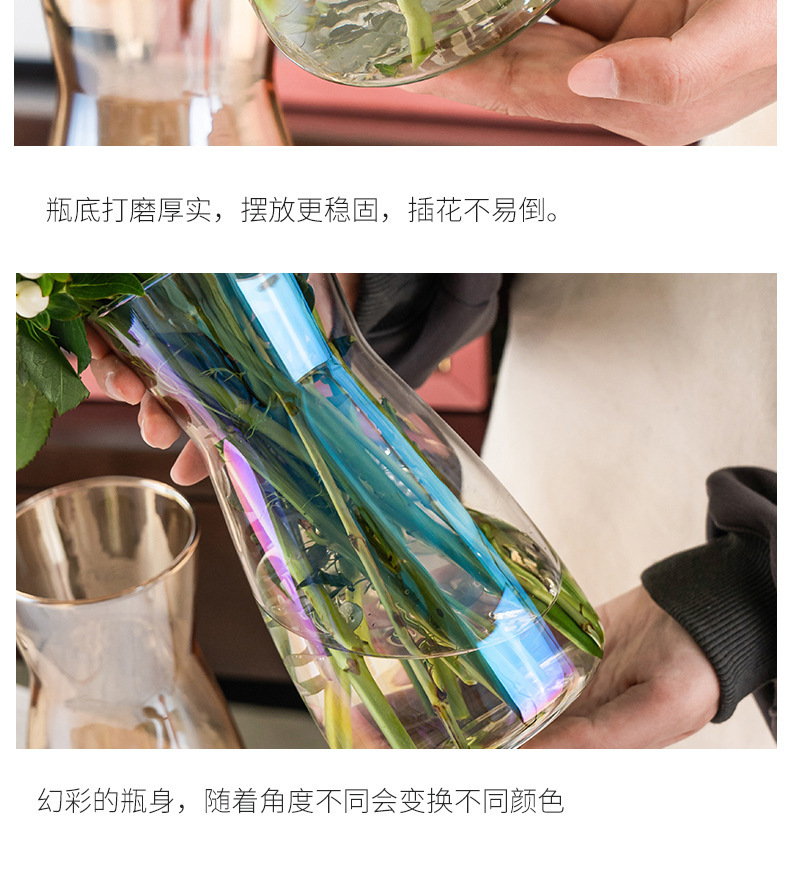 北欧幻彩玻璃花瓶简约透明水养百合玫瑰花装饰小花器插花花瓶摆件