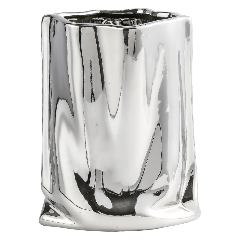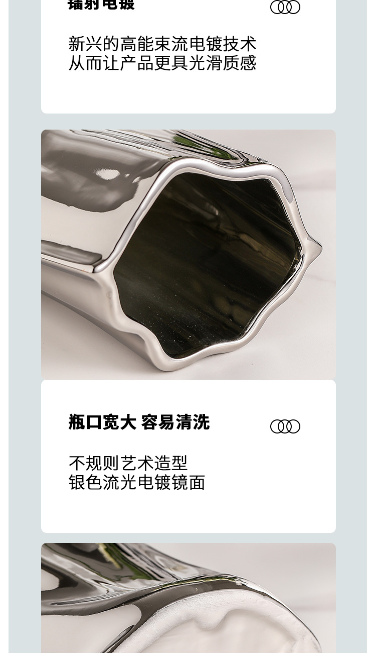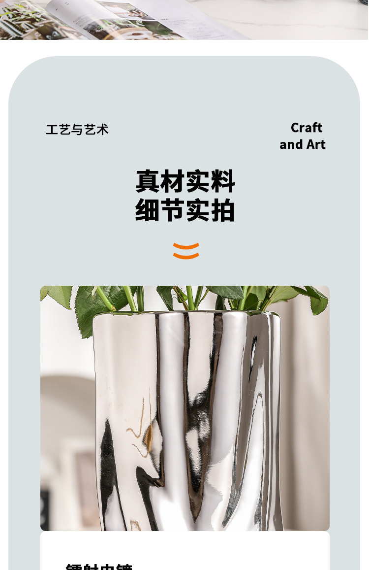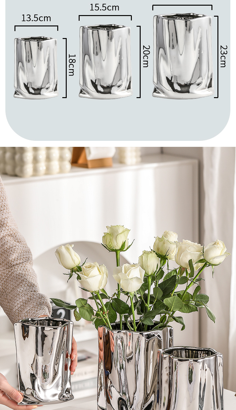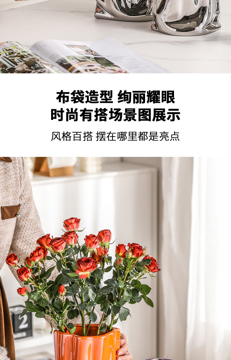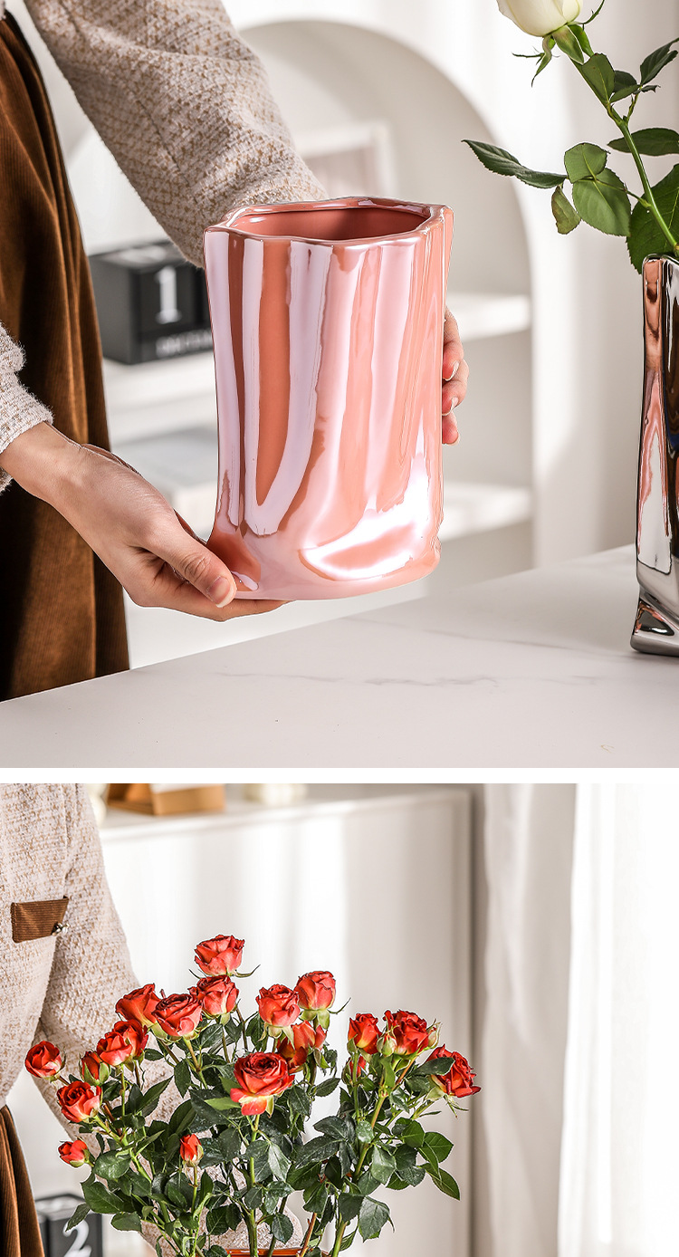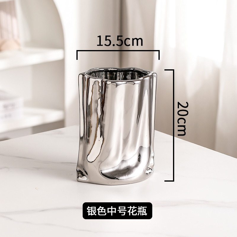 轻奢摆件简约现代陶瓷褶皱电镀花瓶水培水养鲜花干花客厅插花装饰