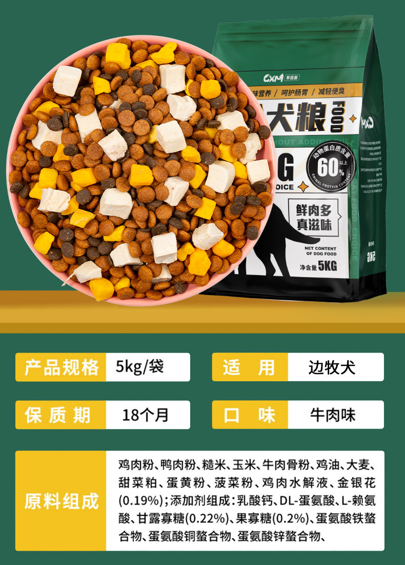 边牧狗粮20斤装幼犬成犬中大型犬小边境牧羊犬全价冻干犬粮40养胃