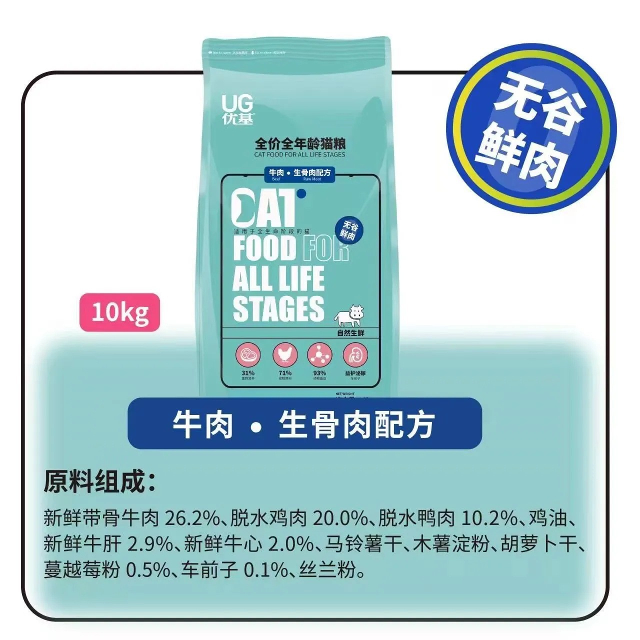 UG优基全价生骨肉冻干狗粮10kg幼猫成猫益生菌奶糕粮刮码