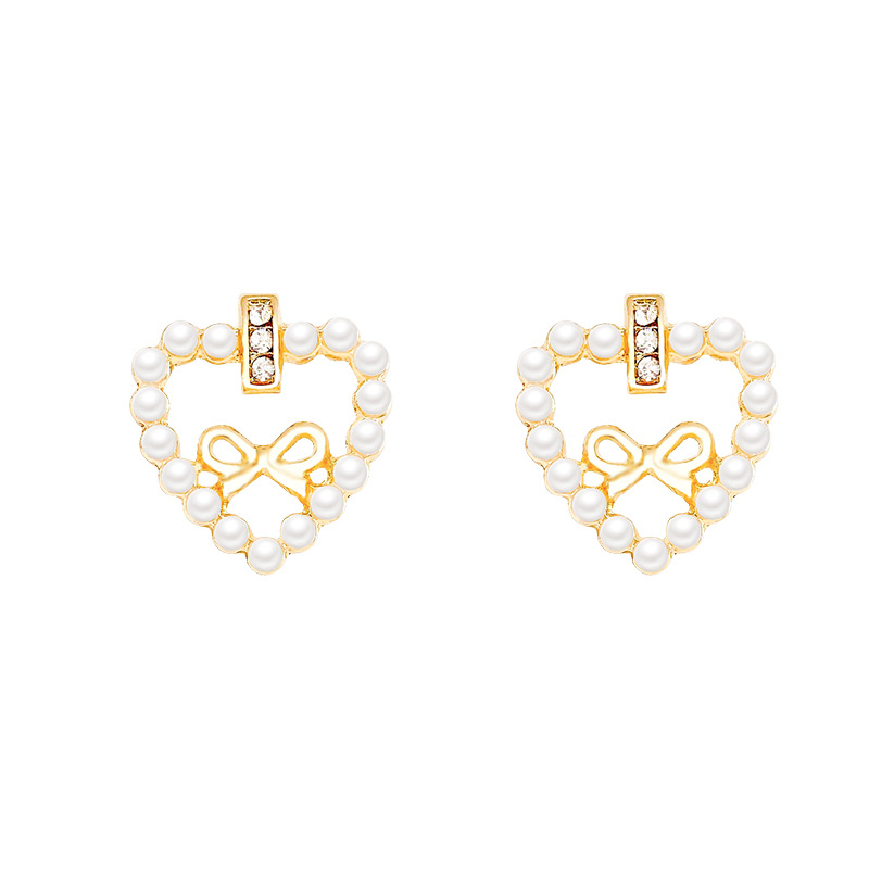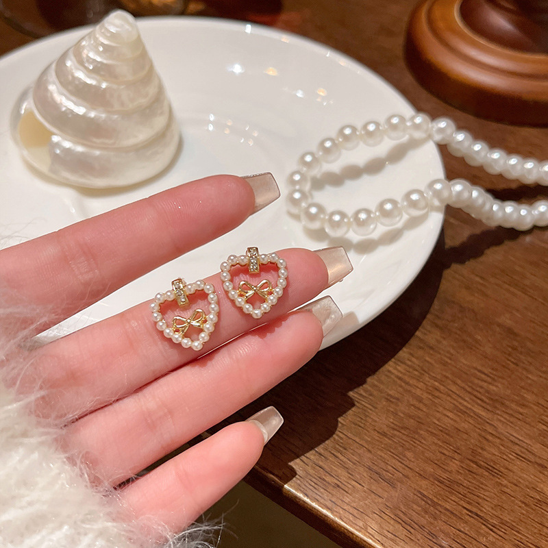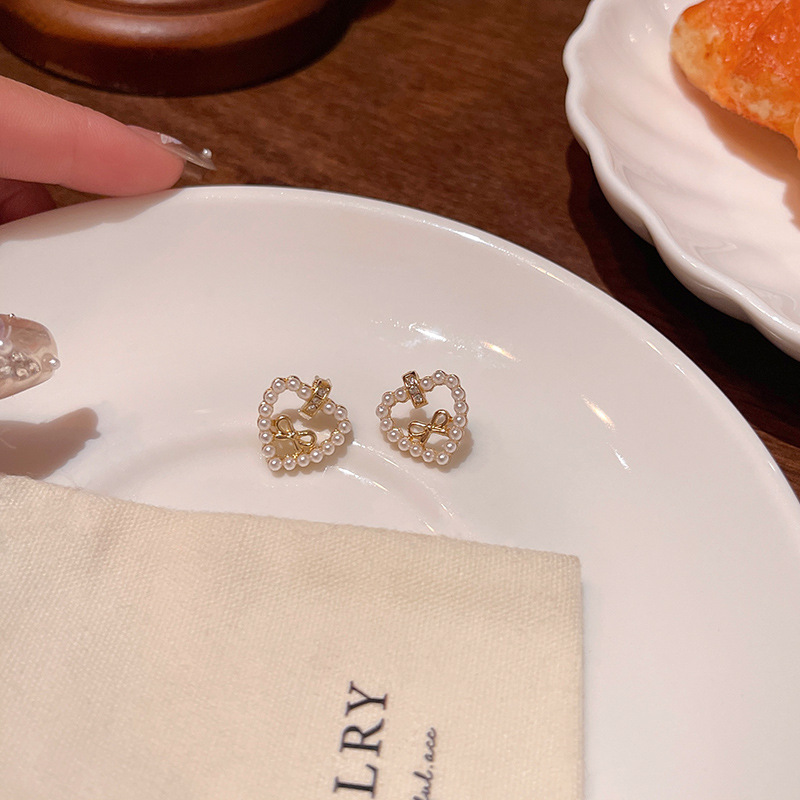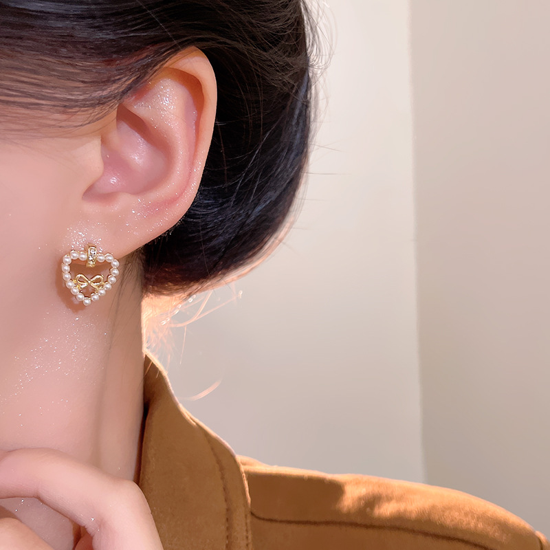 韩系甜美镂空蝴蝶结耳环女轻奢小众高级感爱心珍珠耳钉网红耳饰品