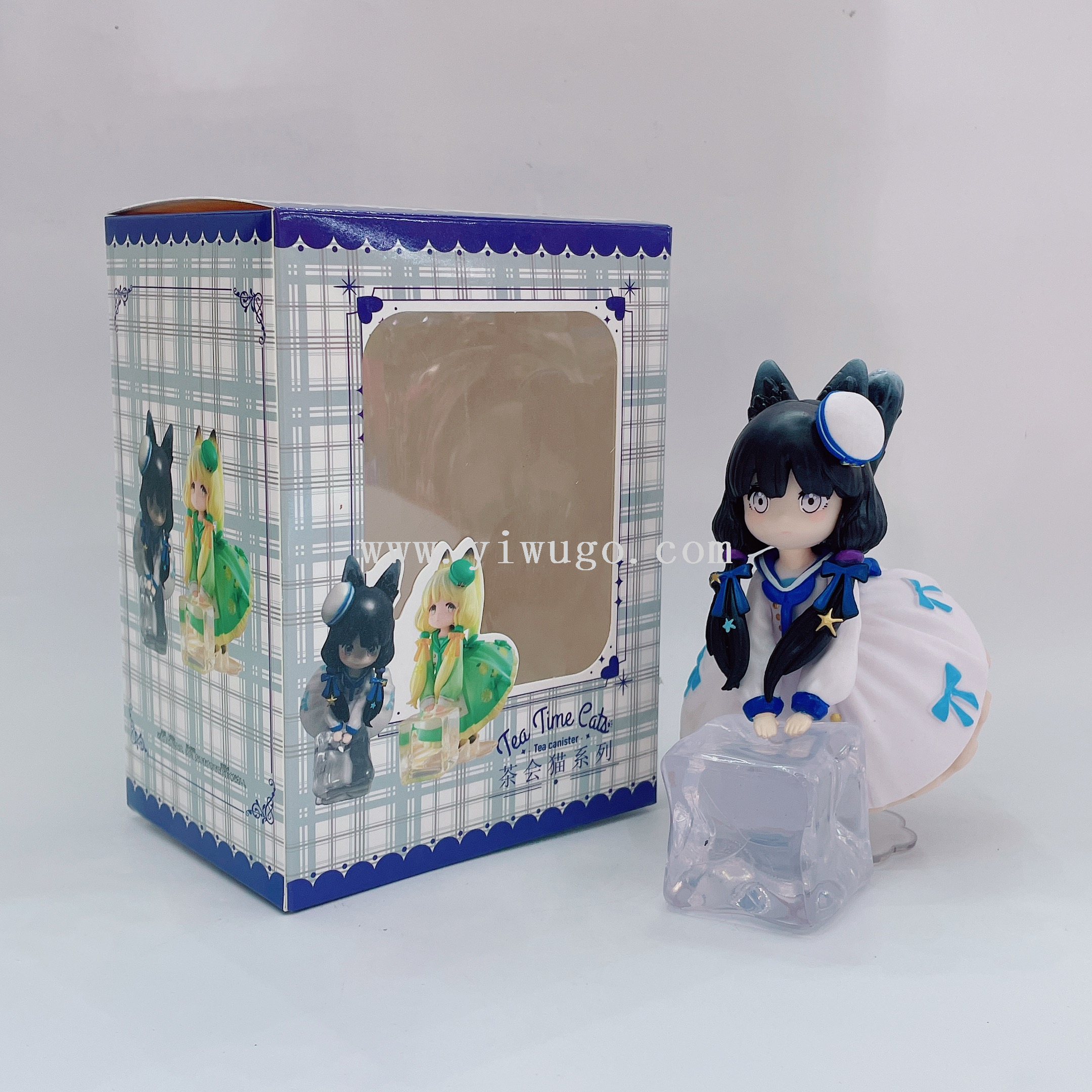 卡通茶罐 茶会猫手办 车载桌面公仔 模型摆件批发