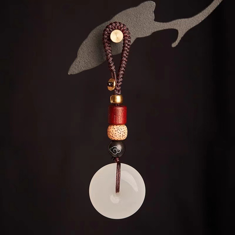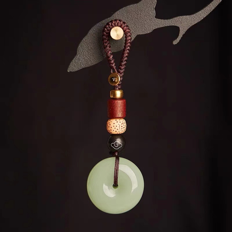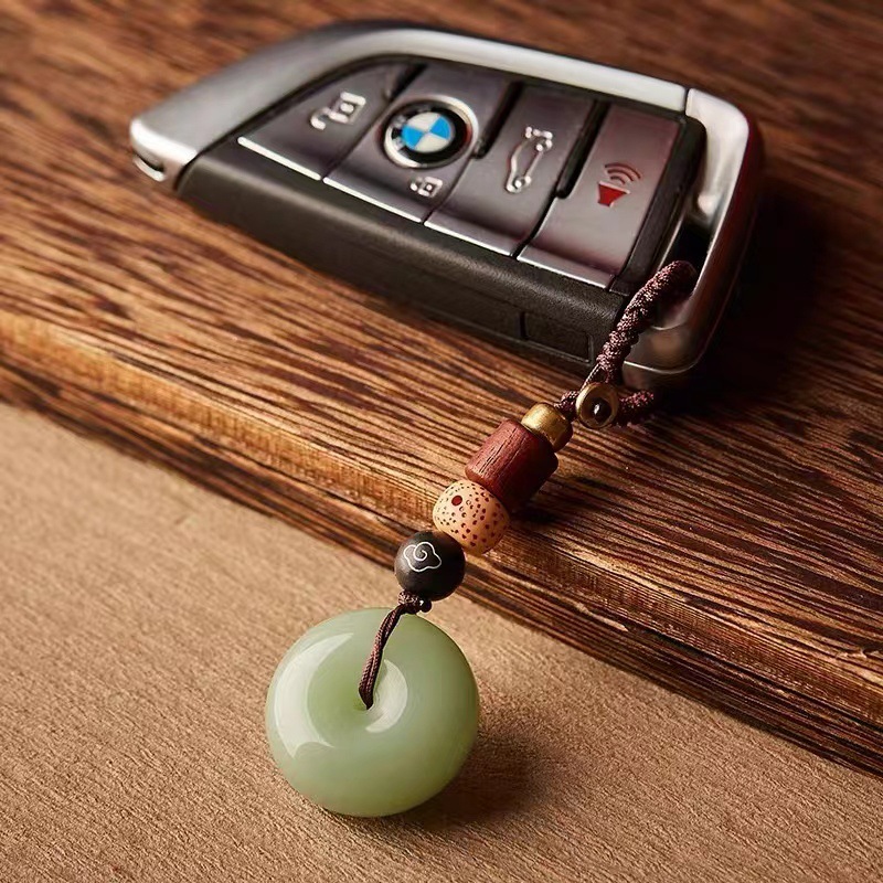 平安扣汽车钥匙扣挂件高档玉石高级感吊坠男女款摩托车情侣款饰品