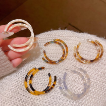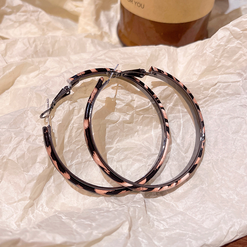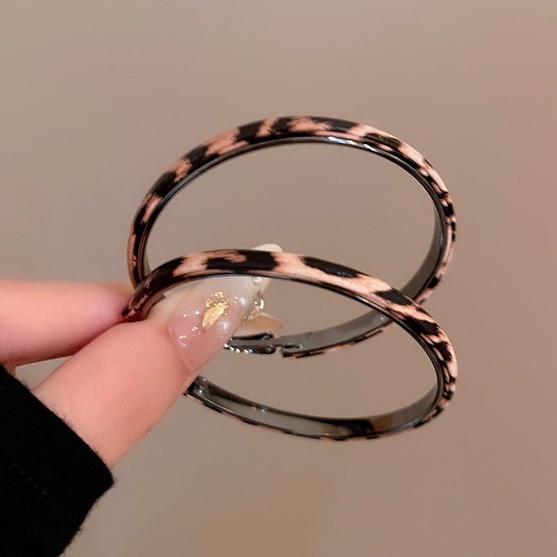 秋冬款豹纹人造皮革款耳环女个性夸张大圆圈耳圈网红同款耳饰批发