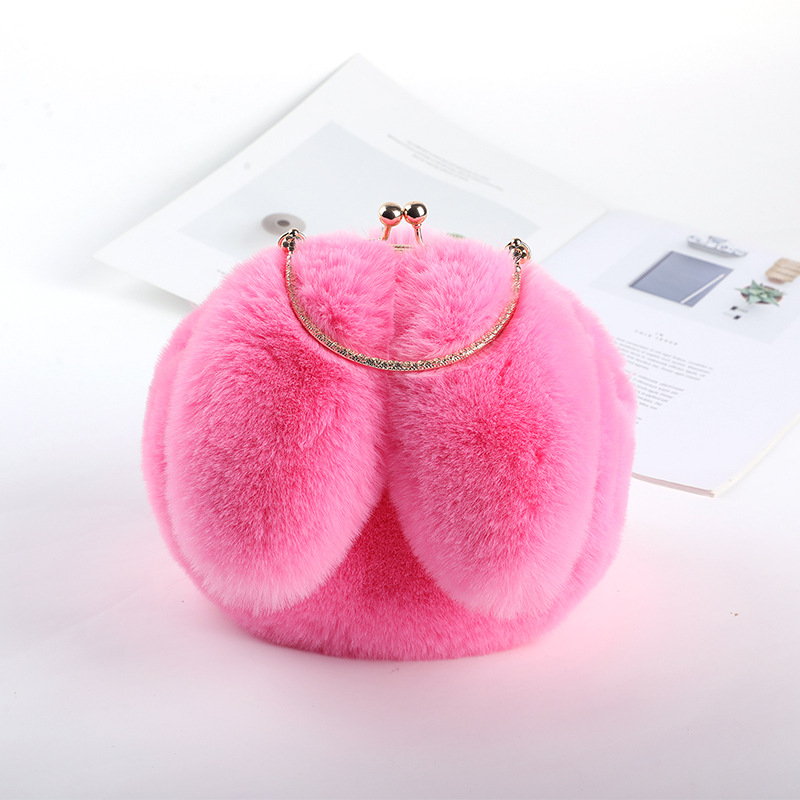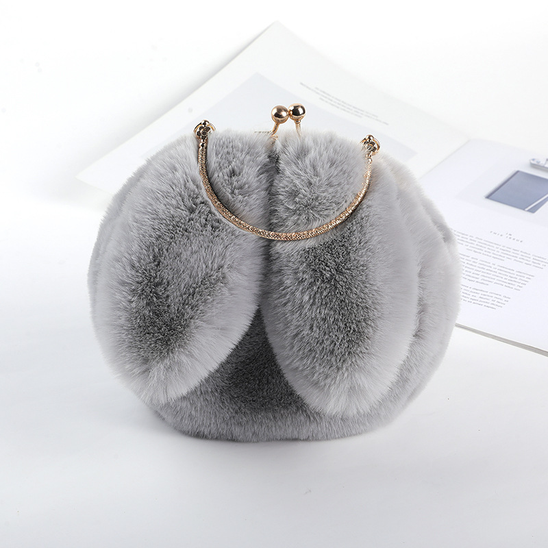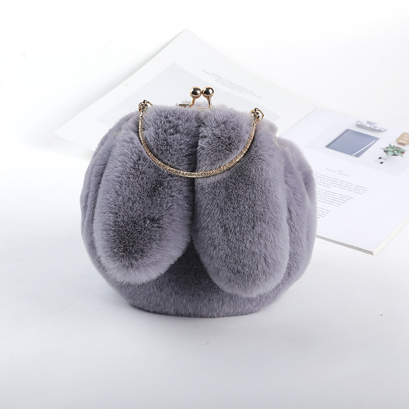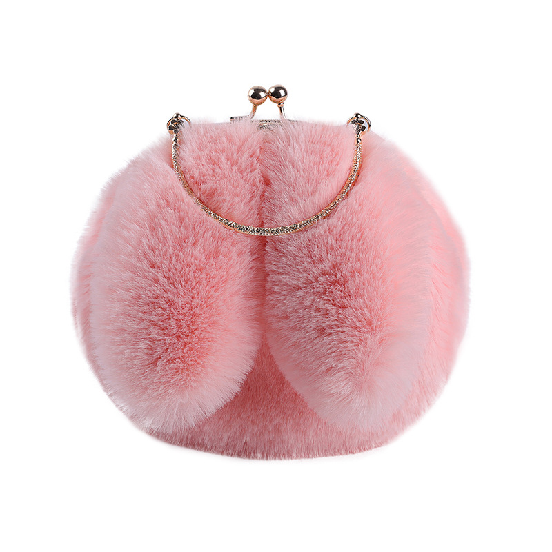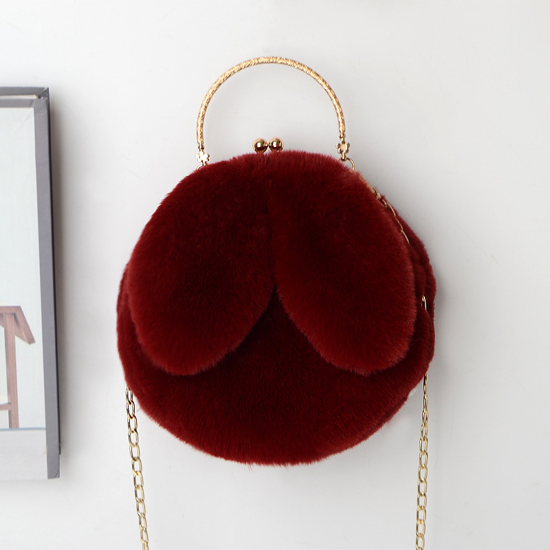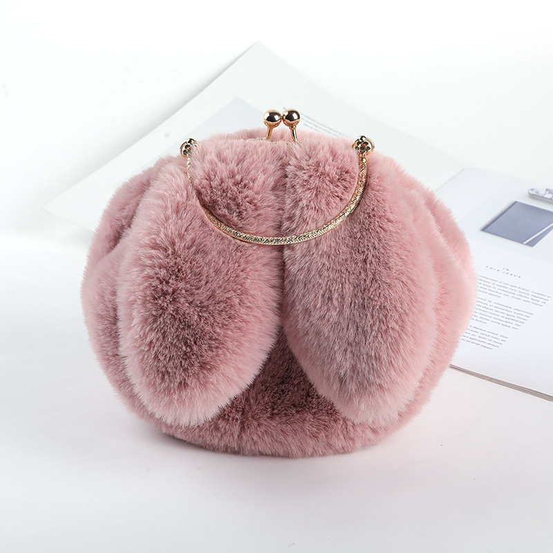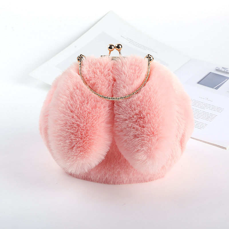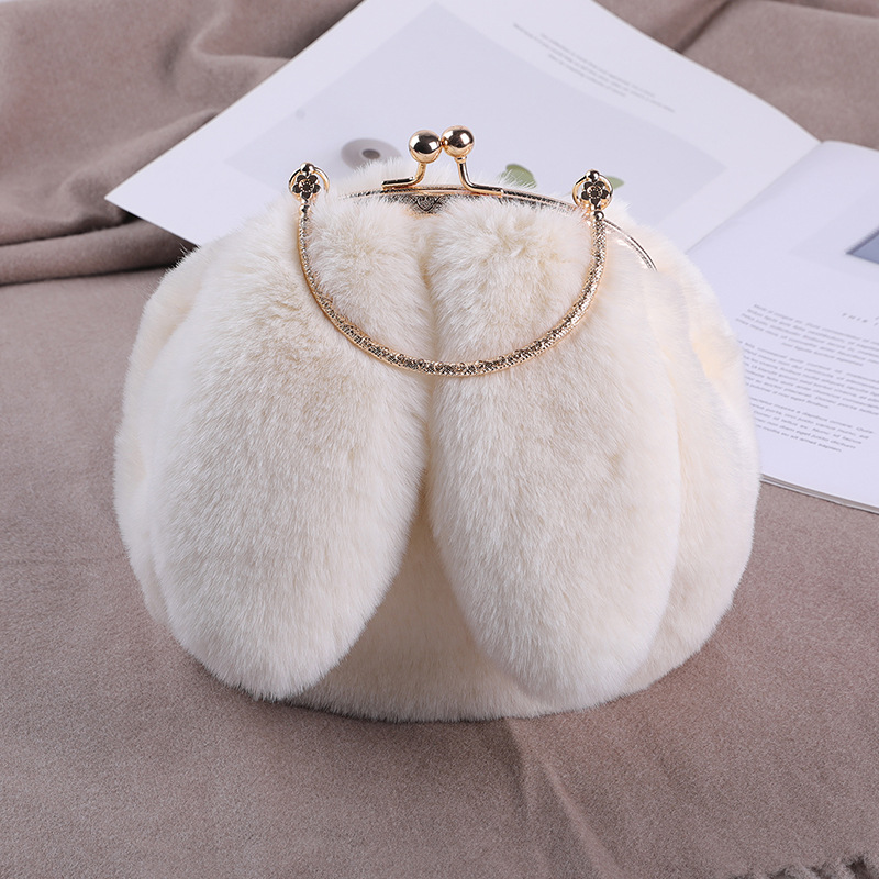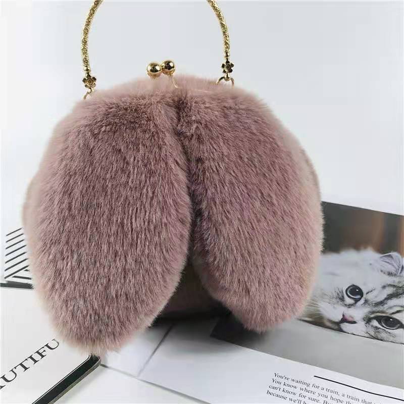 毛绒包包女斜跨手提公主包仿皮草毛绒包包新款链条包百搭兔耳朵包