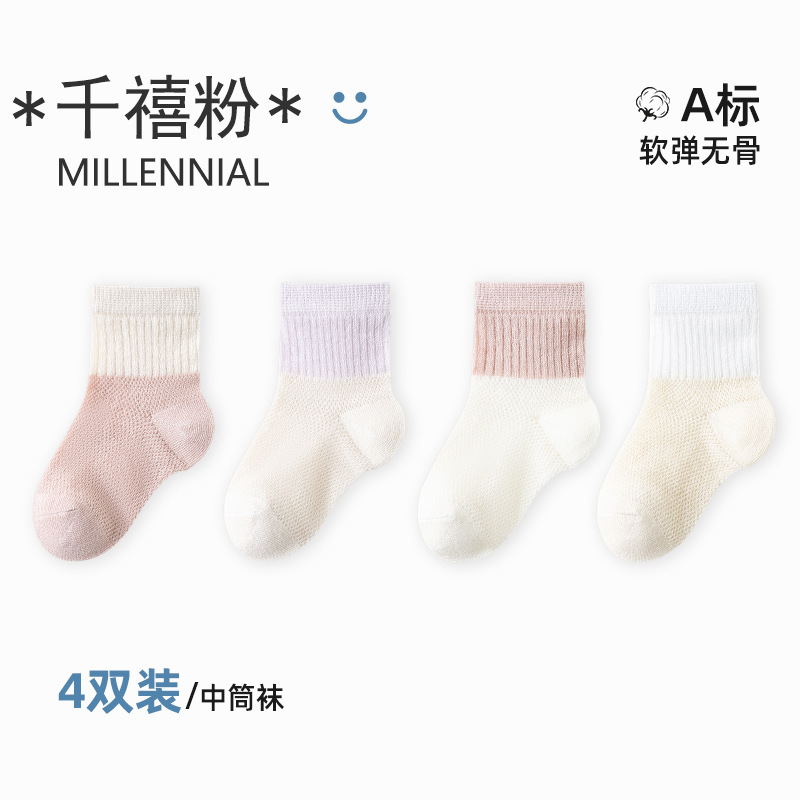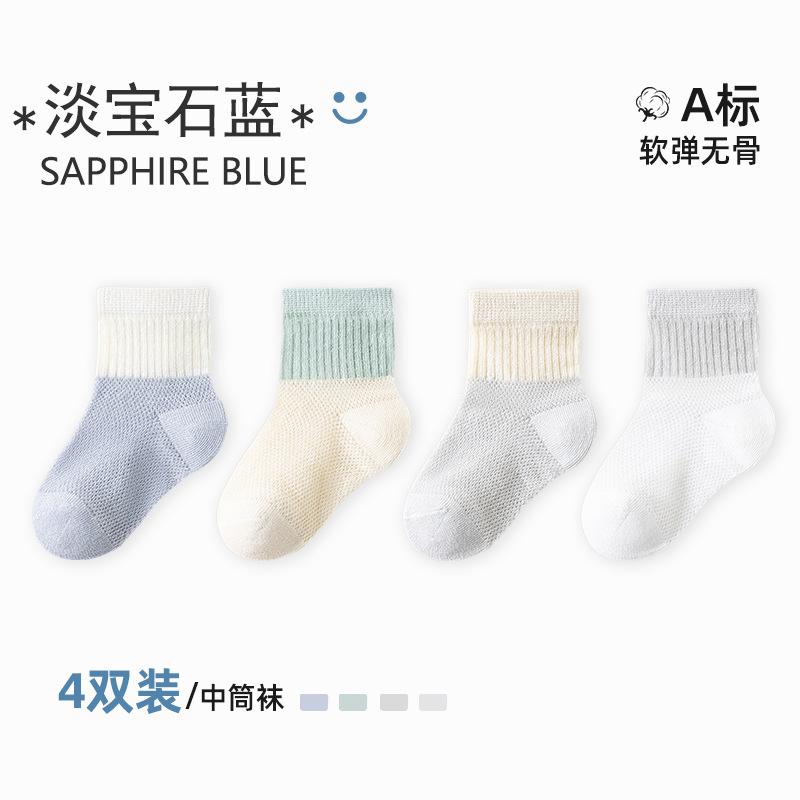 严选宝宝袜子夏季a类纯色薄款新生儿袜子0-6个月袜子宝宝网眼透气