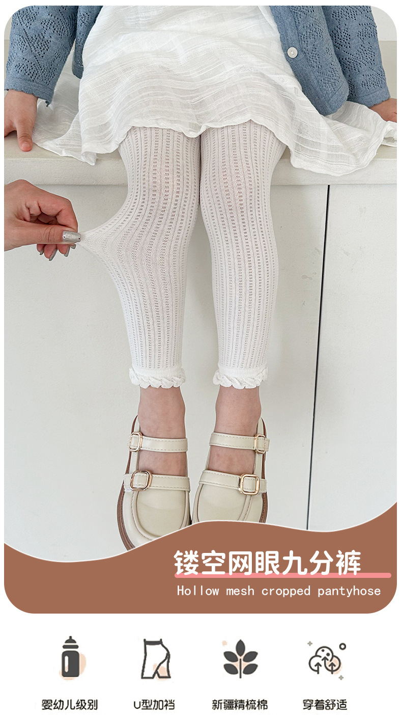 女童打底裤夏季薄纯色外穿宝宝袜裤网眼防蚊透气婴儿童连裤袜九分