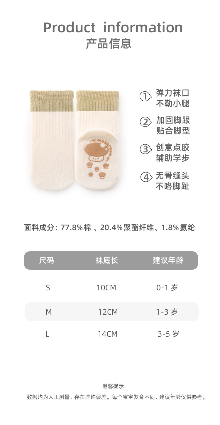 无骨宝宝地板袜春秋a类棉室内学步袜婴儿袜子防滑隔凉儿童点胶袜
