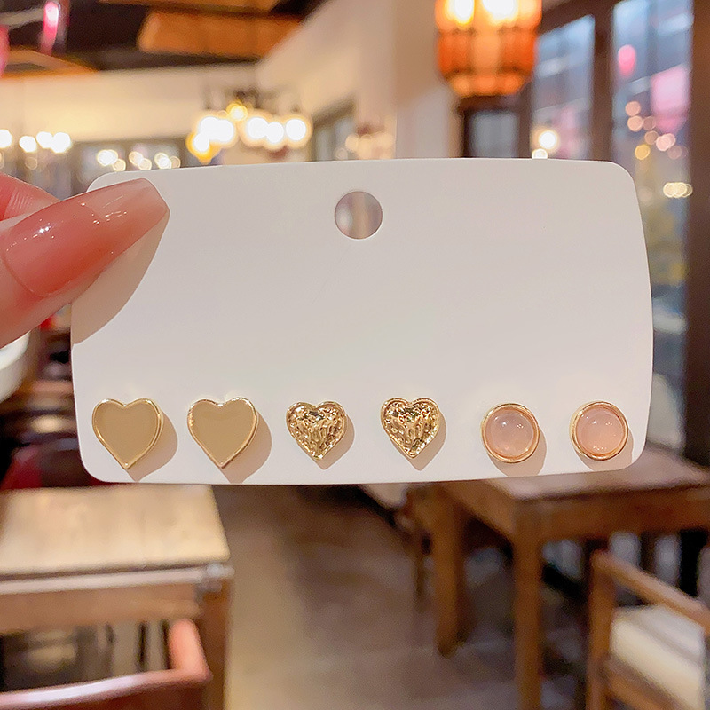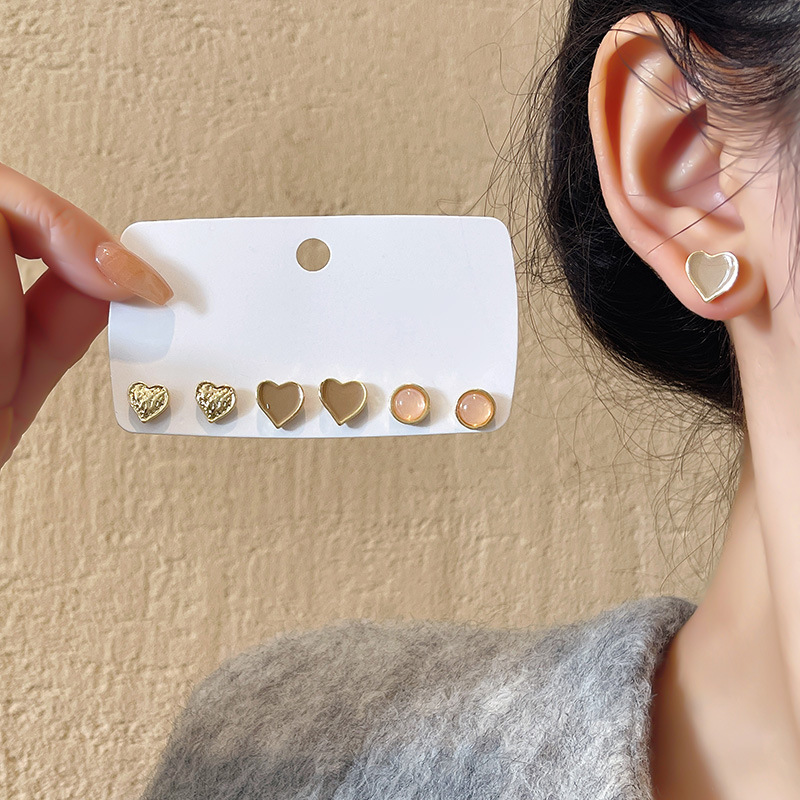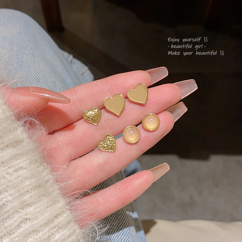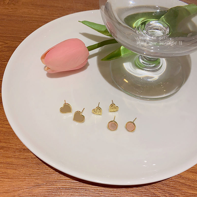S925银针迷你小巧爱心套装耳钉女轻奢小众猫眼石几何形耳环耳饰品