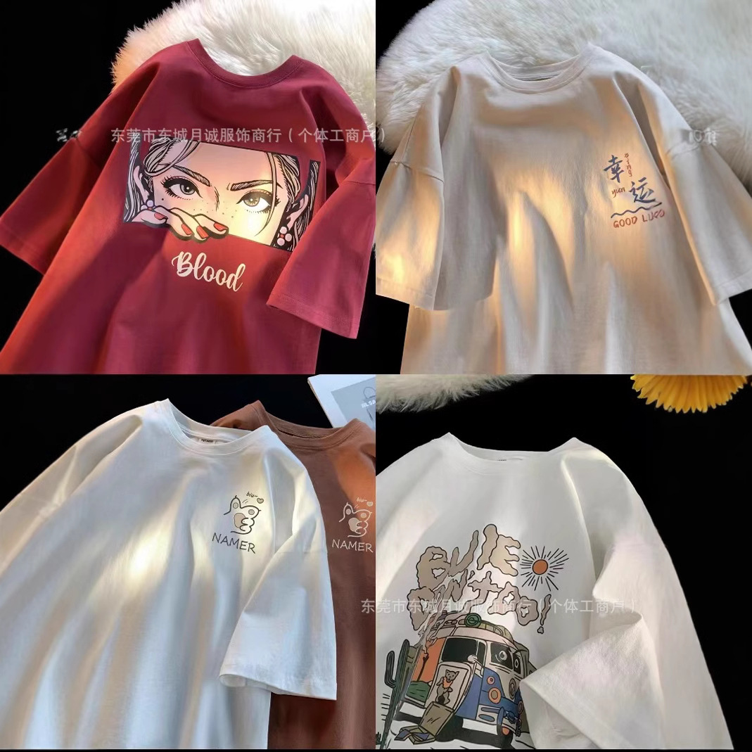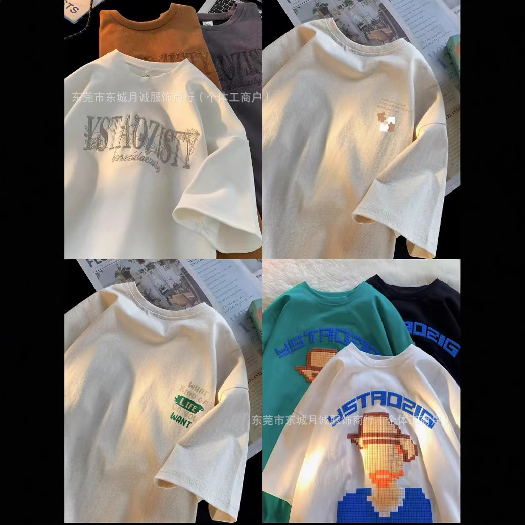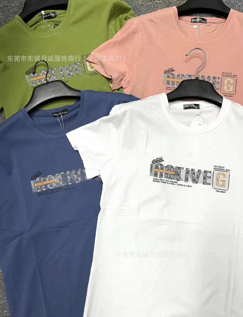 1元服装短袖男士夏季新款男装圆领印花t恤棉耐磨直筒型流行短袖男