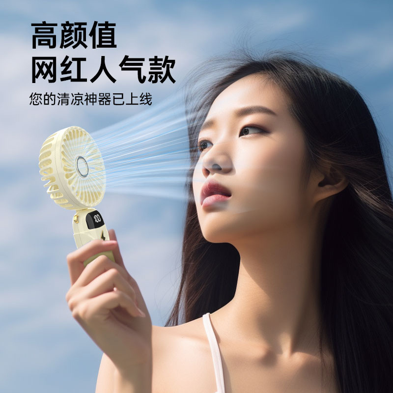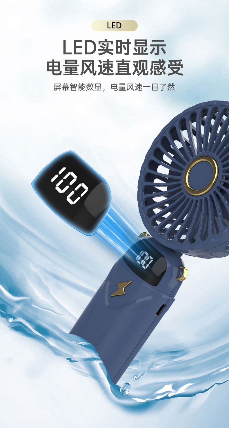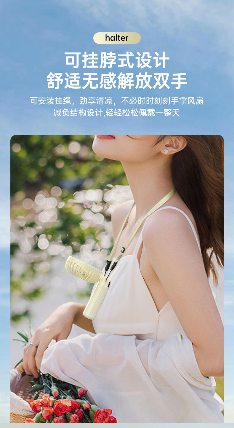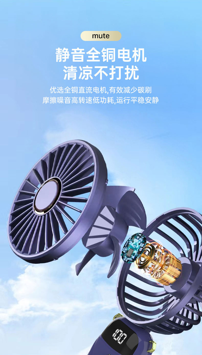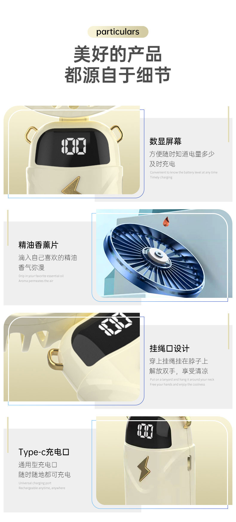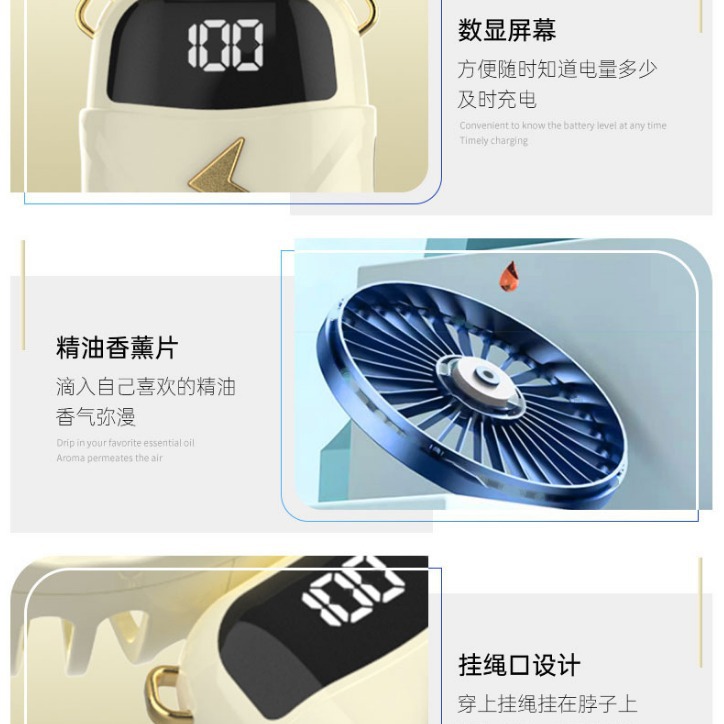 跨境数显手持挂脖小风扇静音香薰usb充电迷你便携式桌面手持风扇