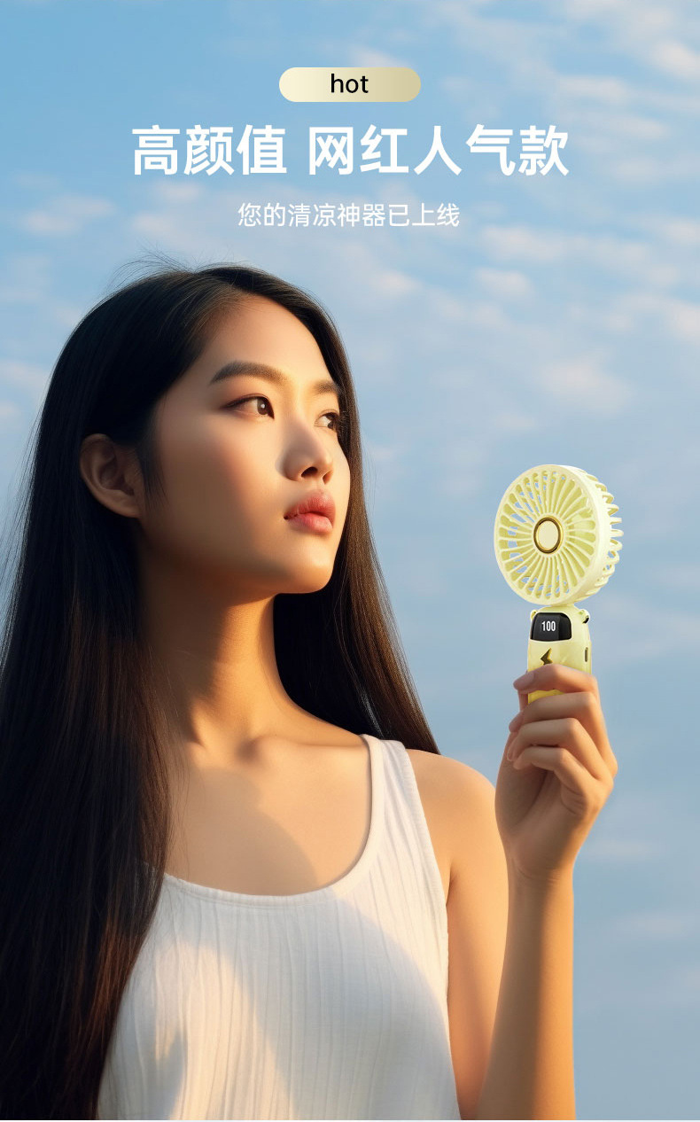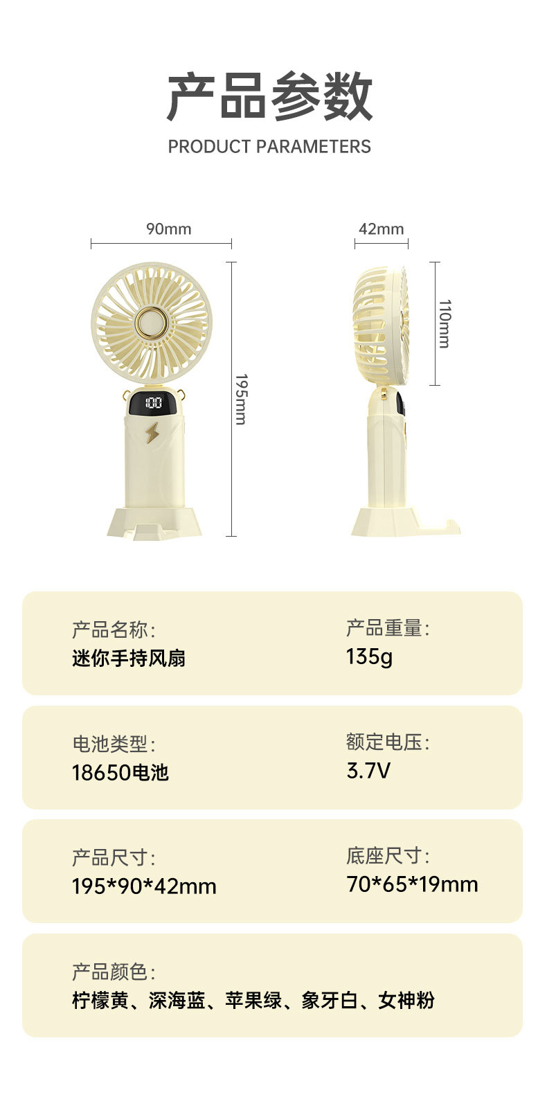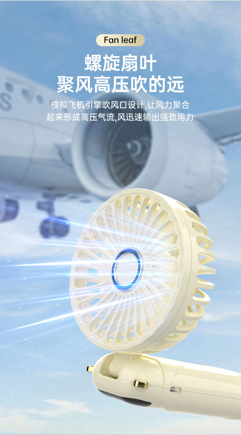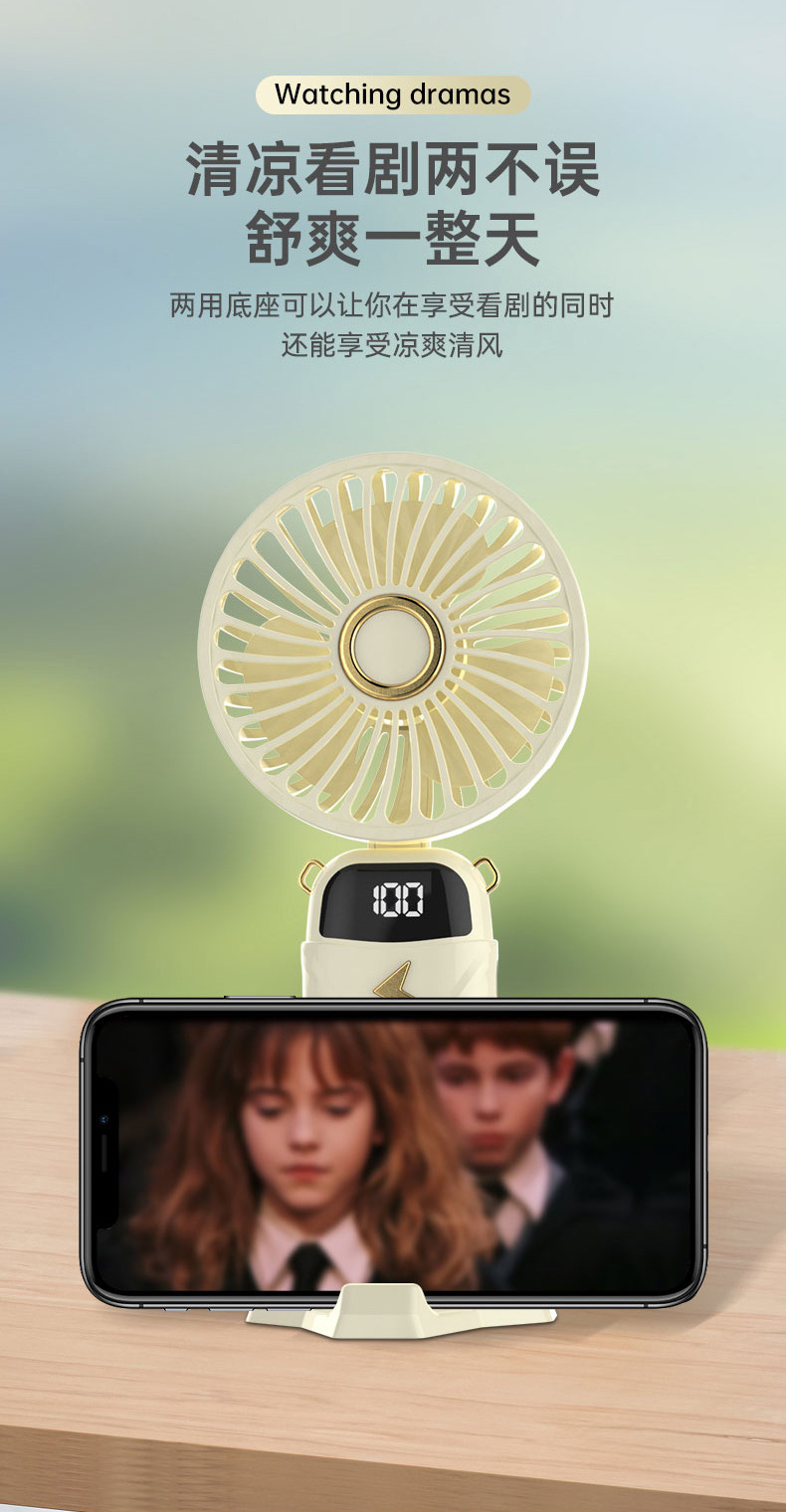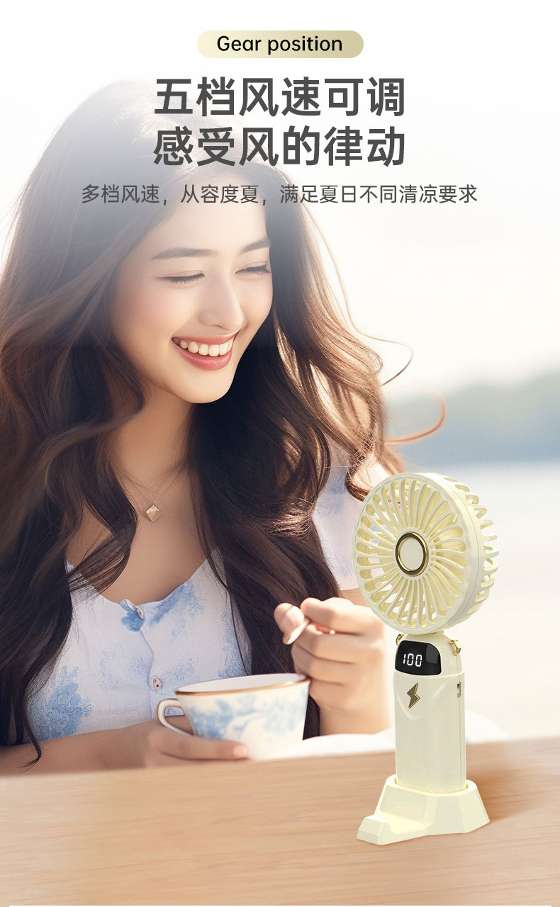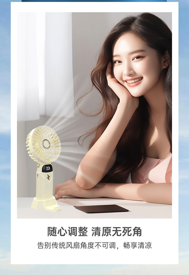 跨境数显手持挂脖小风扇静音香薰usb充电迷你便携式桌面手持风扇