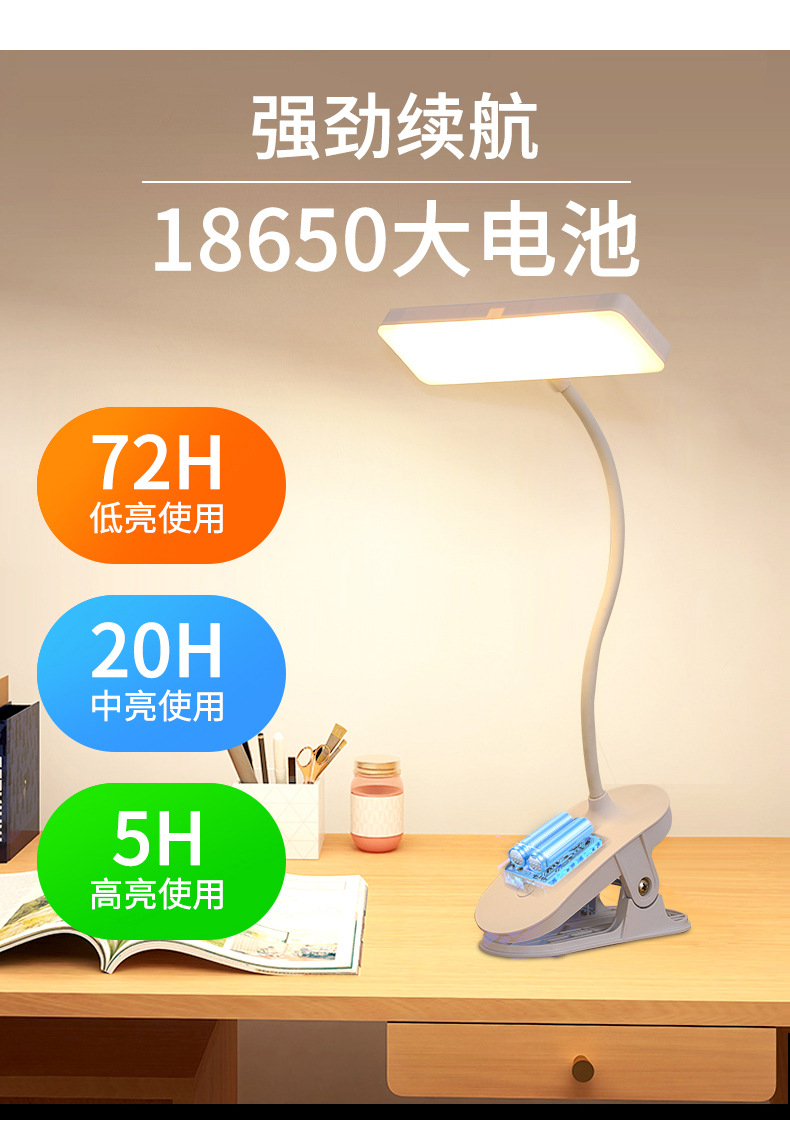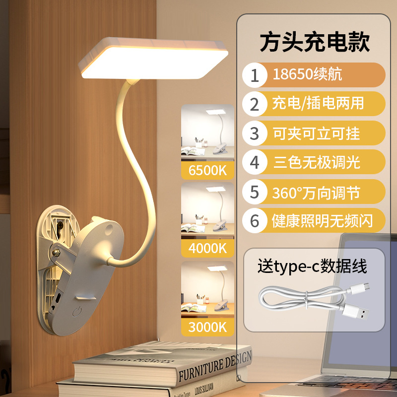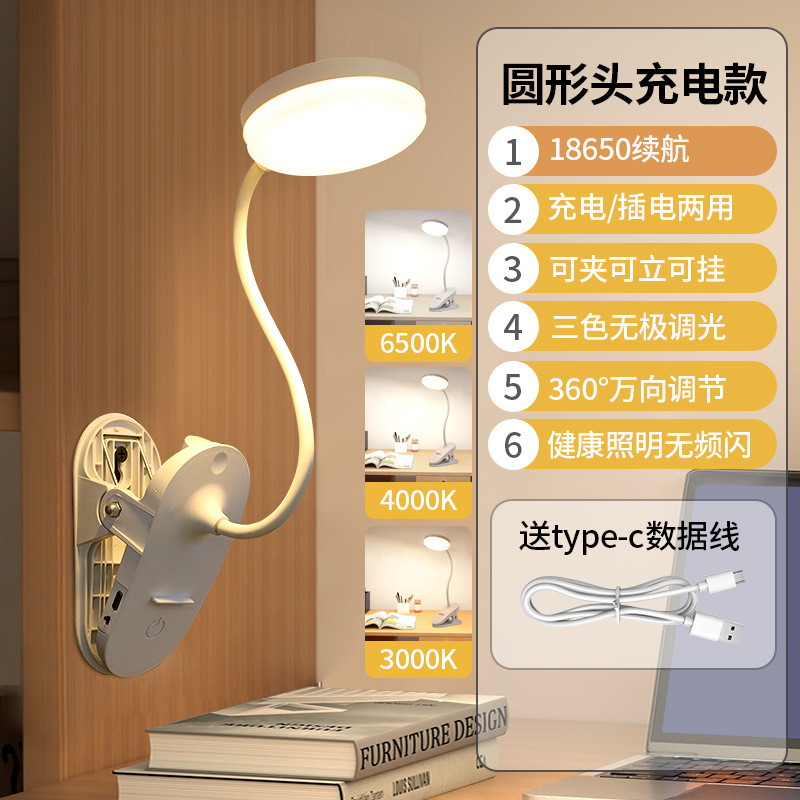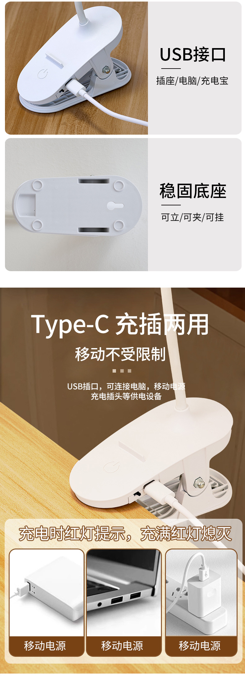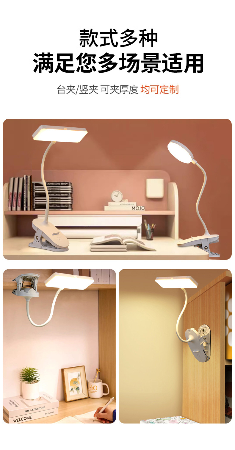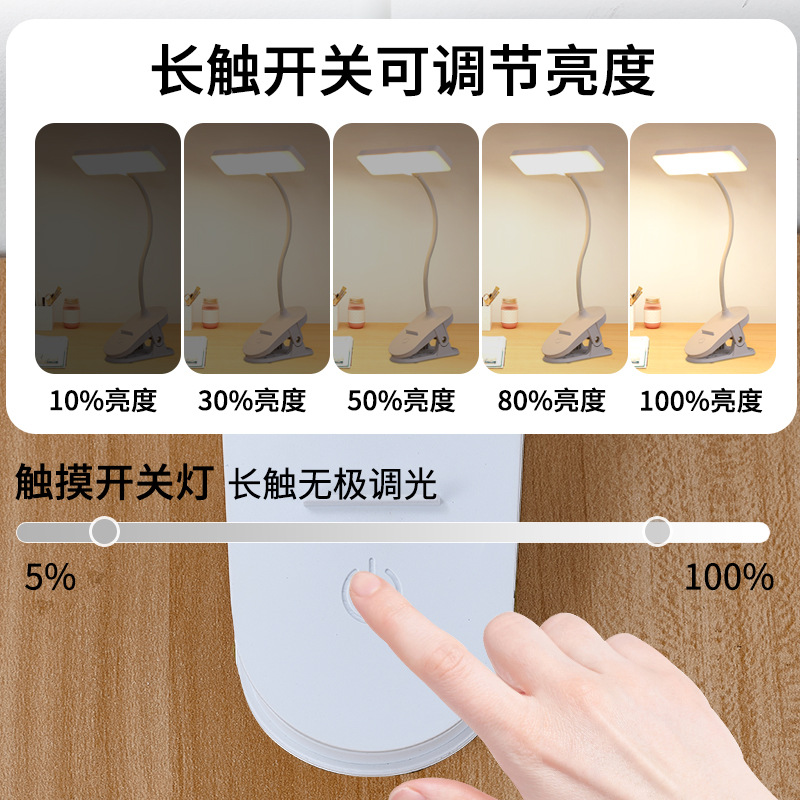 夹子台灯LED护眼学习专用 学生宿舍床头阅读灯充插两用折叠小夜灯