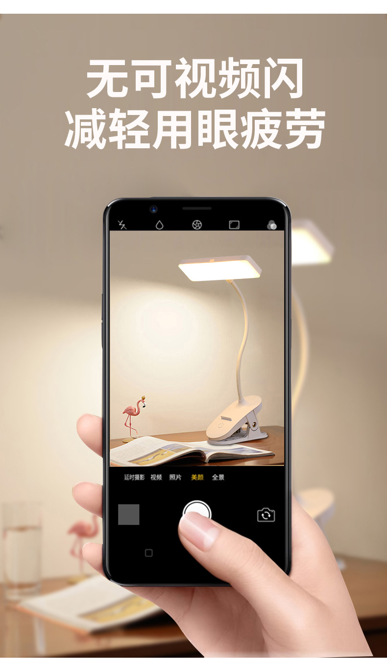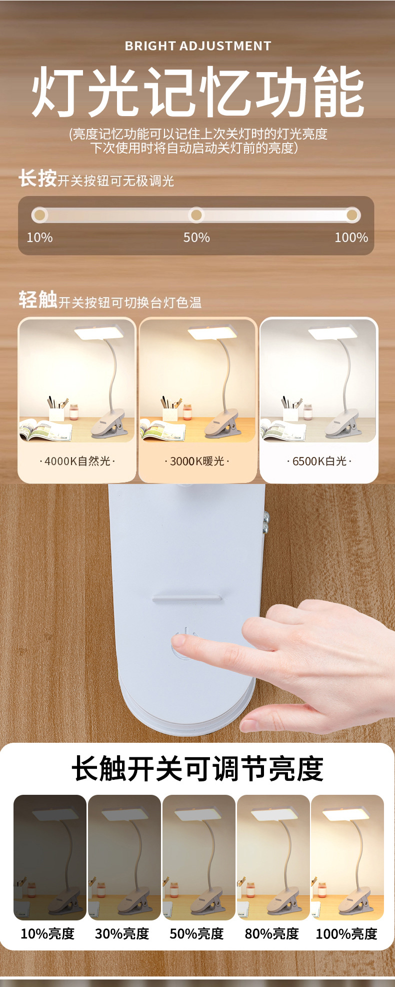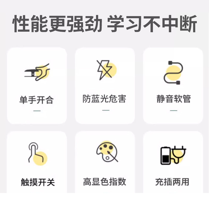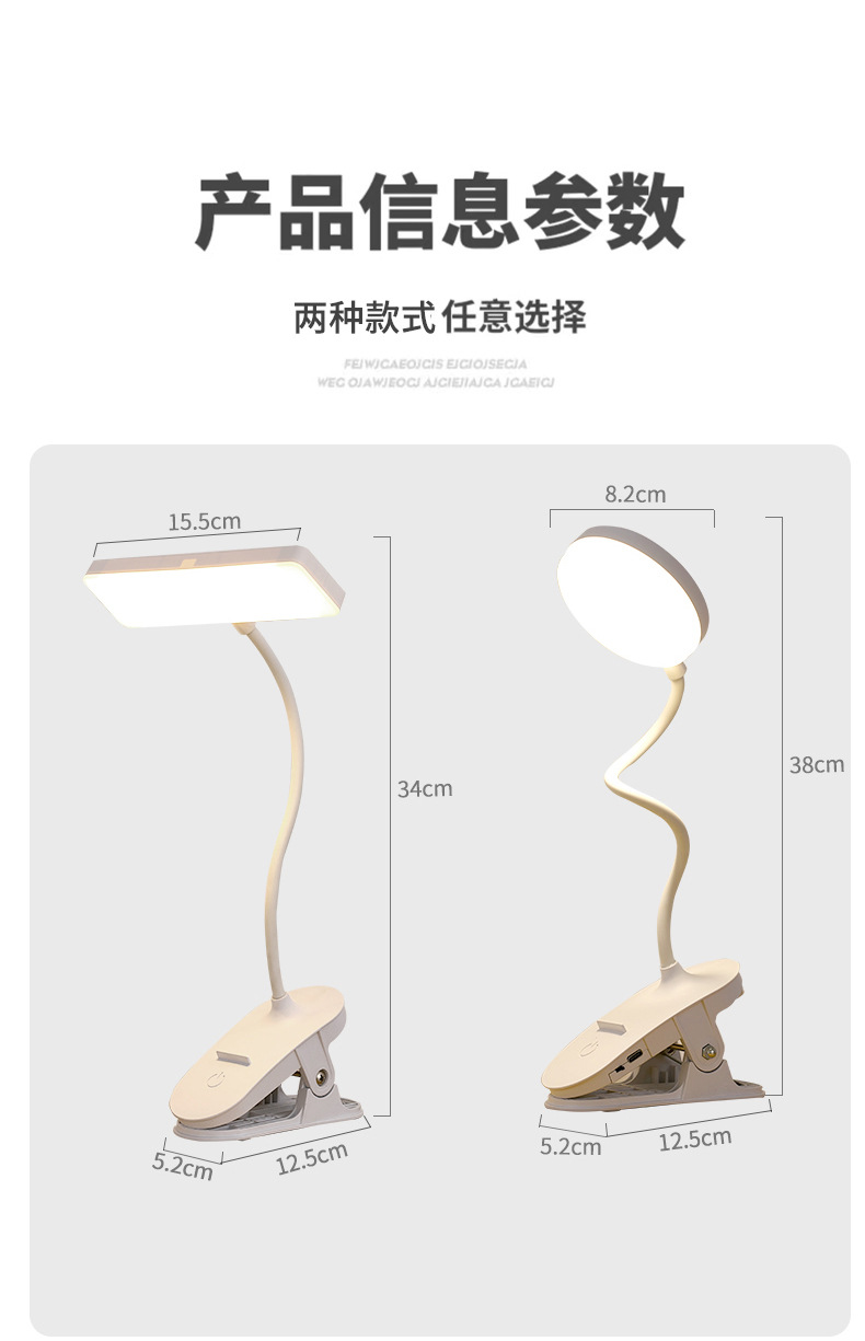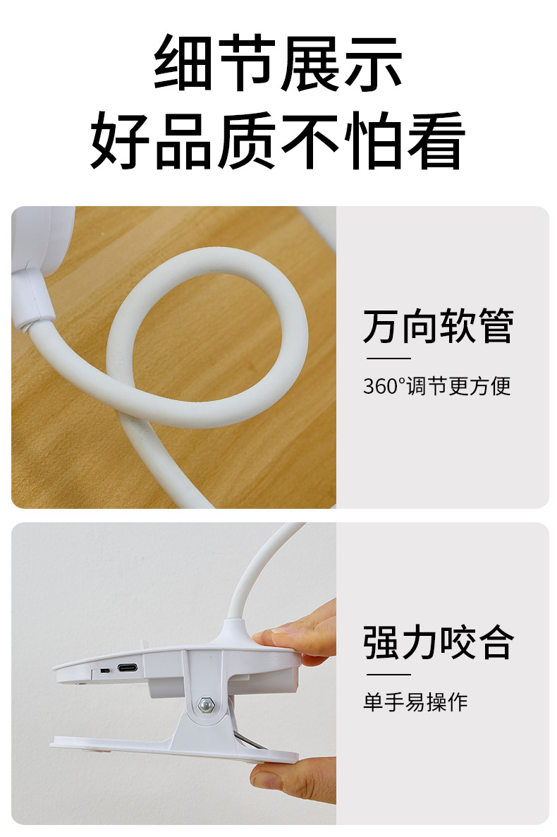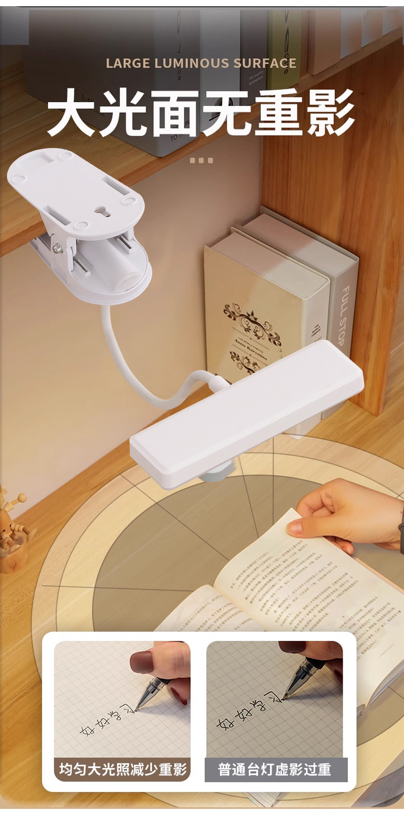 夹子台灯LED护眼学习专用 学生宿舍床头阅读灯充插两用折叠小夜灯